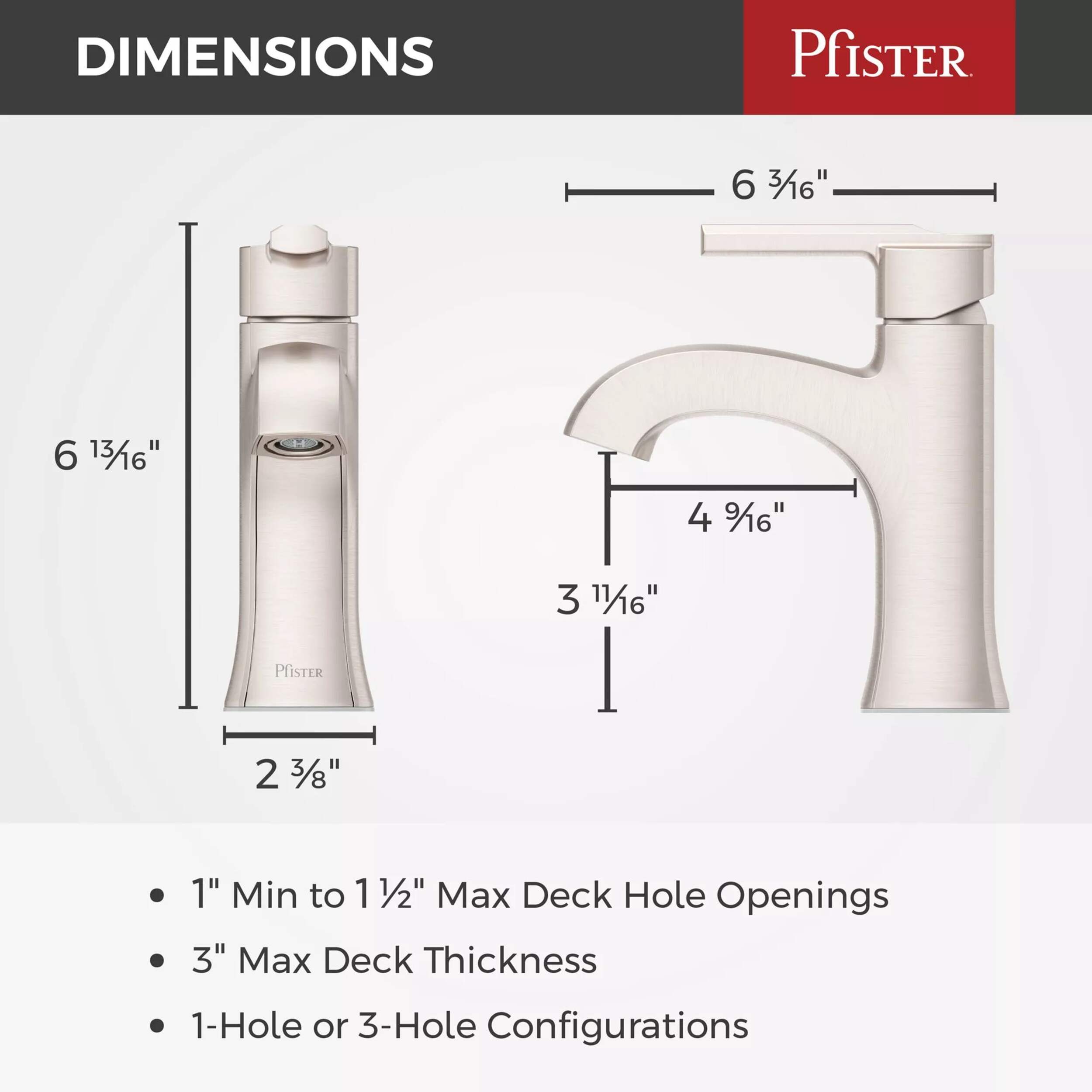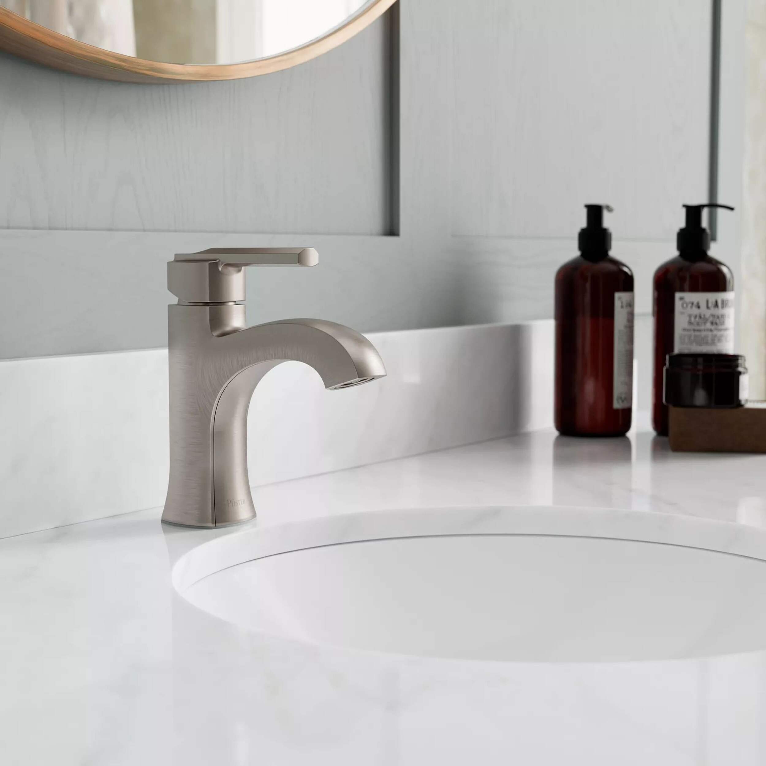 The Pfister Vaneri Single Control Bath Faucet in Stainless Steel combines sleek design with lasting functionality, making it ideal for a bathroom upgrade. Featuring a Spot Defense® finish, this faucet resists water spots and fingerprints, keeping it looking clean with minimal maintenance. Its fixed hub ensures smooth handle rotation, while an innovative press-to-seal drain allows for a tight seal with every use—simply press to seal and press again to open. It installs easily in a 1-hole setup, providing both style and reliability.