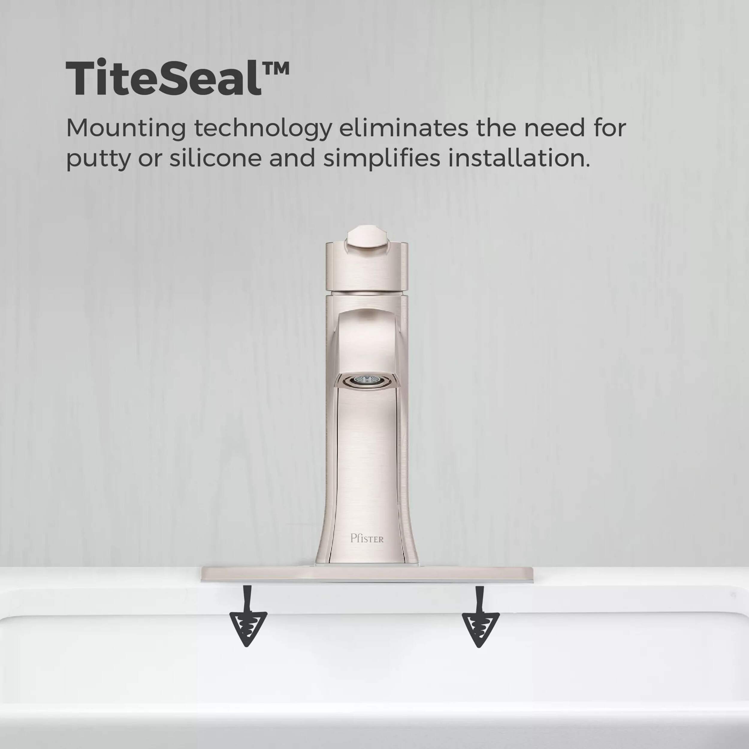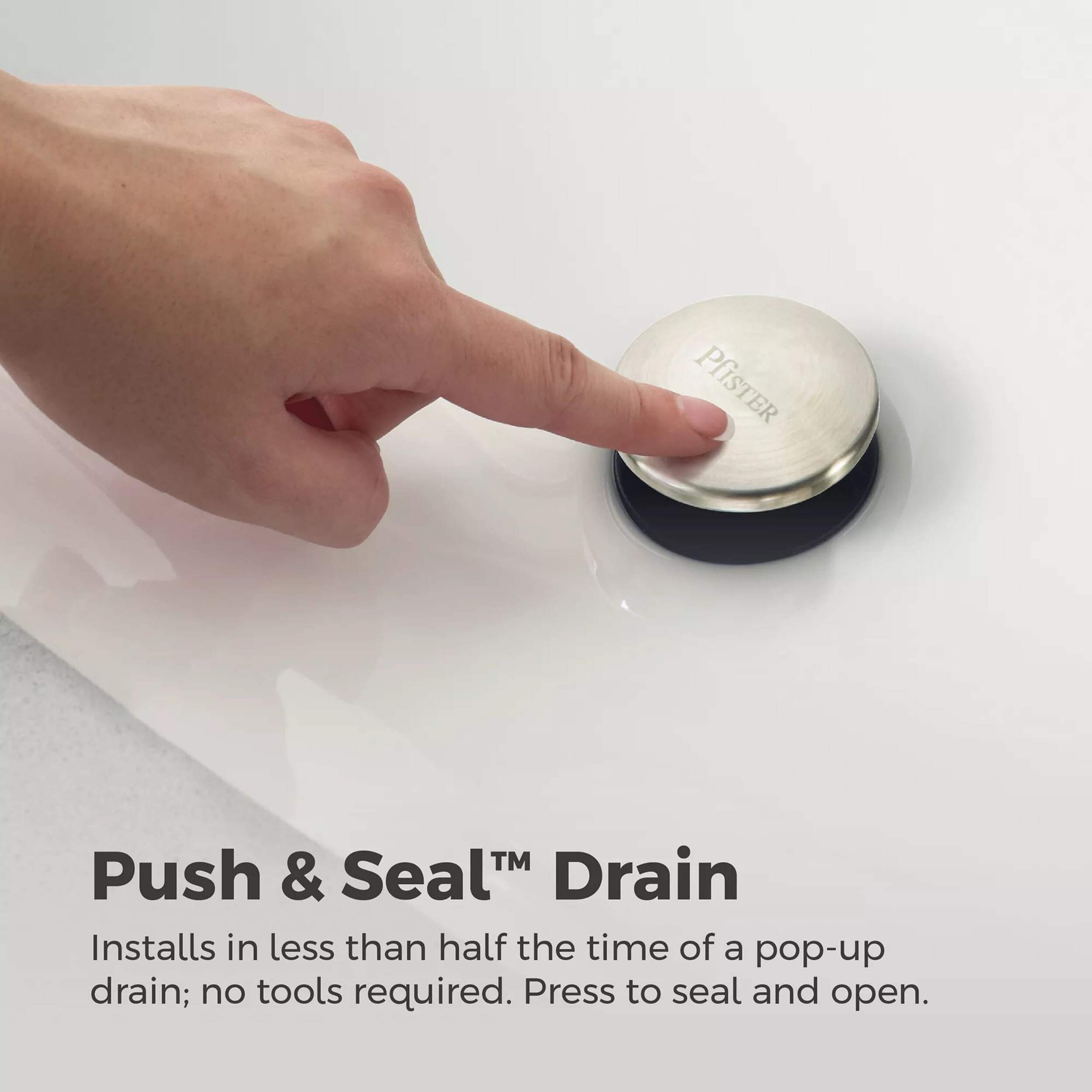Push & Seal™ drain installs quickly without tools, taking half the time of a standard pop-up drain
