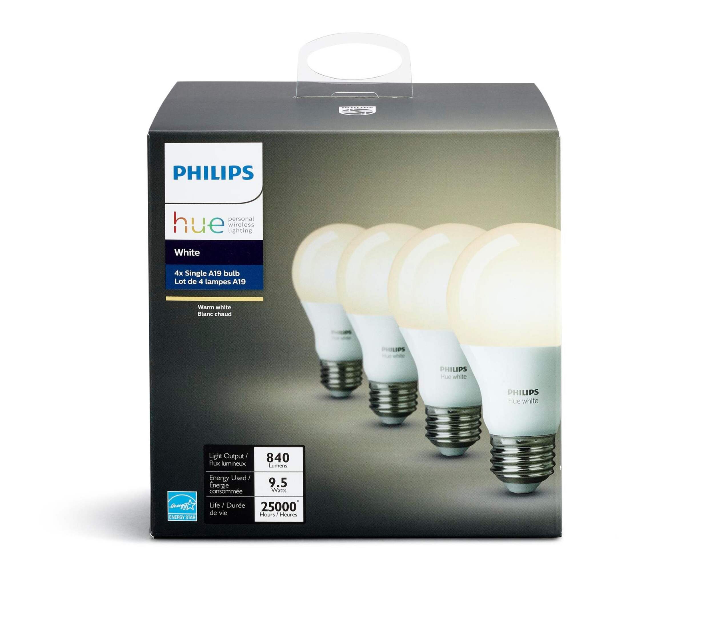 Requires a Philips Hue Bridge (052-9478) to control lights from your smartphone or tablet via the Philips Hue app