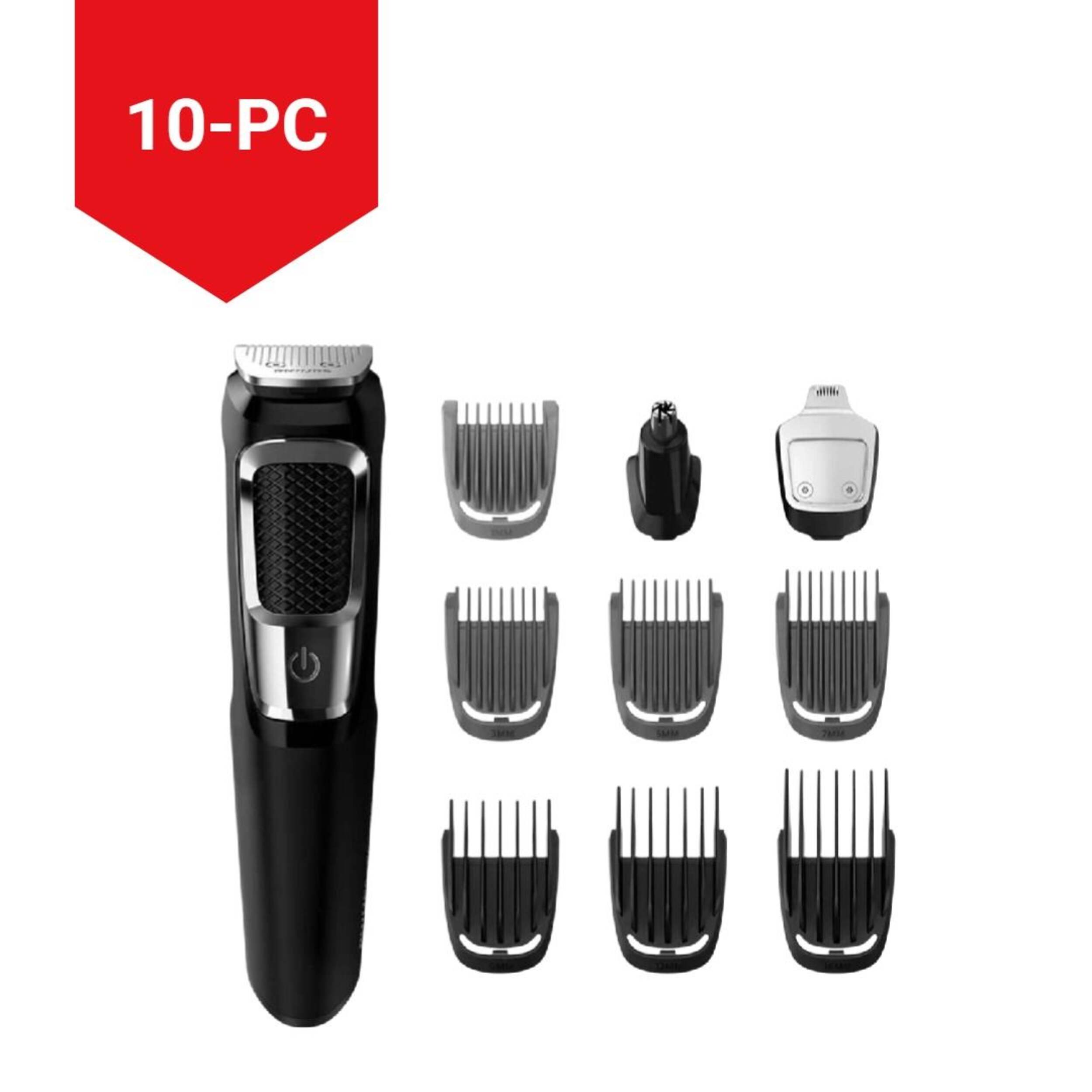 Take personal grooming to the next level with the multifunction Philips Series 3000 Multigroom All-In-One Rechargeable Cordless Hair Trimmer. This sleek trimmer has a contoured shape that is comfortable to hold and easy to use while shaving. The high-quality hair trimmer is perfect for removing hair from face, legs and body and includes multiple attachments so you can customize it to your preferences.