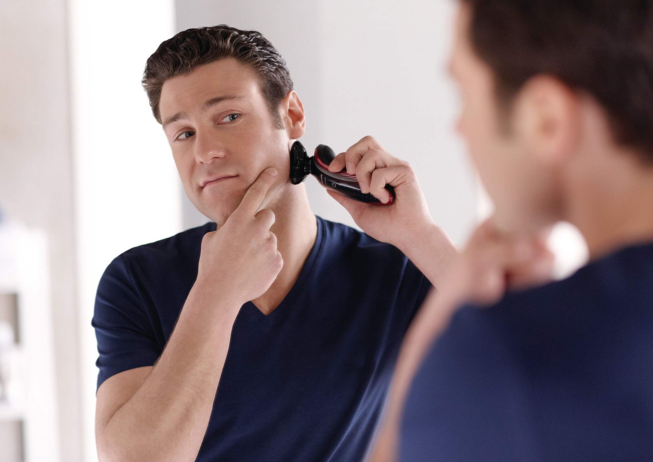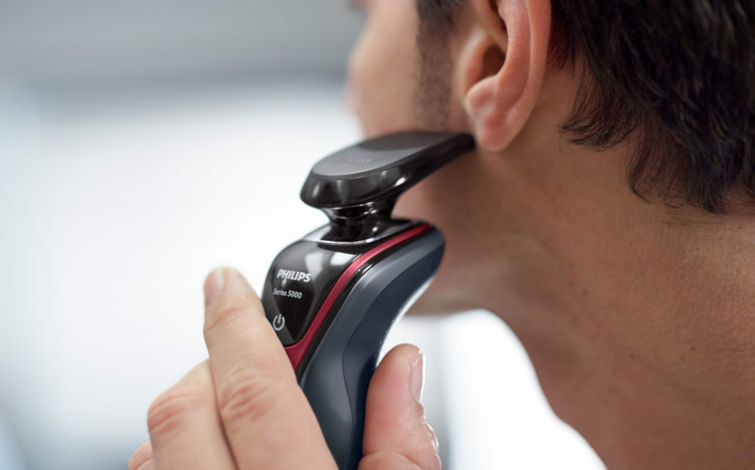Philips Series 5000 Wet/Dry shaver has a rounded profile of heads designed to protect skin