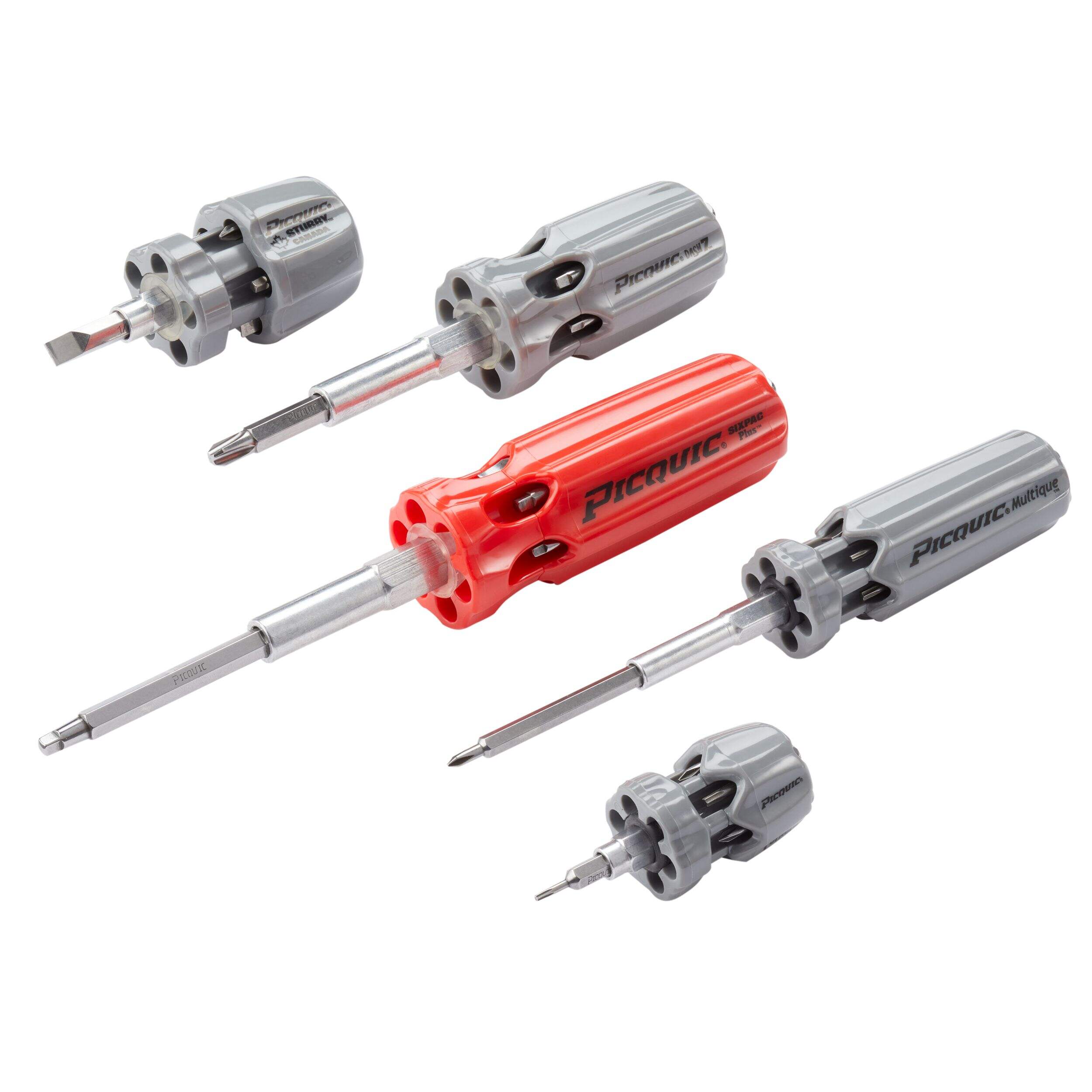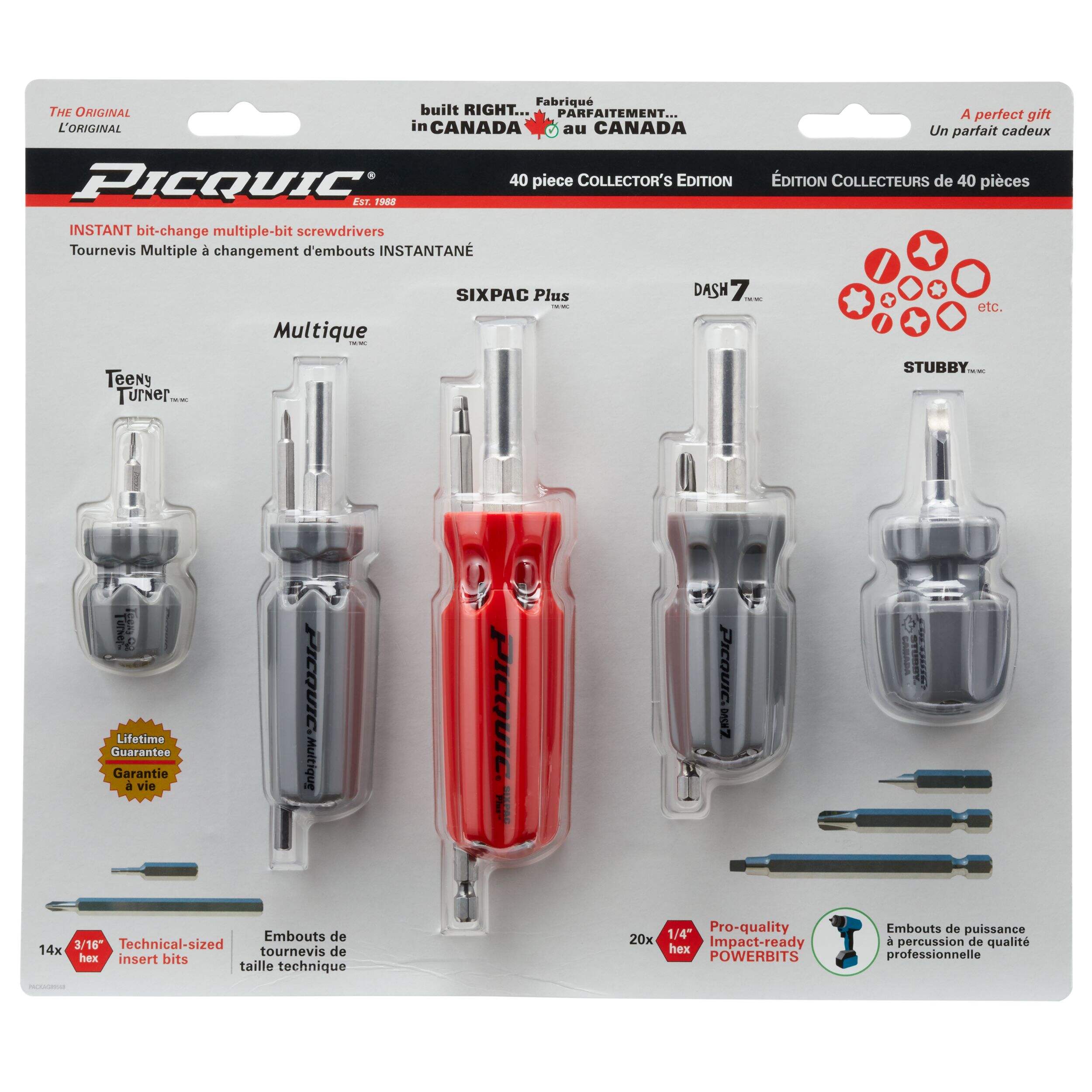 The Picquic 40-pc Collectors Edition Multi-Bit Screwdriver Set is the ultimate solution for tackling various tasks at home or on the job. With five ergonomic handles and a wide selection of bits, this set is perfect for assembling furniture, repairing electronics, or handling DIY projects. Designed for versatility and convenience, the bits are compatible with drills and impact drivers, making this set an indispensable addition to any toolkit.