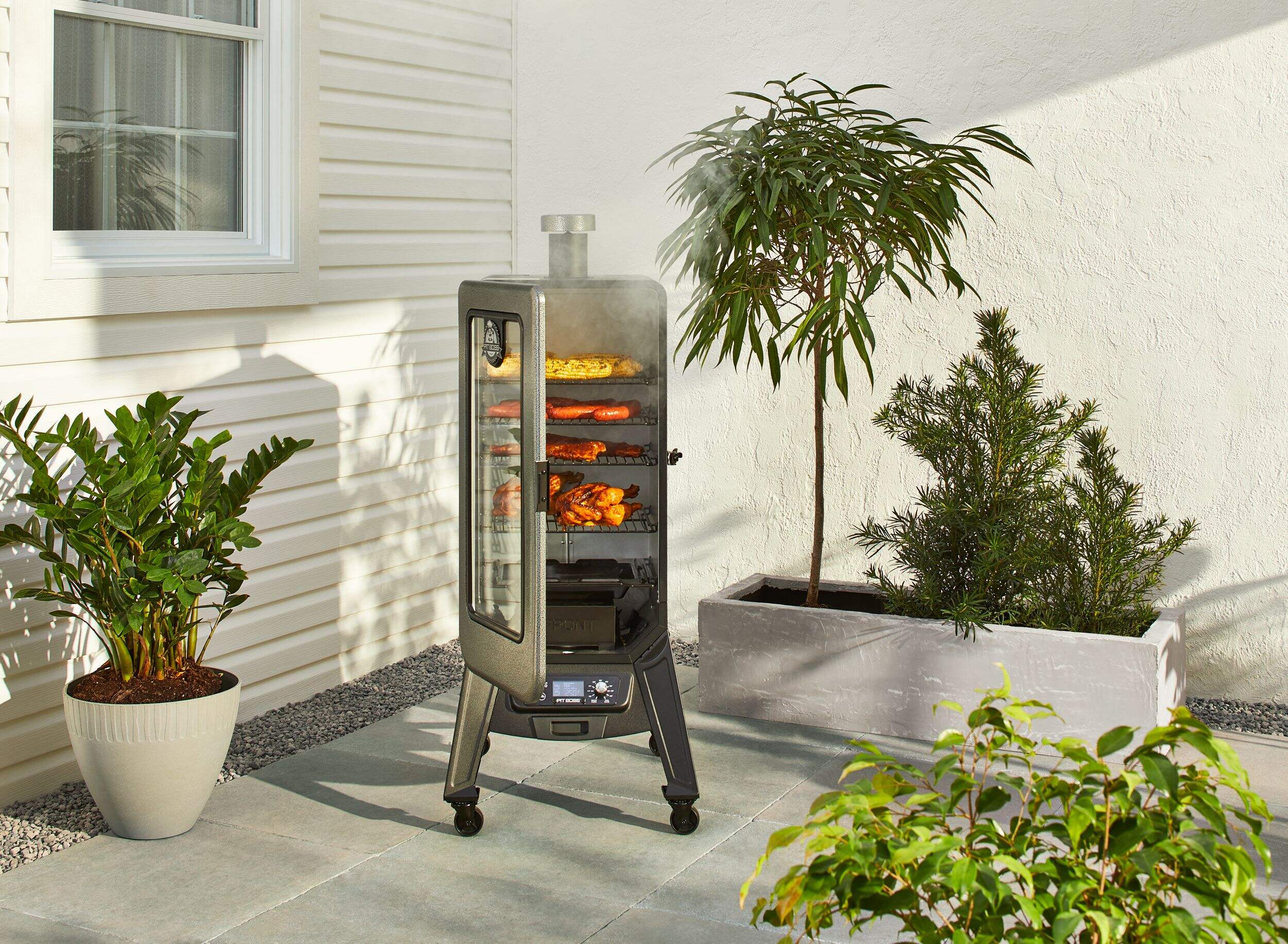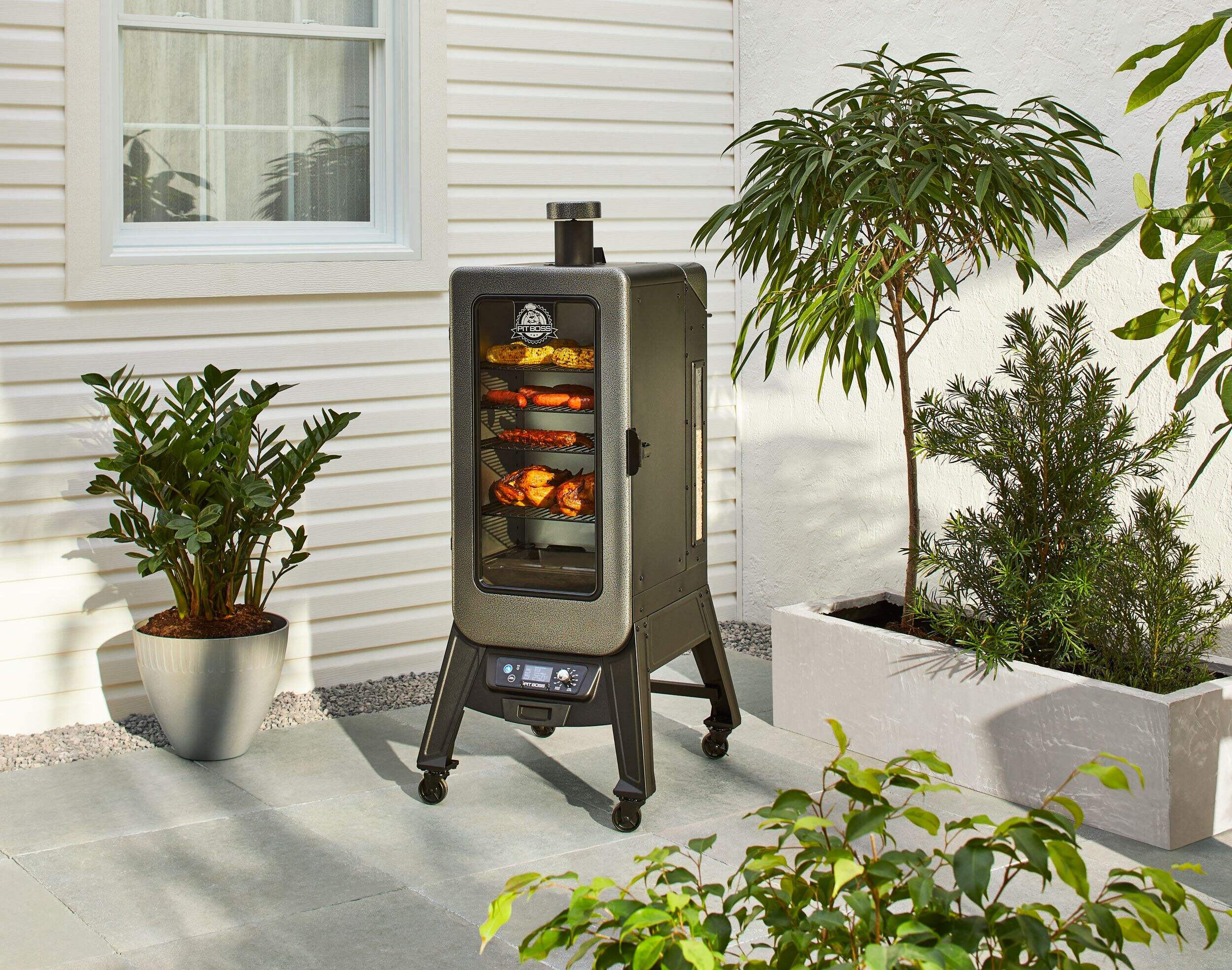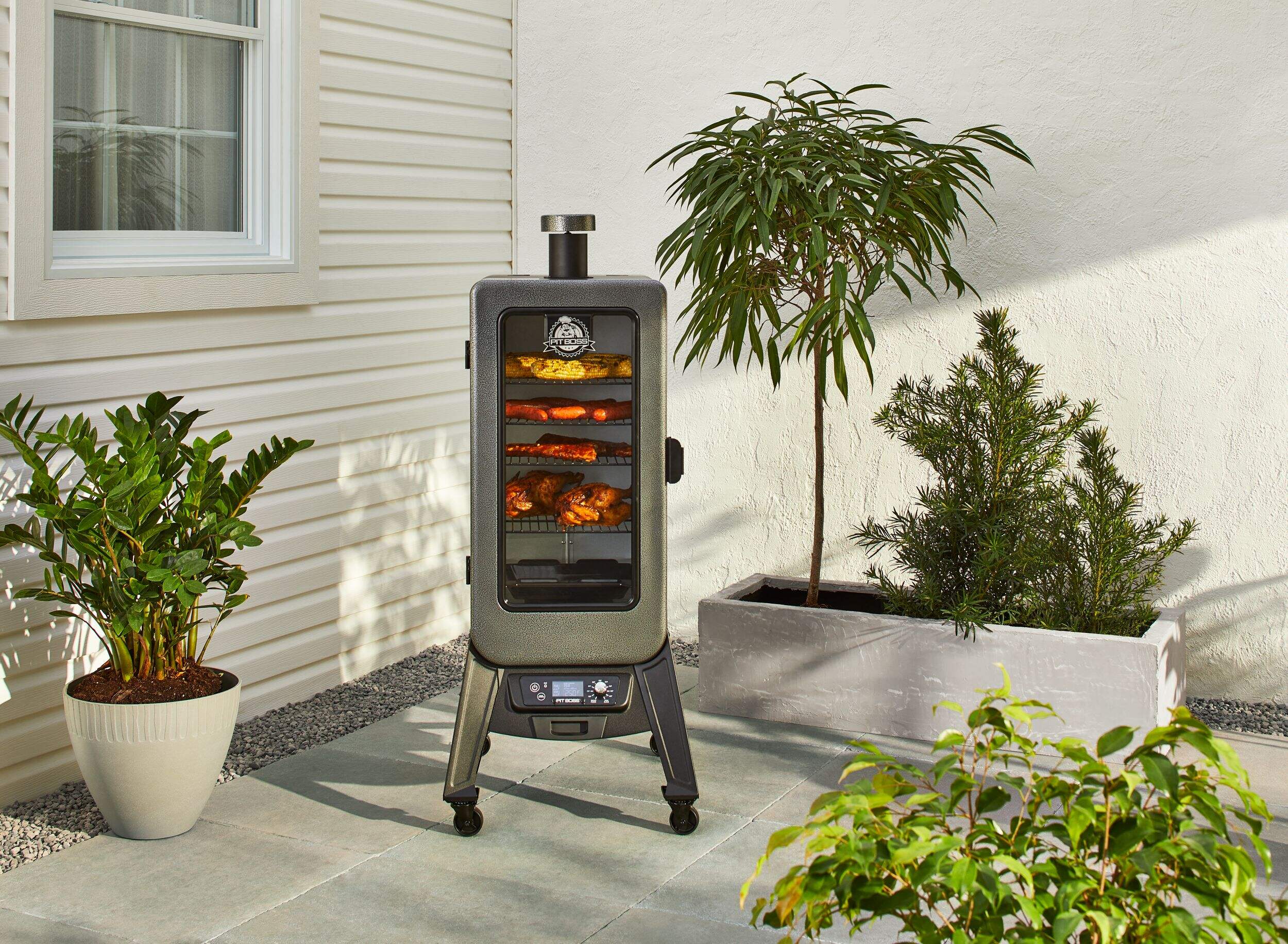 Pit Boss 3-Series Digital 4-Rack Wood Pellet Vertical Smoker with a Glass Door offers an exceptional smoking experience with smart, user-friendly features. Designed for both seasoned pitmasters and beginners, this smoker provides consistent heat distribution for perfect results every time. Whether you’re smoking fish, meat, or veggies, this versatile smoker offers the perfect balance of efficiency and convenience, transforming your outdoor cooking experience.