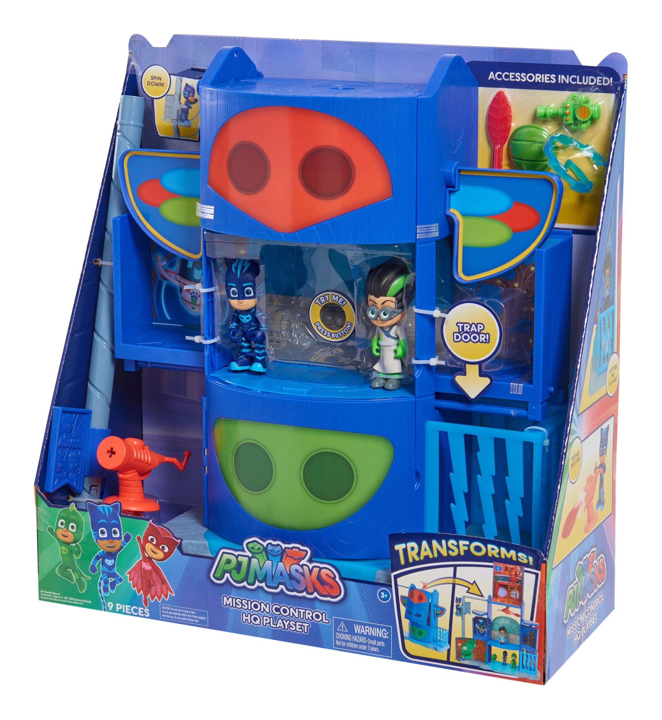 PJ Masks Mission Control Headquarters Playset includes one Mission Control HQ playset, one Catboy Figure, and one Romeo Figure