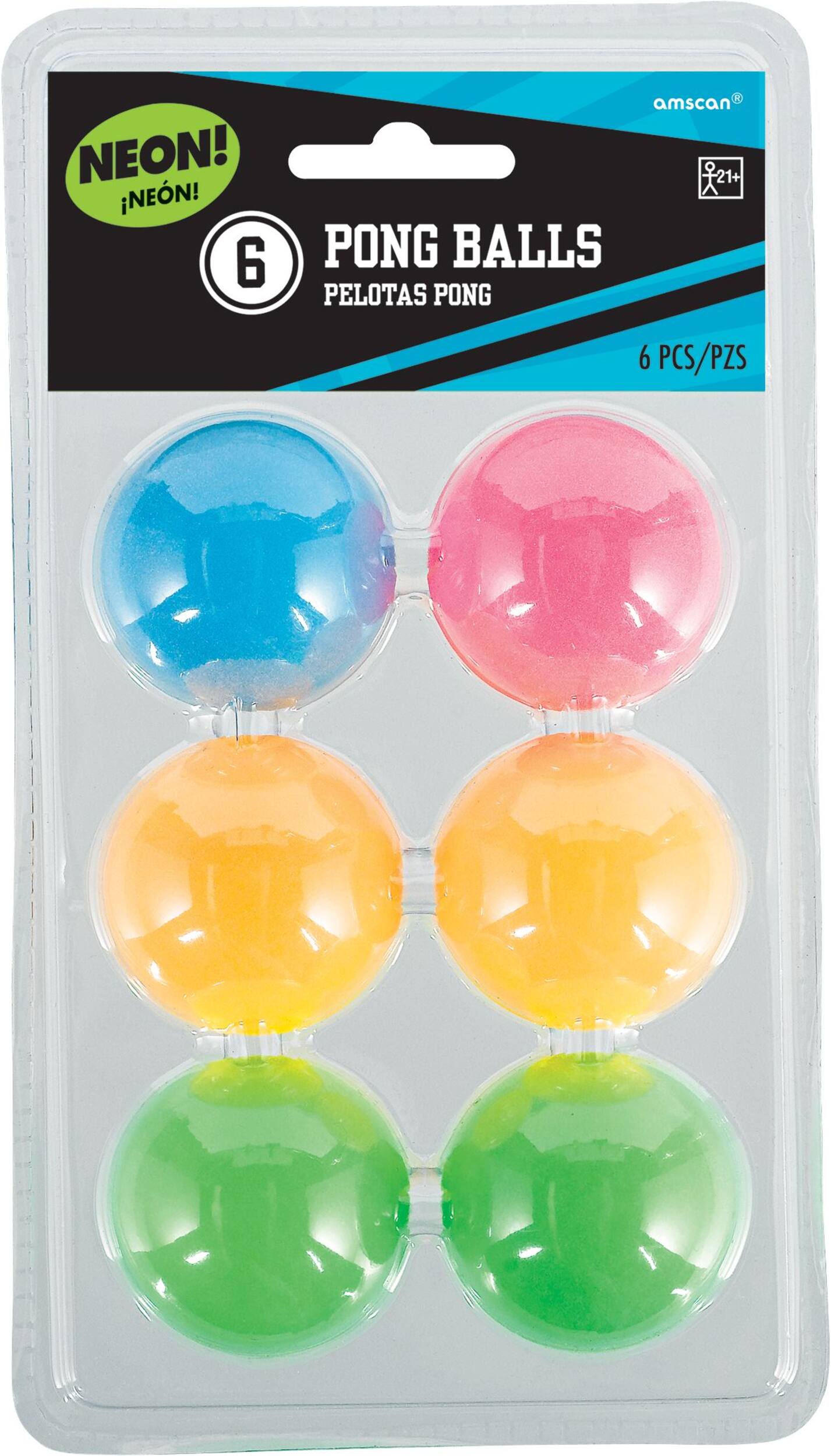 These six multi-colored ping pong balls are perfect for an adult game night. Made of sturdy yet lightweight plastic, the balls glow under blacklights and come in assorted neon shades to add some fun to your next party. Keep the competition friendly while using these brightly colored balls for beer pong or any other indoor games with friends. The 1.5 inch diameter makes them easy to grip and toss accurately into cups from across the room.
