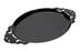 Plastic Round Serving Tray is black in colour with lace-like handles, perfect for serving Halloween goodies
