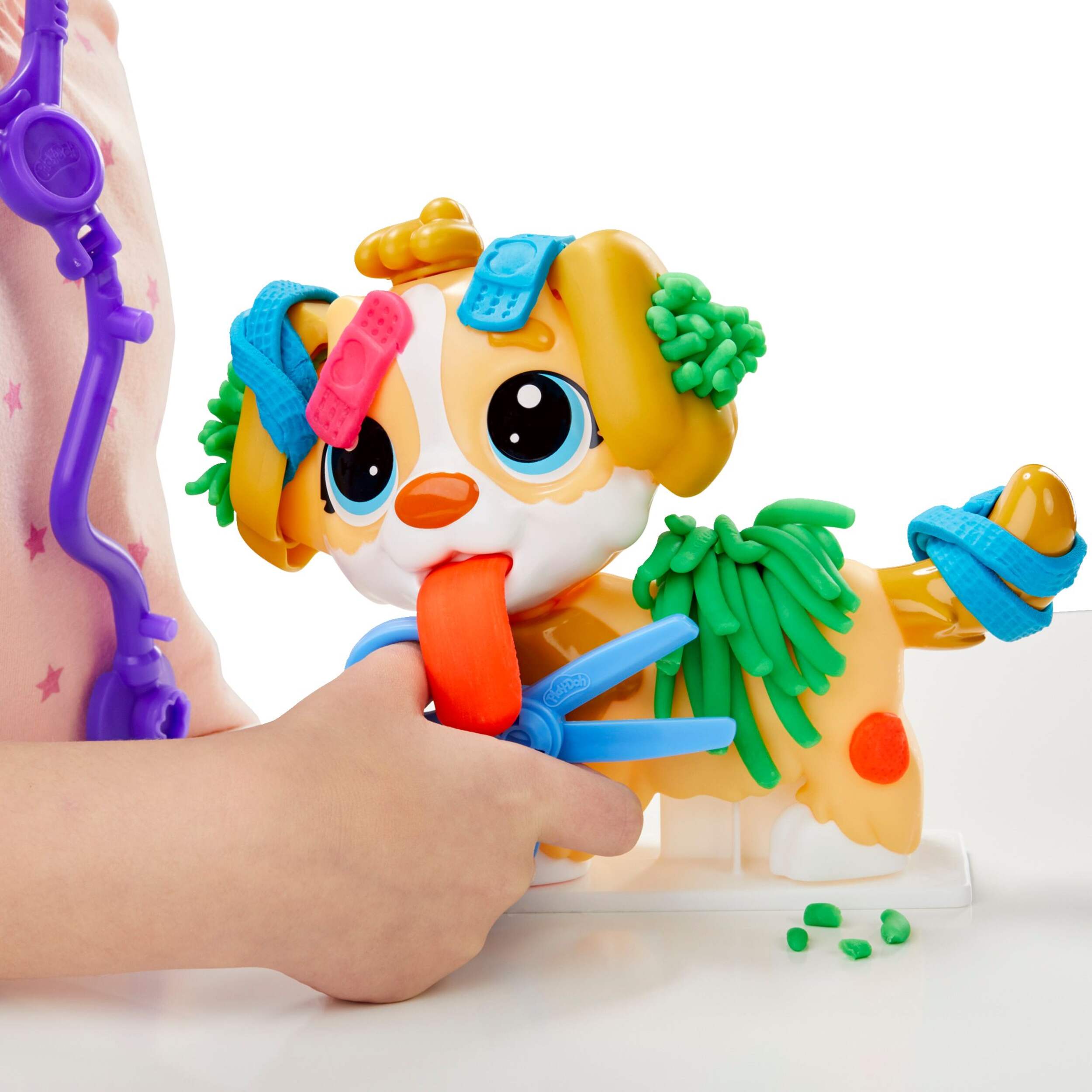 This Play-Doh Care N' Carry Vet Playset for young animal lovers allows kids ages 3 and over to pretend care for their toy dog. The set includes 5 colours of non-toxic Play-Doh compound and 10 toy vet tools like a stethoscope and thermometer for an imaginative check up. Mould Play-Doh "hair" on the toy puppy, pluck fake "fleas" out with tweezers and trim the haircut with included scissors. The 10 ounce compound cans and veterinary kit tools provide hours of creative role play, practising responsibility and nurturing skills that make a great present for any occasion.