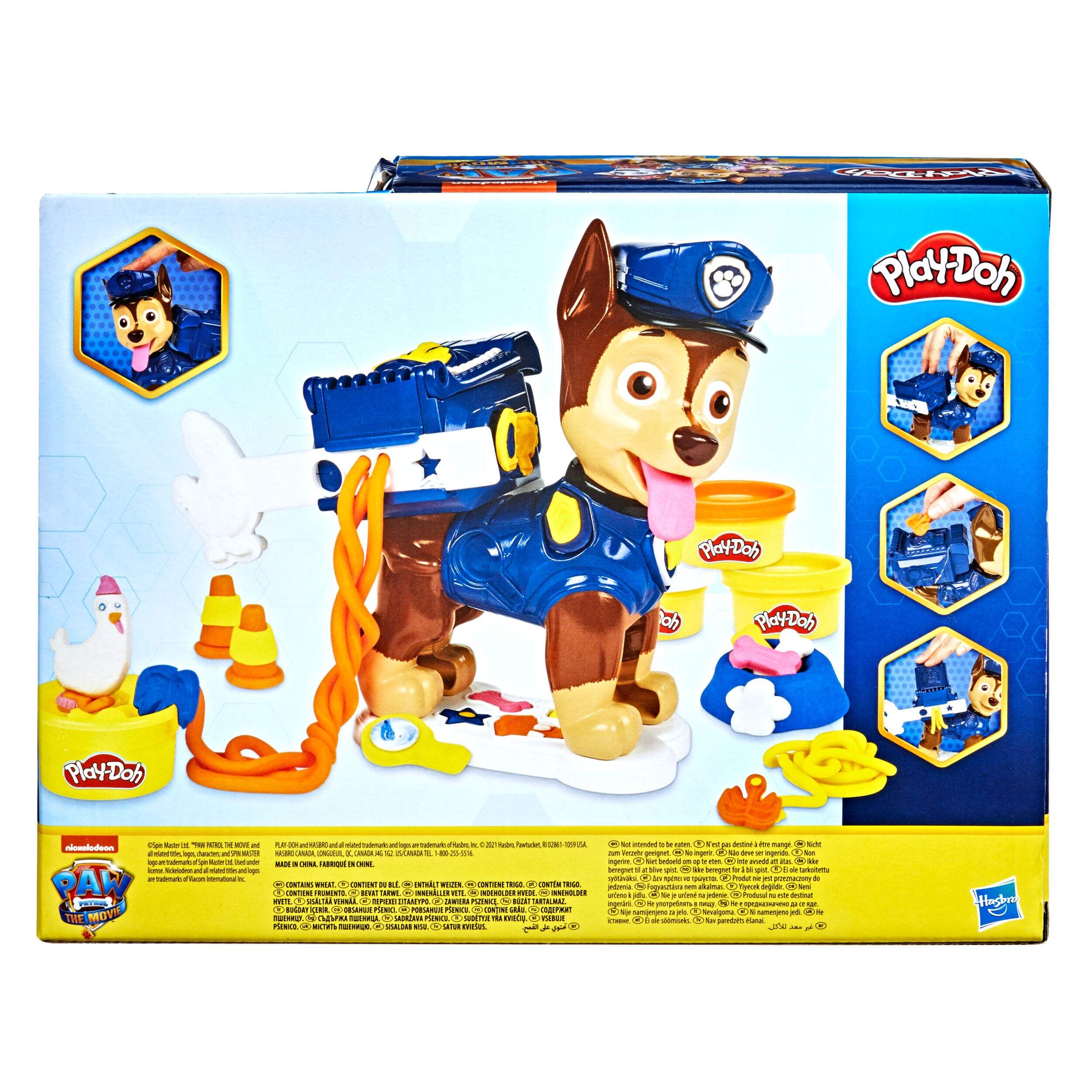 Jump into action-packed fun with the Play-Doh Paw Patrol The Movie Rescue Ready Chase Playset. This large-scale Chase figure is ready for his next mission. Use the fun factory pup pack to extrude his grappling hook or remove the pack to play separately. For more Play-Doh fun, extrude Chase's tongue and fill in his badges. Chickaletta even makes an appearance! This 5-piece, non-toxic playset includes Play-Doh compound and is ideal for ages 3+.