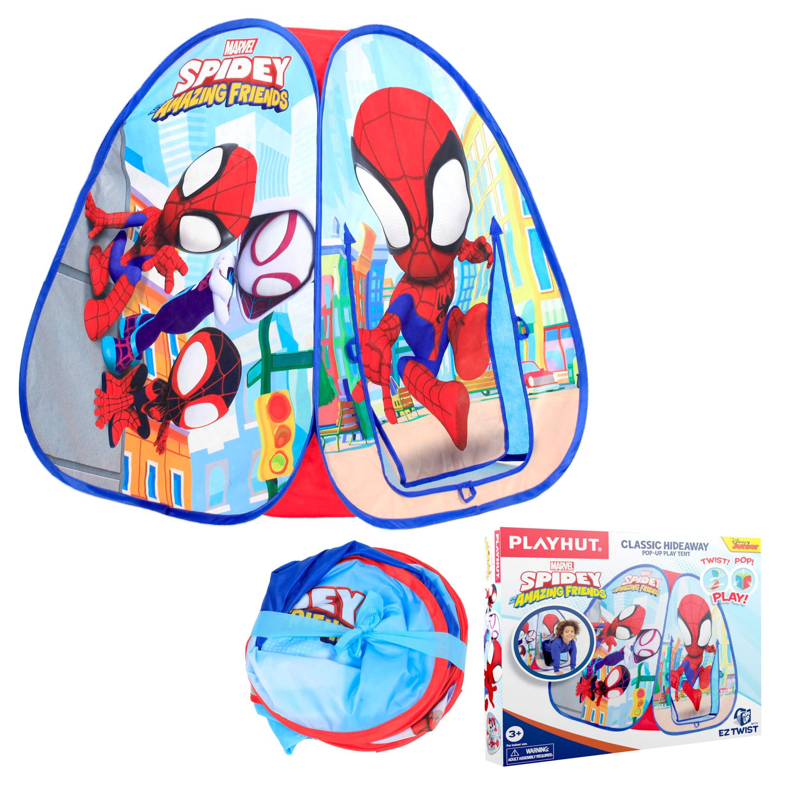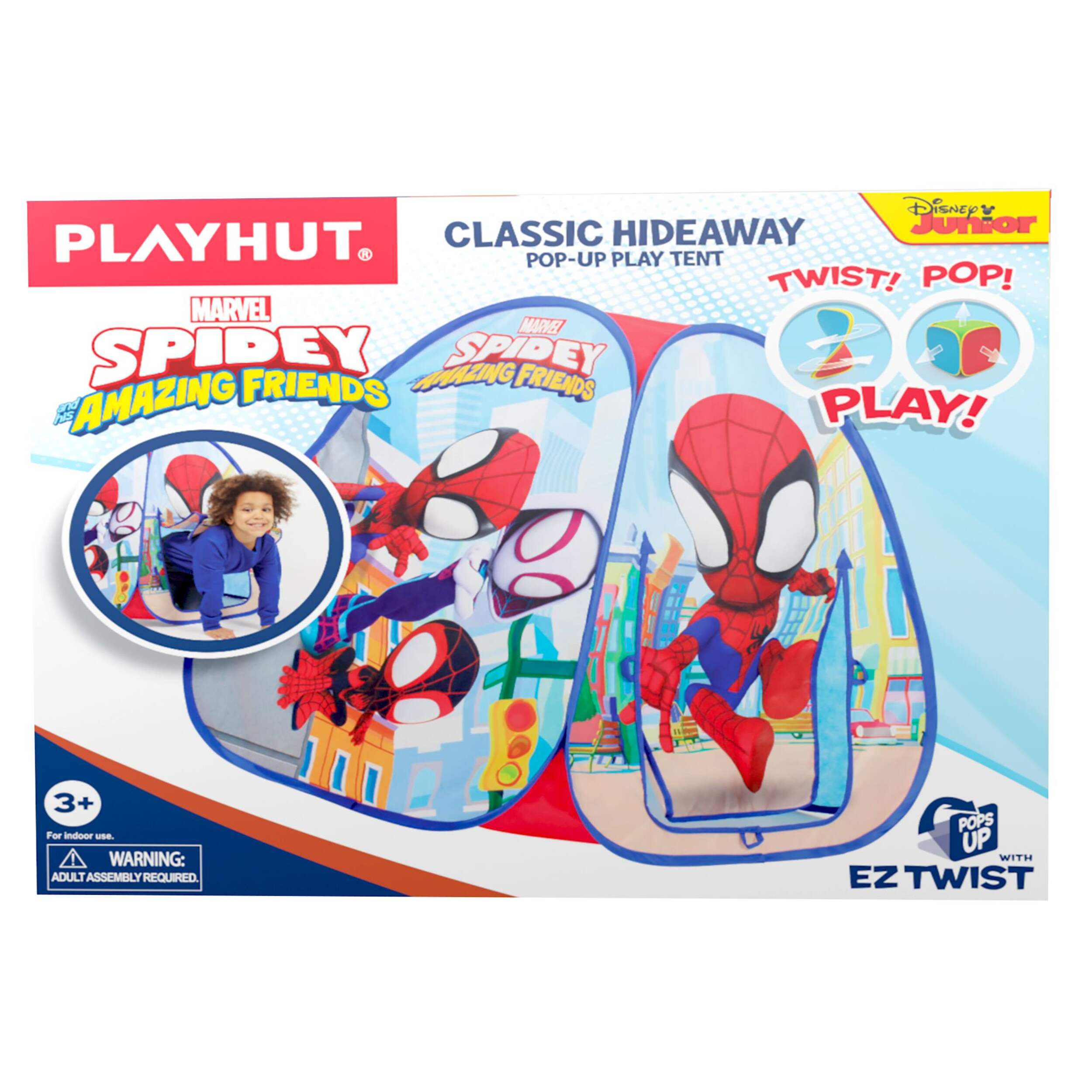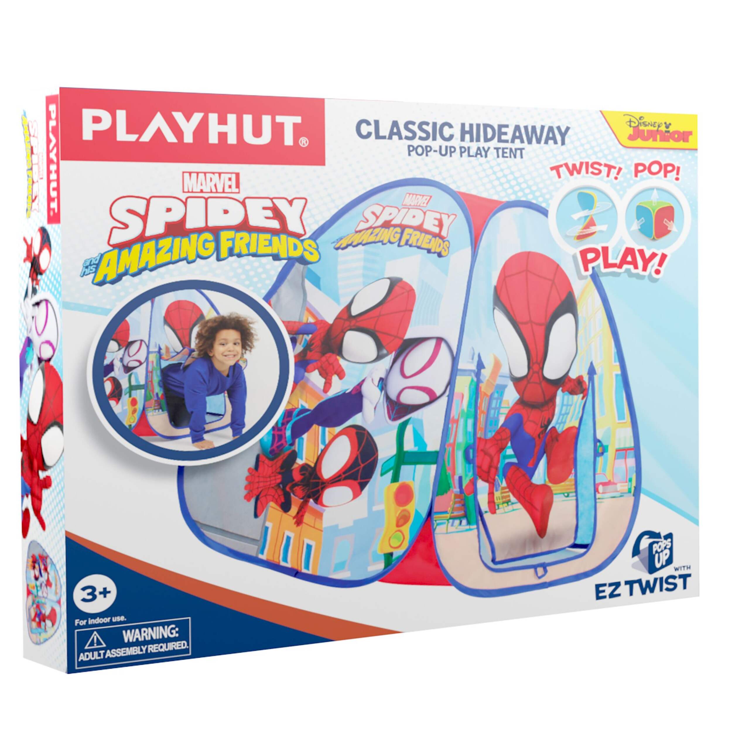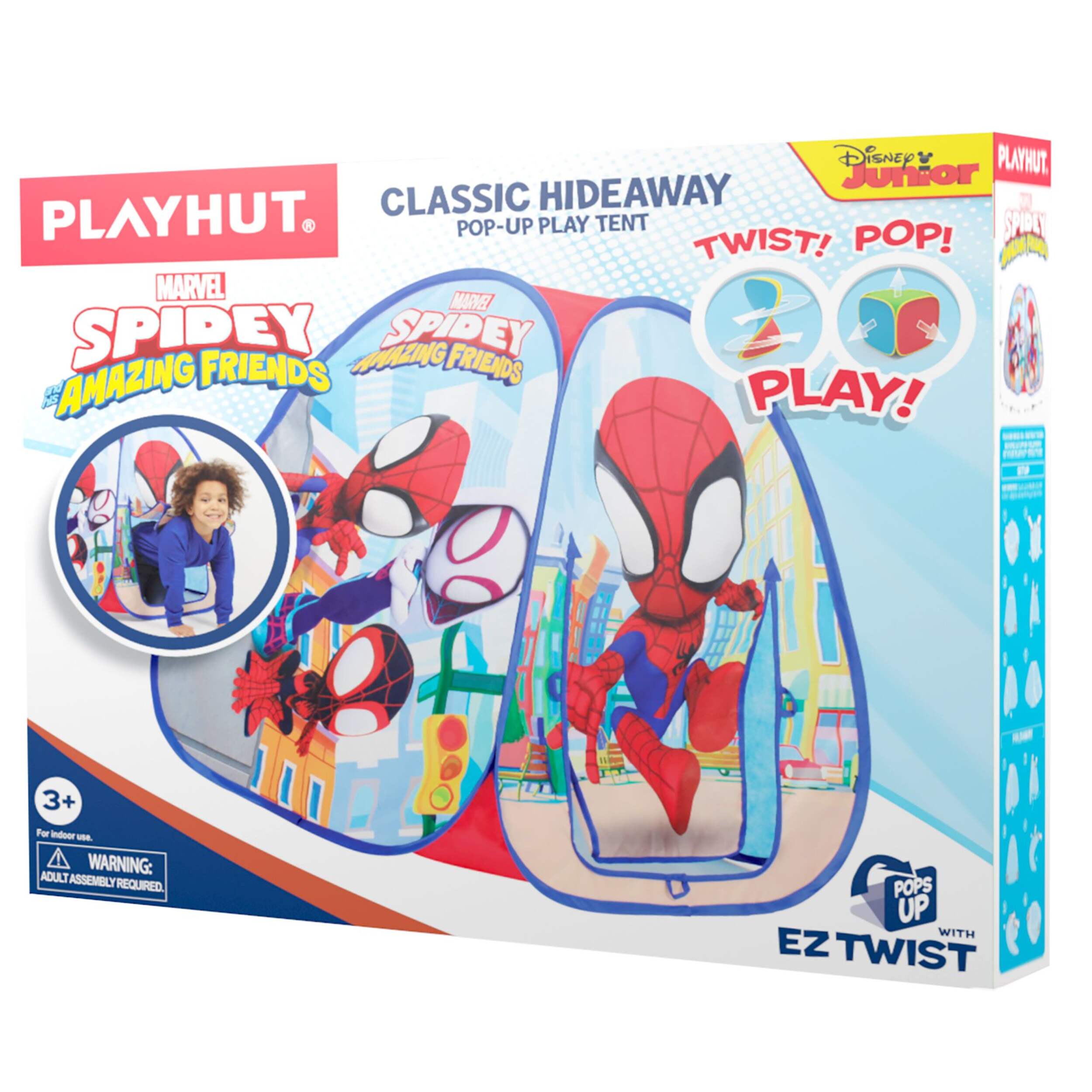 Playhut’s EZ Twist Tent's frame allows the play tent to pop up in seconds and fold down just as easily with patented Twist N’ Fold technology