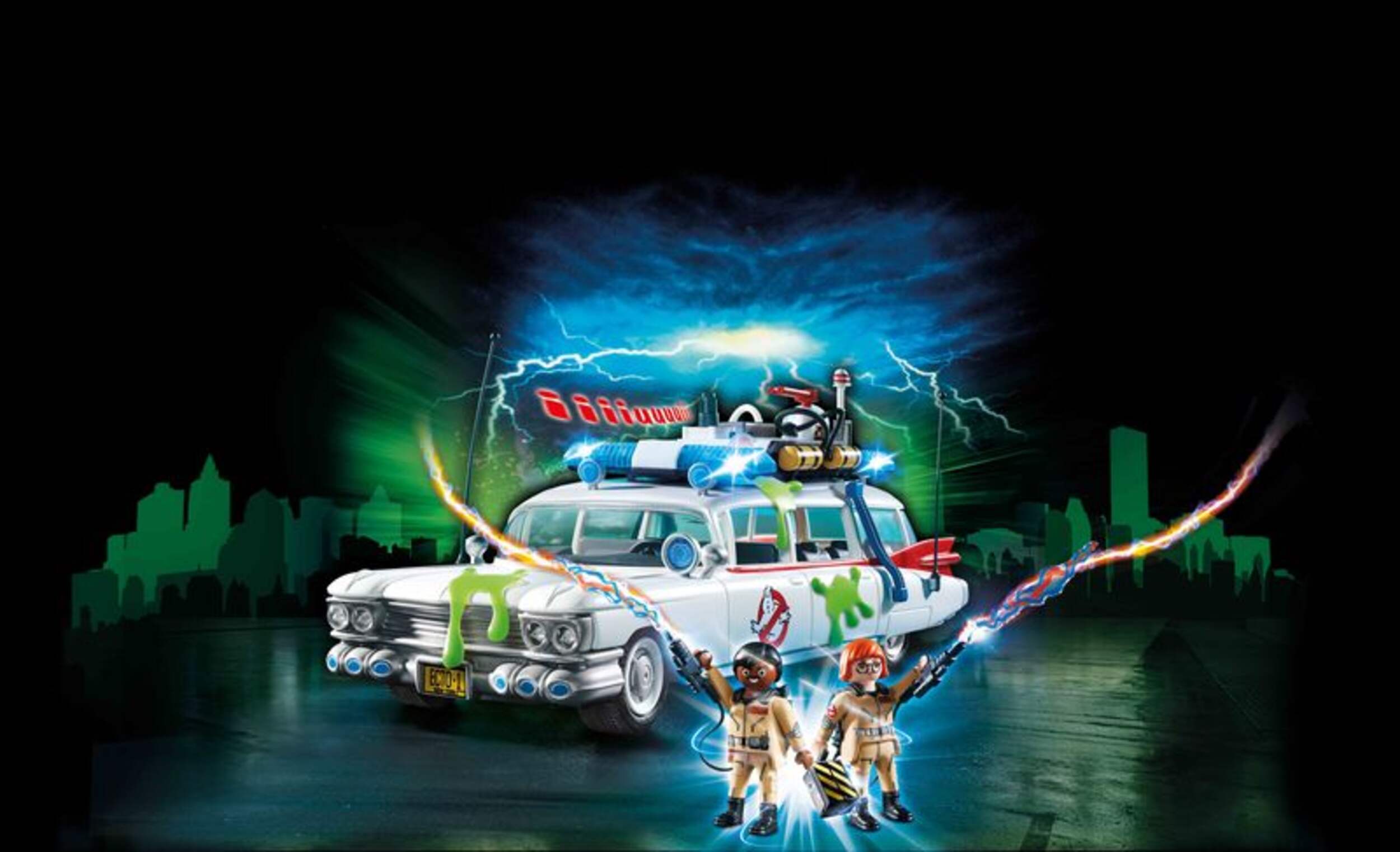 PLAYMOBIL Ghostbusters™ Ecto-1 is a legemdary action vehicle that offers space for four Ghostbusters figures, their proton packs, ghost traps and other equipment
