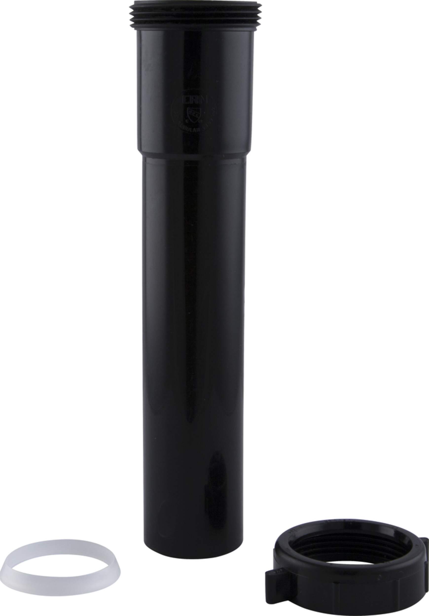 PlumbShop's black plastic ABS extension pipe comes with nuts and washers, for easy do-it-yourself projects. Measuring 1-1/2 inches in diameter and 8 inches long, this pipe is a simple yet essential addition to any handymans plumbing toolbox. Whether you need to extend a drain pipe under a sink, dress up an exposed pipe, or fix a leaky drain, this extension does the job quickly and cleanly.