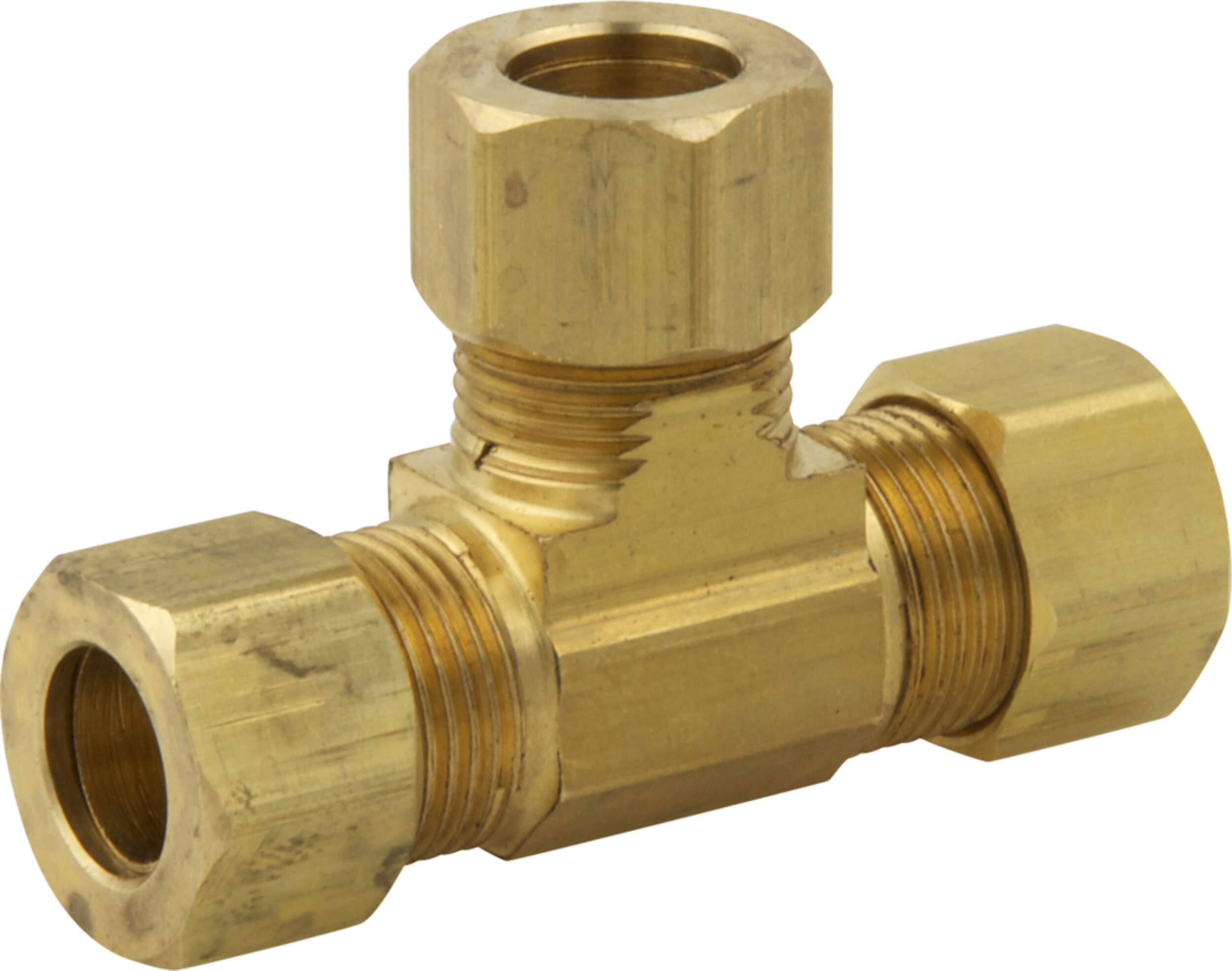 This sturdy PlumbShop compression tee is crafted from solid brass, ensuring reliable performance for years to come. With 3/8-inch outer diameter tube connections on all three ends, this tee fitting allows you to make junctions within your plumbing system with ease. Whether you need to divert water flow to another branch or connect pipes coming from multiple directions, this brass tee provides a secure fit and seal. Sold individually, this high-quality fitting is engineered to last through countless connections and disconnections.