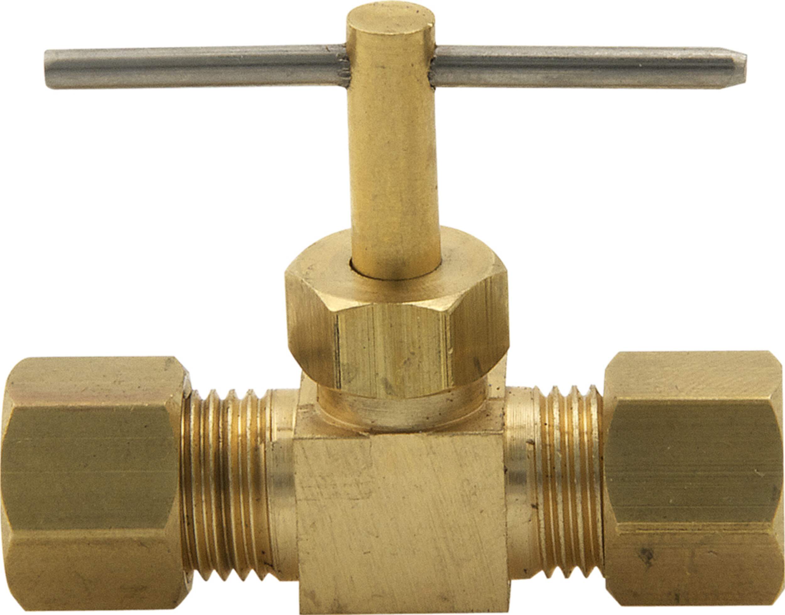 This solid brass needle valve from PlumbShop helps you precisely control the flow of liquids through 1/4 inch OD tubing. The pack includes one needle valve so you can section off parts of your piping system and adjust the flow as needed for projects. Whether regulating flow in a hydroponics system, an aquarium, or a DIY irrigation setup, the high-quality brass construction ensures long-lasting performance.