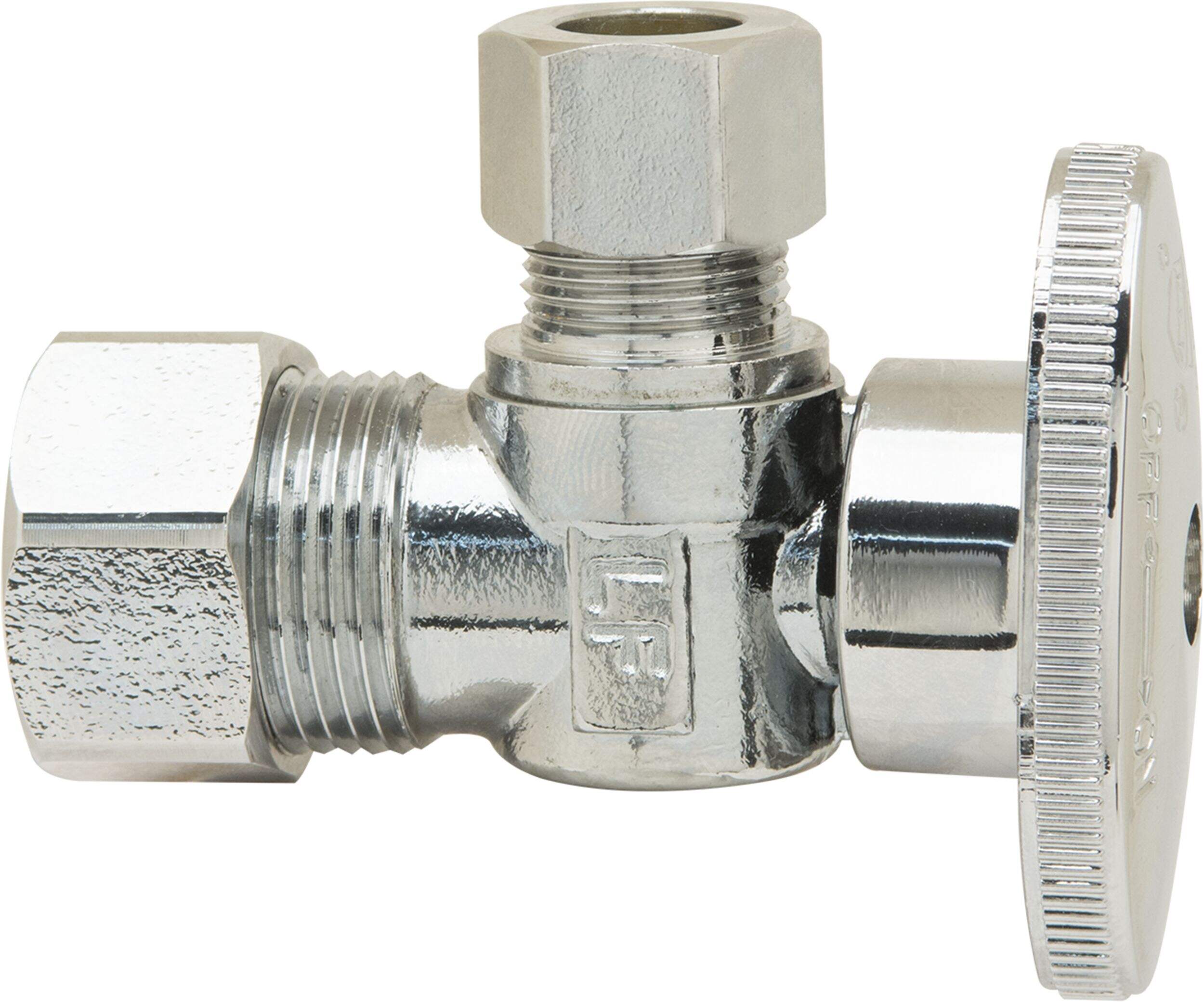The PlumbShop Chrome Plating Mini Valve, Elbow Shape, 1/2-in Nom, Comp x 3/8-in OD Comp, lets you make tight turns in tight spaces. Compact but mighty, this valve features 1/2-inch nominal compressed fittings on one end and 3/8-inch outer diameter compressed fittings on the other, allowing you to join pipes of different sizes. The chrome finish resists corrosion and makes for a neat and tidy installation that will stand the test of time. Whether finishing a bathroom reno or troubleshooting an old pipe system, this compact valve is a handy tool to have in your plumbing toolbox.