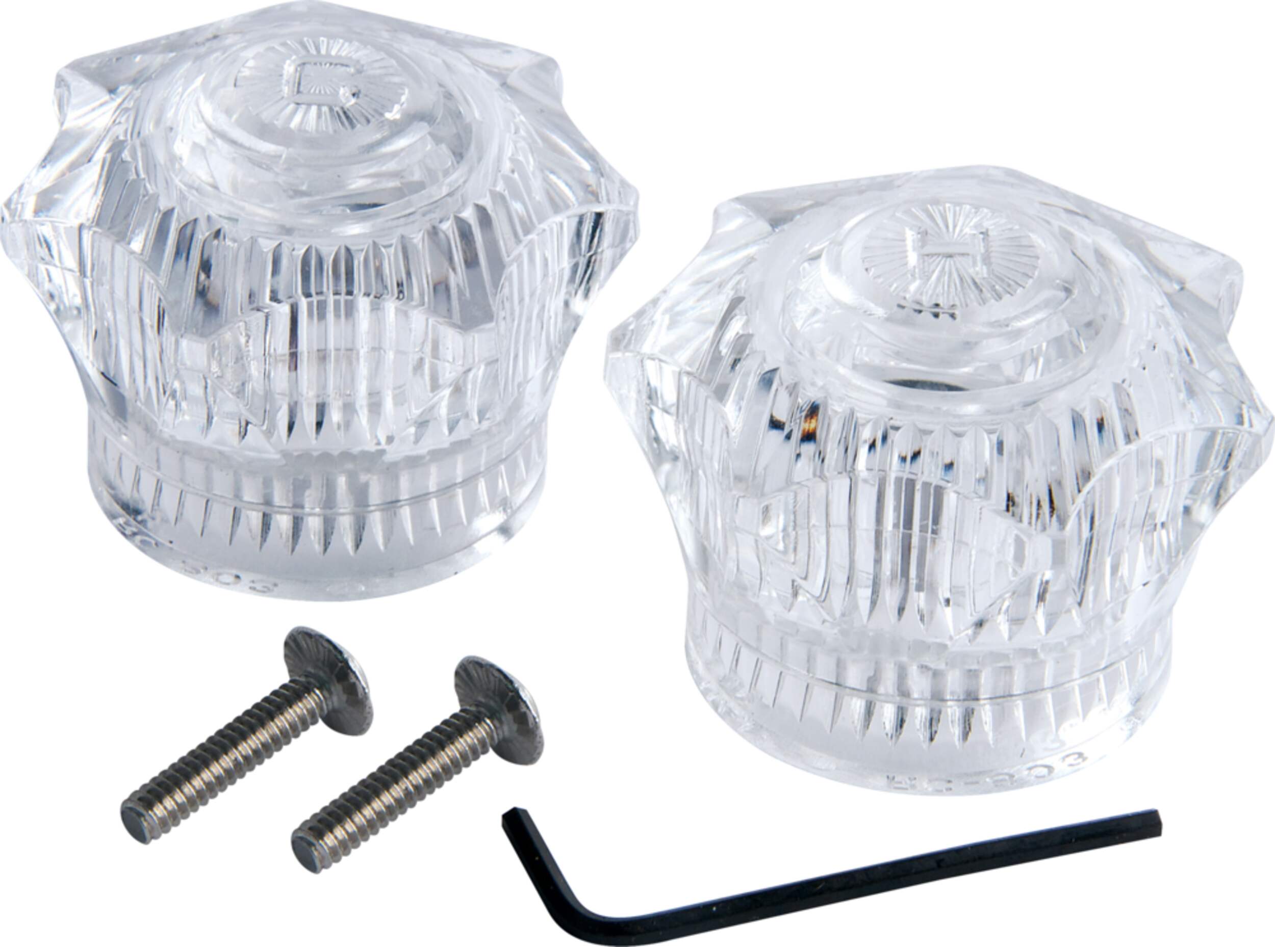 Plumbshop Acrylic Faucet Handles are a knob-style replacement handle for bathtub, shower or sink faucets