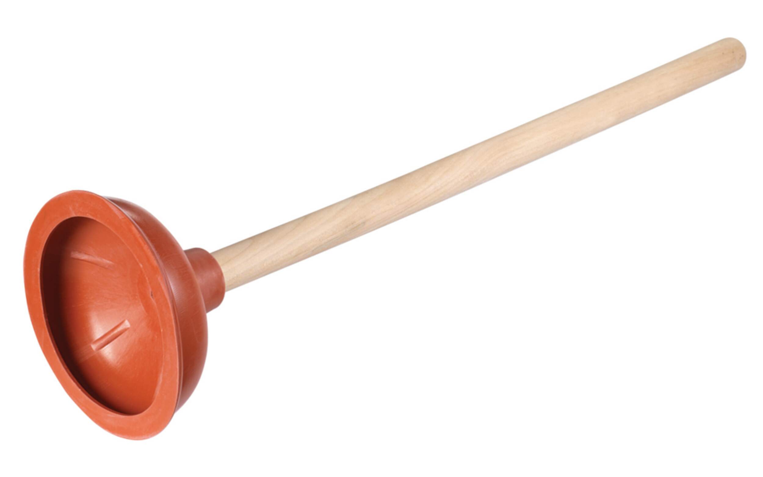The PlumbShop Sink Plunger, 5-in Force Cup with 18-in Wooden Handle, features a 5-inch rubber suction cup at the end of an 18-inch wooden handle to unclog drains with maximum power. With no bells or whistles, just simple design and brute force, this plunger will get your sink drain flowing freely again in no time. Simply insert the cup into the drain opening, and move the plunger up and down to create a powerful vacuum that will dislodge debris and hair clogs clogging your pipes.