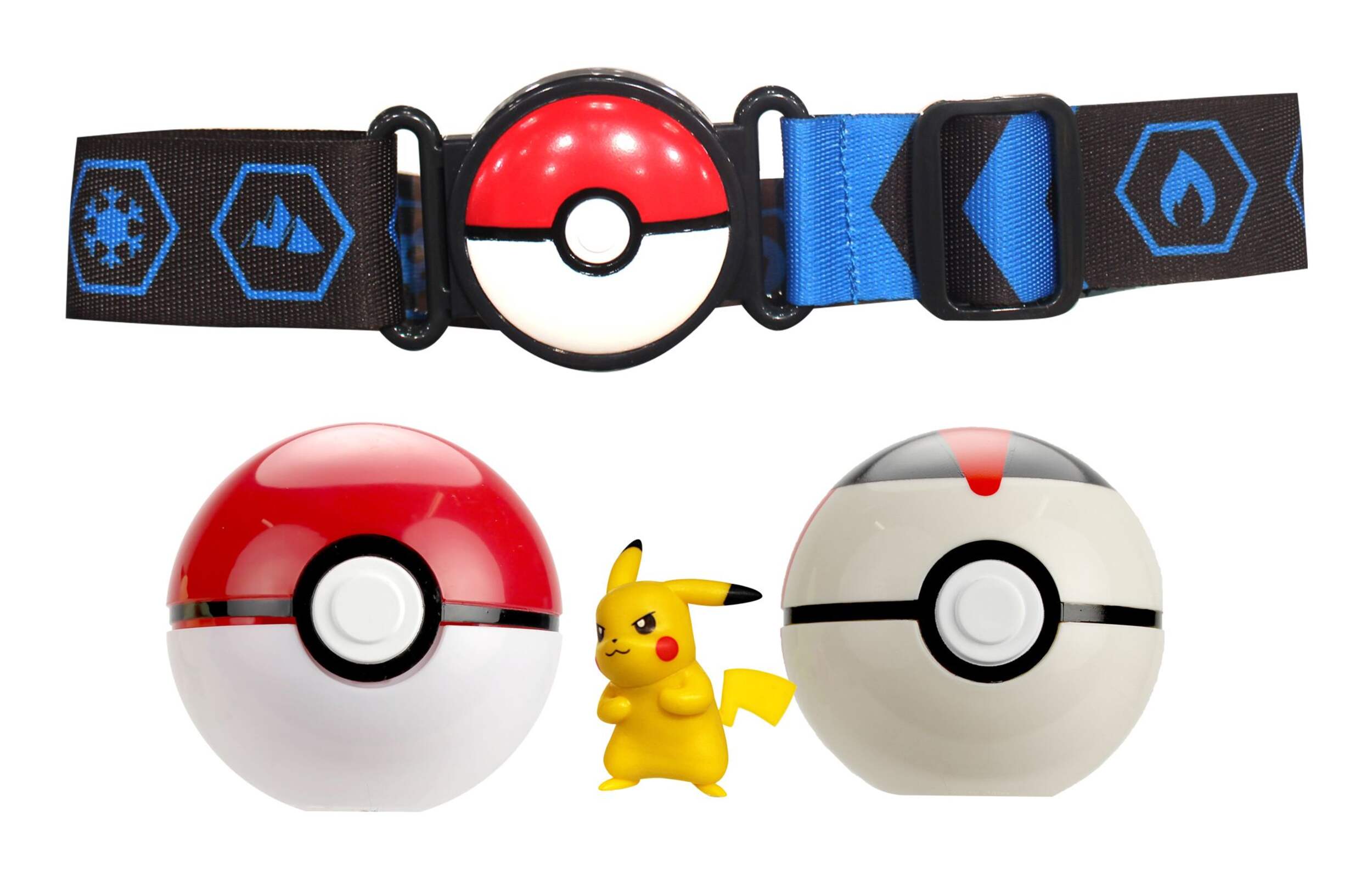 Includes - Adjustable Pokémon Trainer Belt, 2" Pokémon figure, Poké Ball, and Nest Pokémon Ball