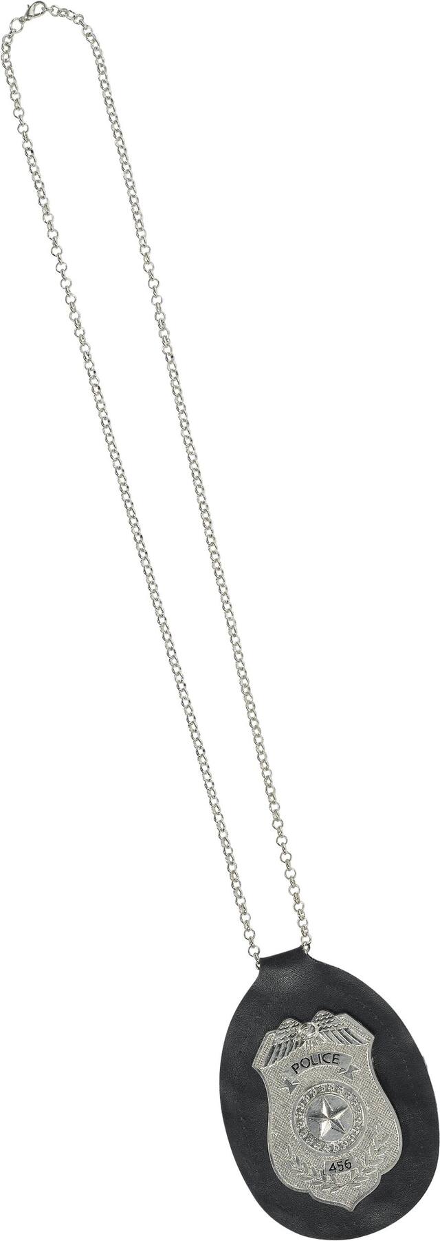 Party fun will be enforced when you walk in wearing the Police Badge Necklace Halloween Costume Accessories. This accessory features a silver plastic police badge attached to faux leather backing and includes a long metal chain with a lobster claw clasp. The badge reads "Police" and precinct number "456" and includes an inscribed eagle. Use this police prop as part of your police detective Halloween costume, or use it to fool your friends. The 30-inch long metal chain has a high-quality badge measuring 3 1/4 x 4 1/2 inches. Not for children under 8 years.