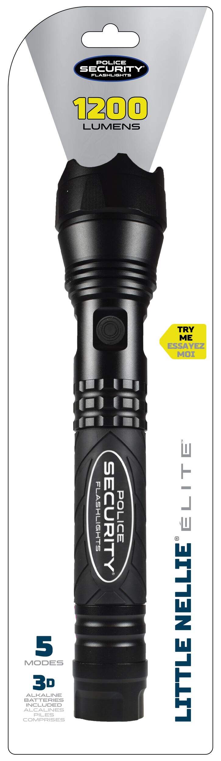The Police Security 1200 Lumens Little Nellie Handheld LED Flashlight combines power, durability, and convenience in a compact design. This flashlight features four lighting modes: high, medium, low, and flash. Whether you're hiking, camping, or using it around the house, the Little Nellie flashlight is the perfect companion. Plus, with batteries included, this light comes ready to use right out of the box.