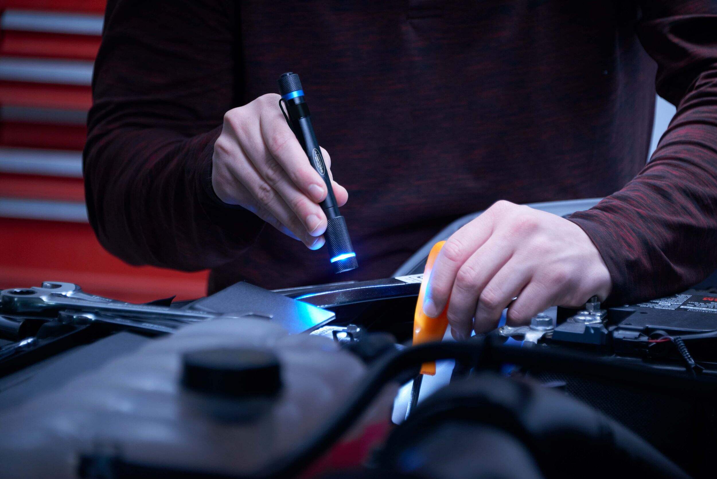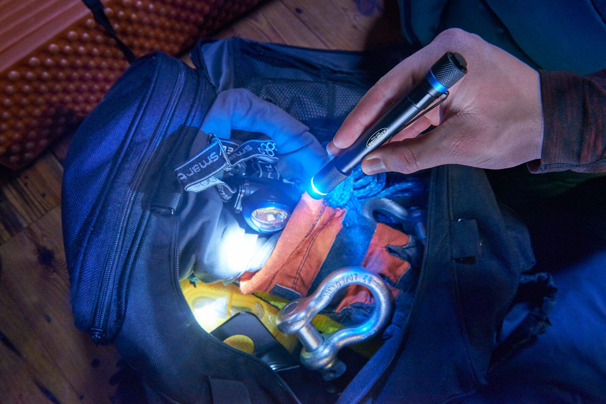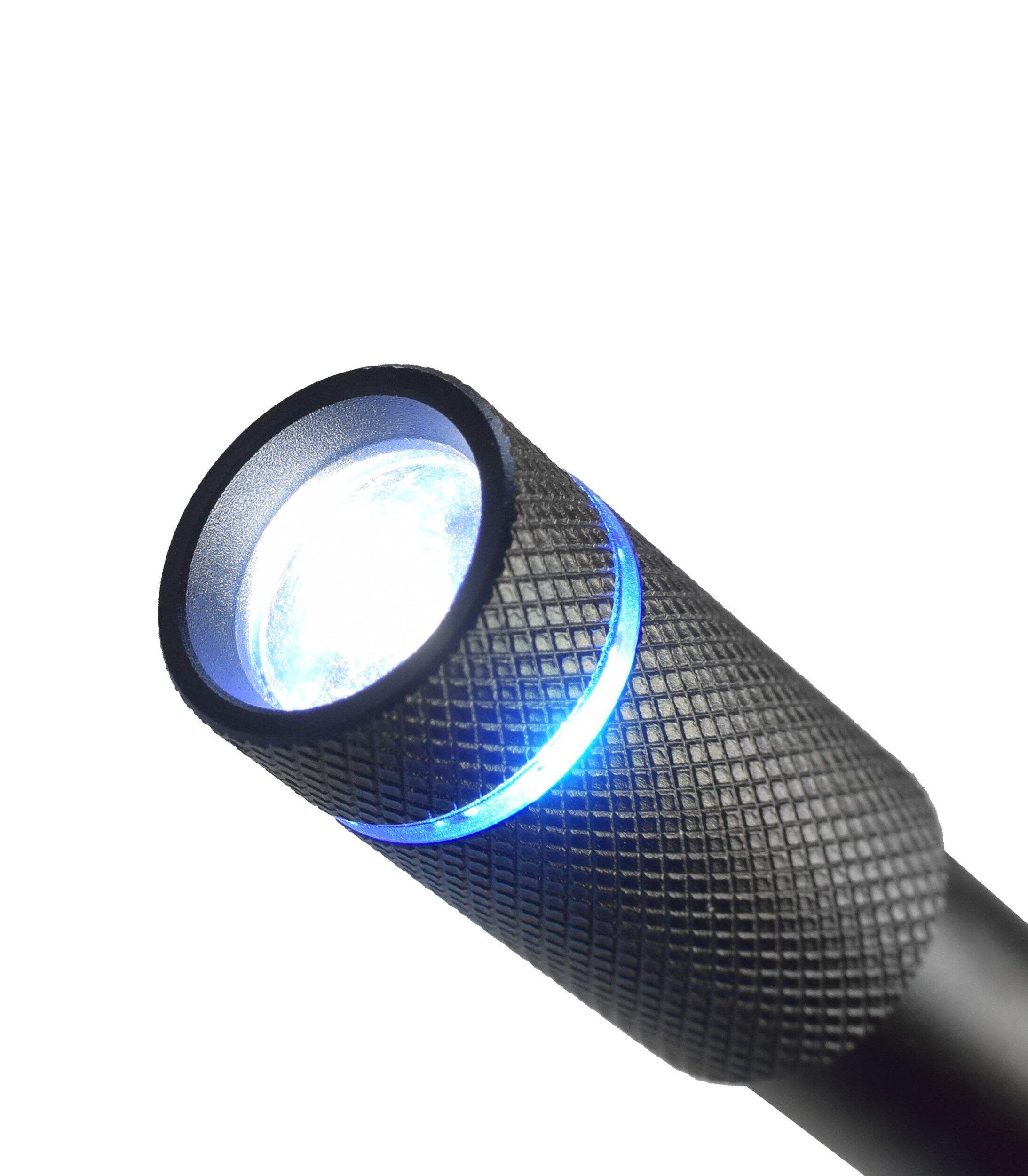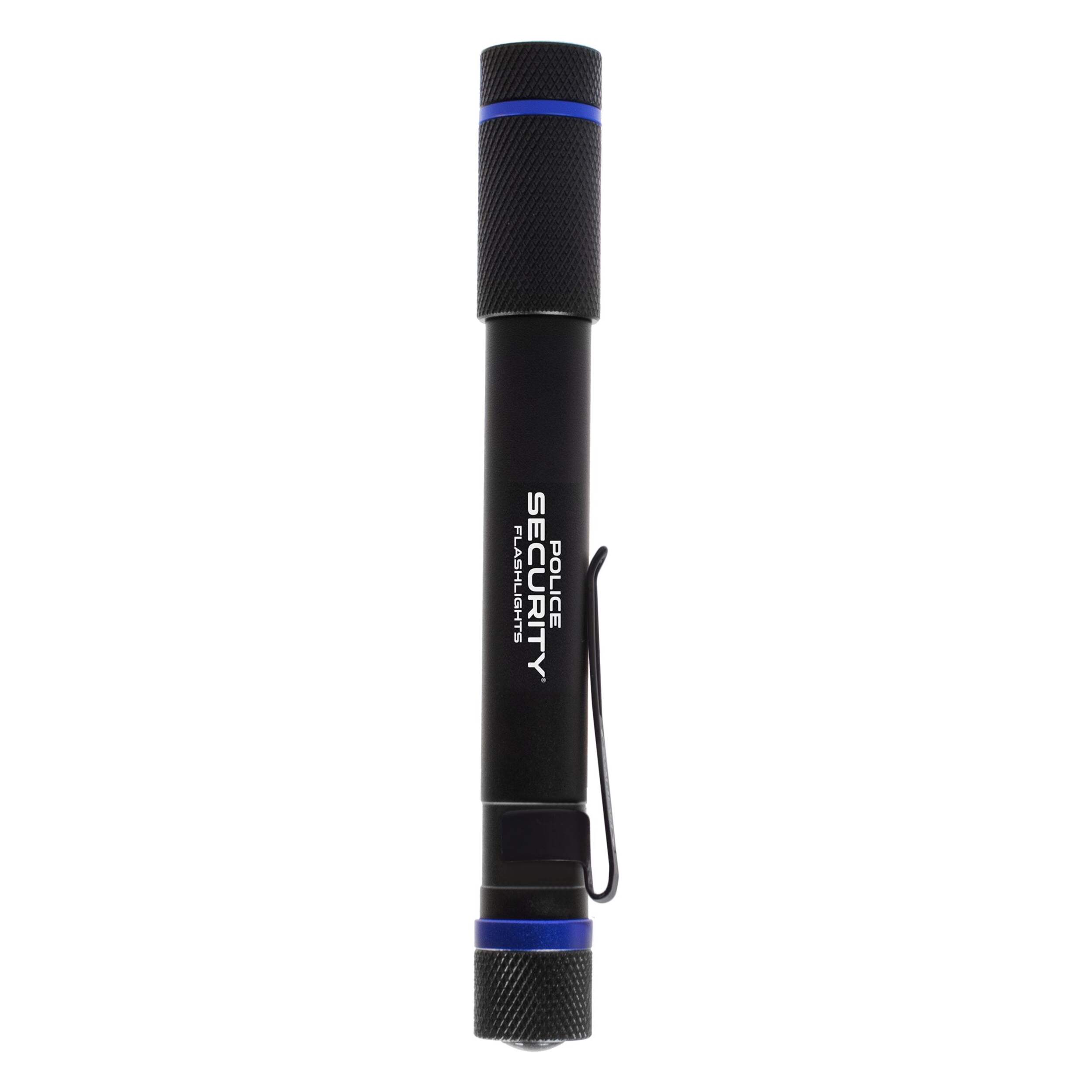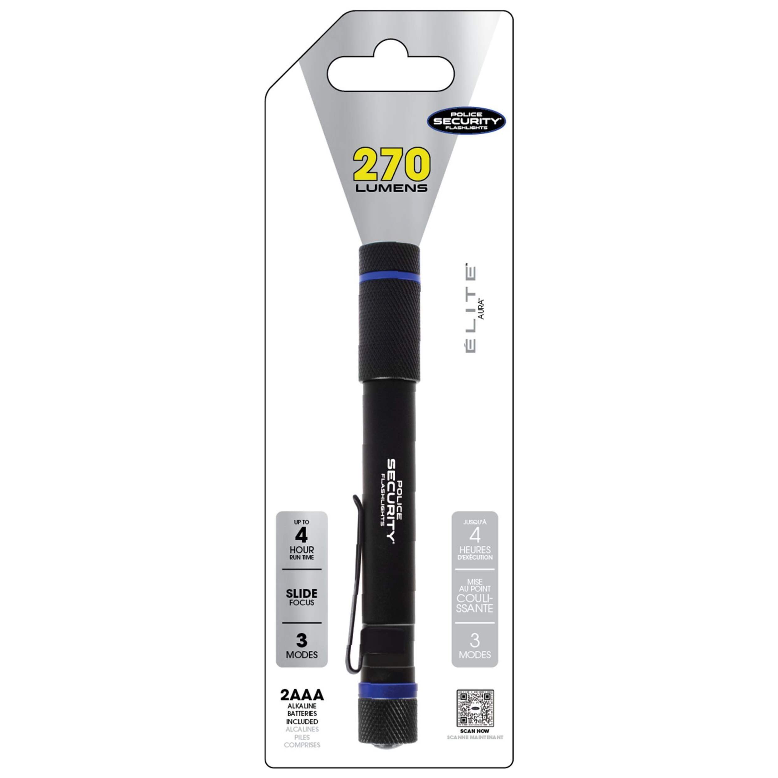 Police Security’s Aura is an innovative, slide focus penlight. With its sleek design and light up bezel when focused, this flashlight fits easily in a pocket or purse. Powered by 2 AAA Police Security batteries (included), this ultra-bright 270 lumen flashlight features three settings and a 2-hour run time on high.