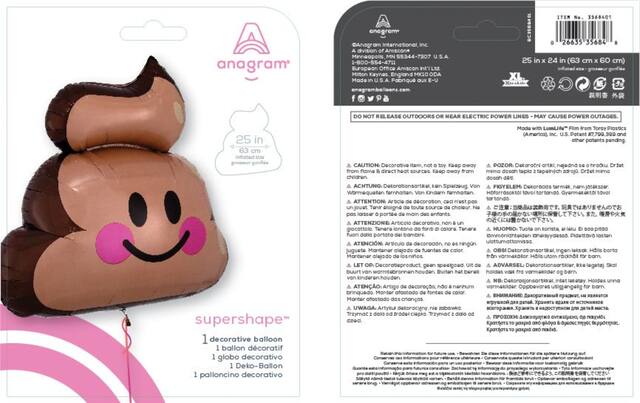 The Poop Icon Foil Balloon is shaped like the smiling poop emoji with printed-on pink cheeks. Ideal for hilarious party decor, this emoji balloon comes uninflated but includes helium and a ribbon, so you can fill it at your local store. The 25-inch wide party balloon can stand alone or be paired with others for a foil balloon bouquet, bringing laughs and fun to any celebration.