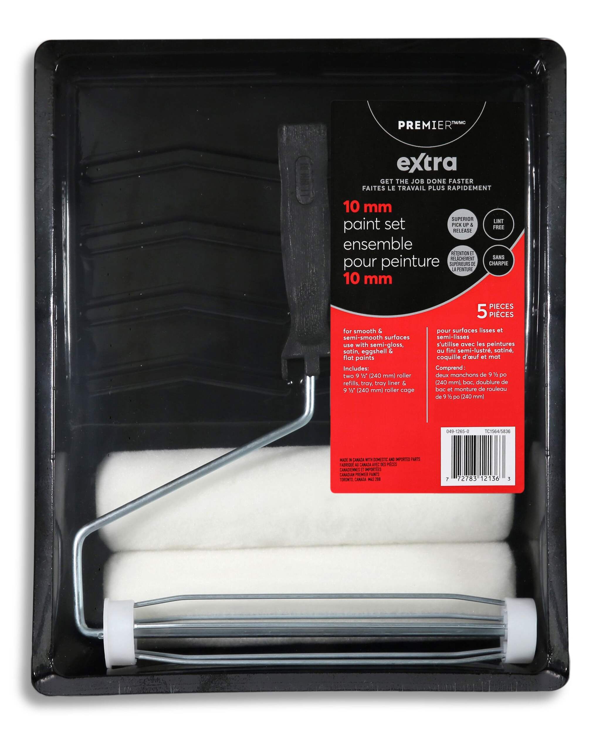 Includes: 2 x 9.5” (240 mm) roller refills, tray, tray liner, 9.5” (240 mm) roller cage