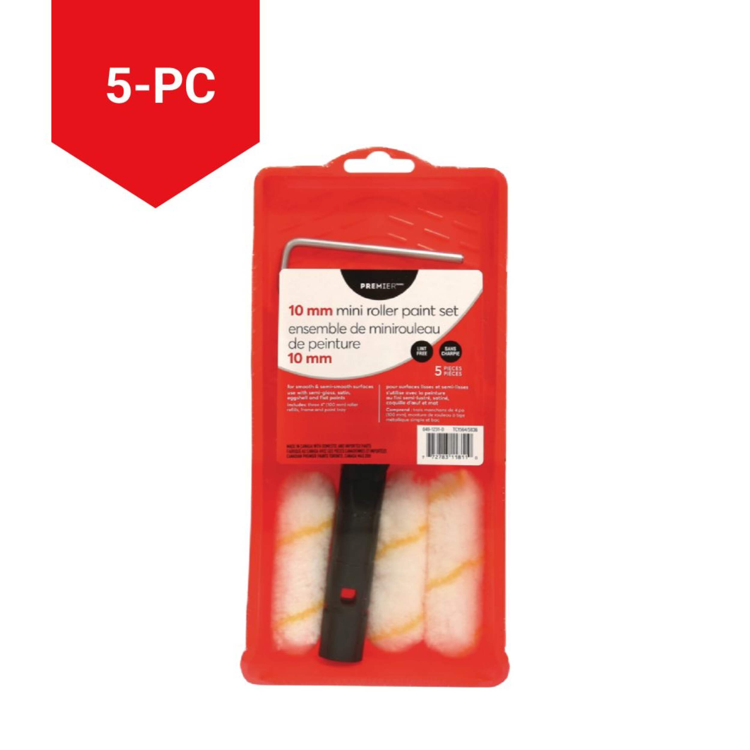 Add a dash of colour to your space with the Premier Mini Roller Paint Set. Complete with everything you need to get started, this 5-piece paint roller is a simple way to make over any space. The roller refills are lint-free and designed to pick up and release paint smoothly without releasing loose fibres into the paint, while the frame is lightweight and easy to handle. Ideal for DIYers, this paint roller refill set is a smart choice.