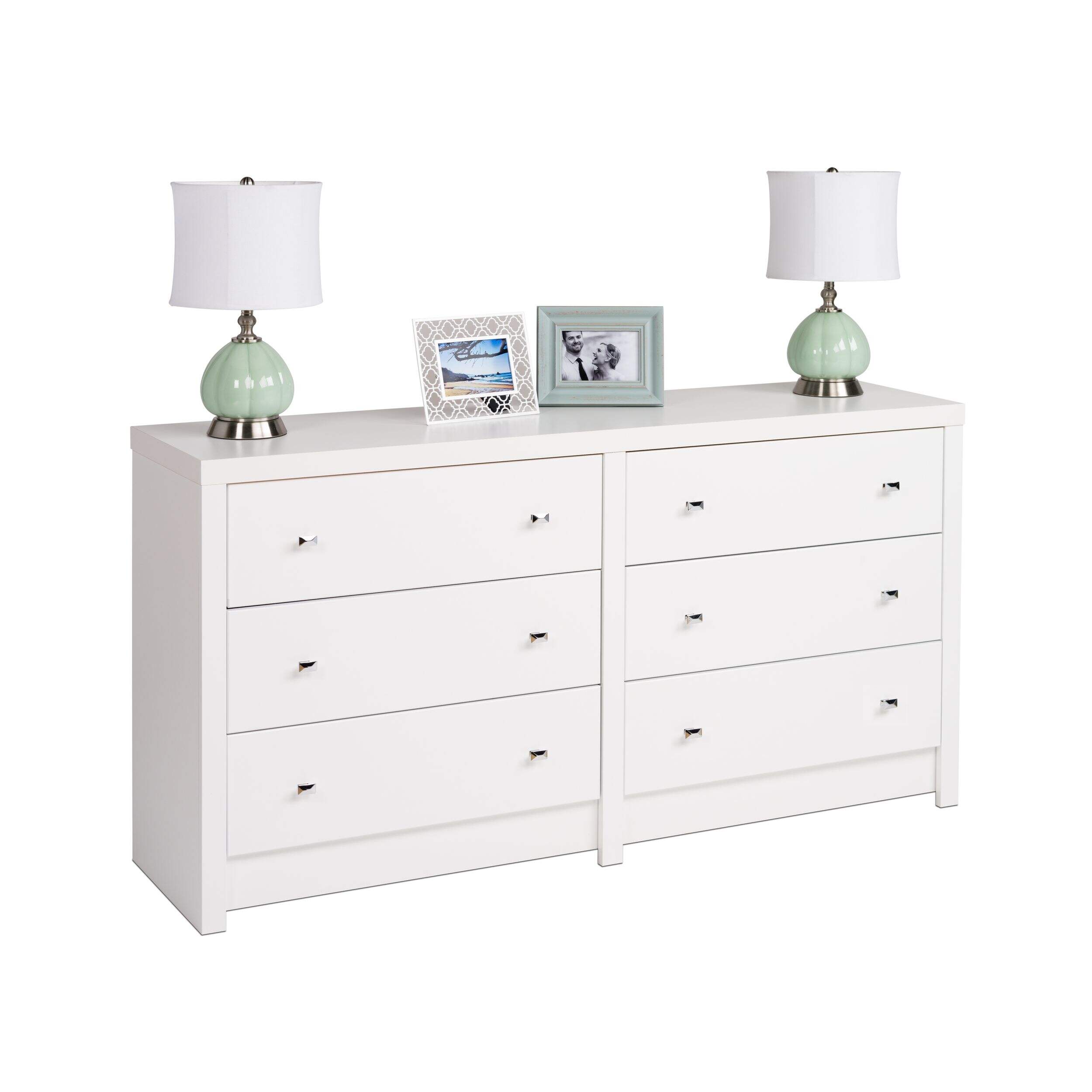 The Prepac 6-Drawer Calla Dresser brings substance and style to any bedroom. Its thick tops and sides provide sophistication, while the chrome drawer pulls offer easy access to six spacious compartments that can store all your clothes. The eye-catching thick top also serves as a display surface for candles, photos and other décor. Pair this dresser with other Prepac Series 9 Collection bedroom pieces for a complete bedroom transformation.