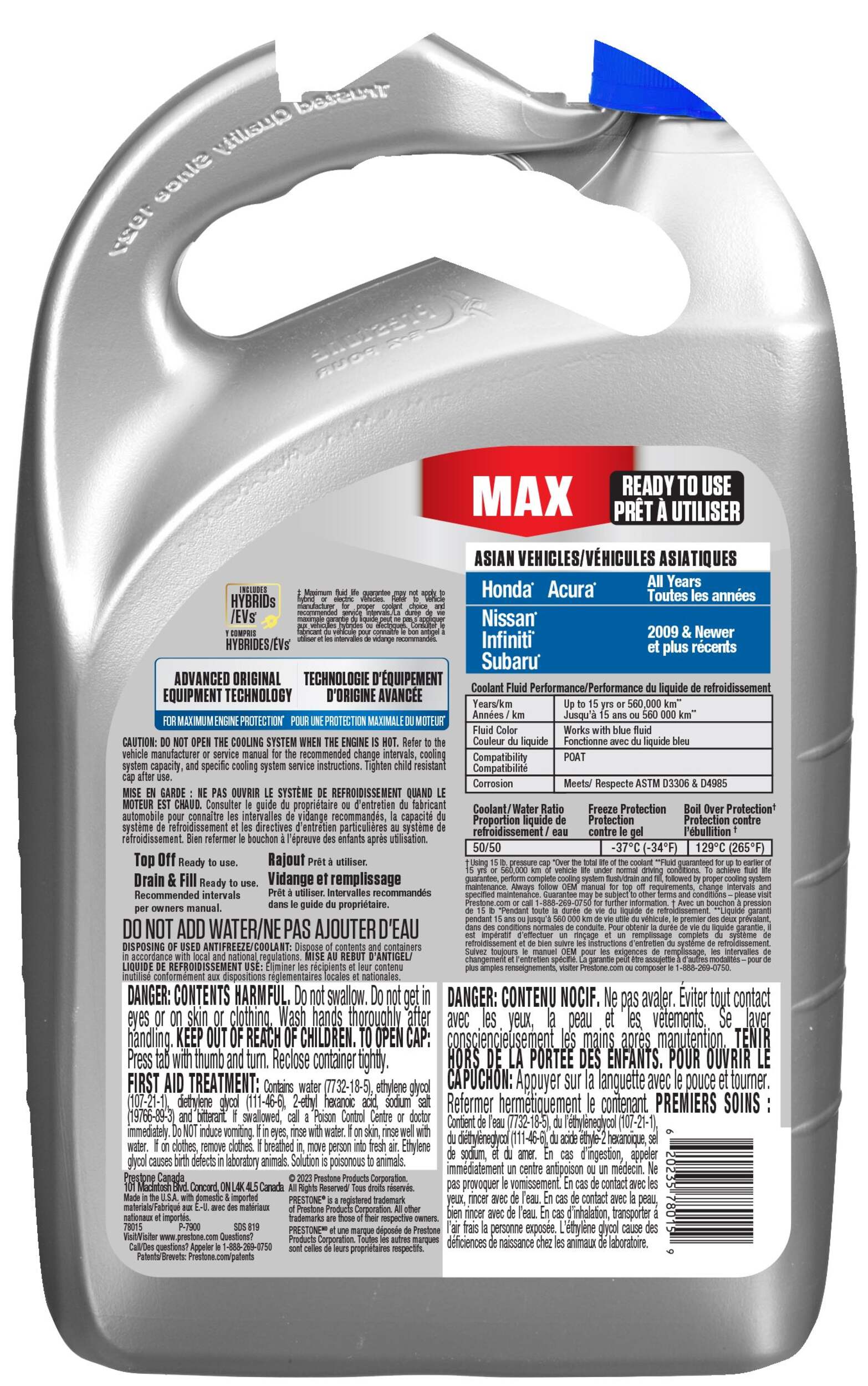 Prestone Max is guaranteed to protect your vehicle for 15+ years and/or 560,000 kilometers- the longest fluid life in the industry