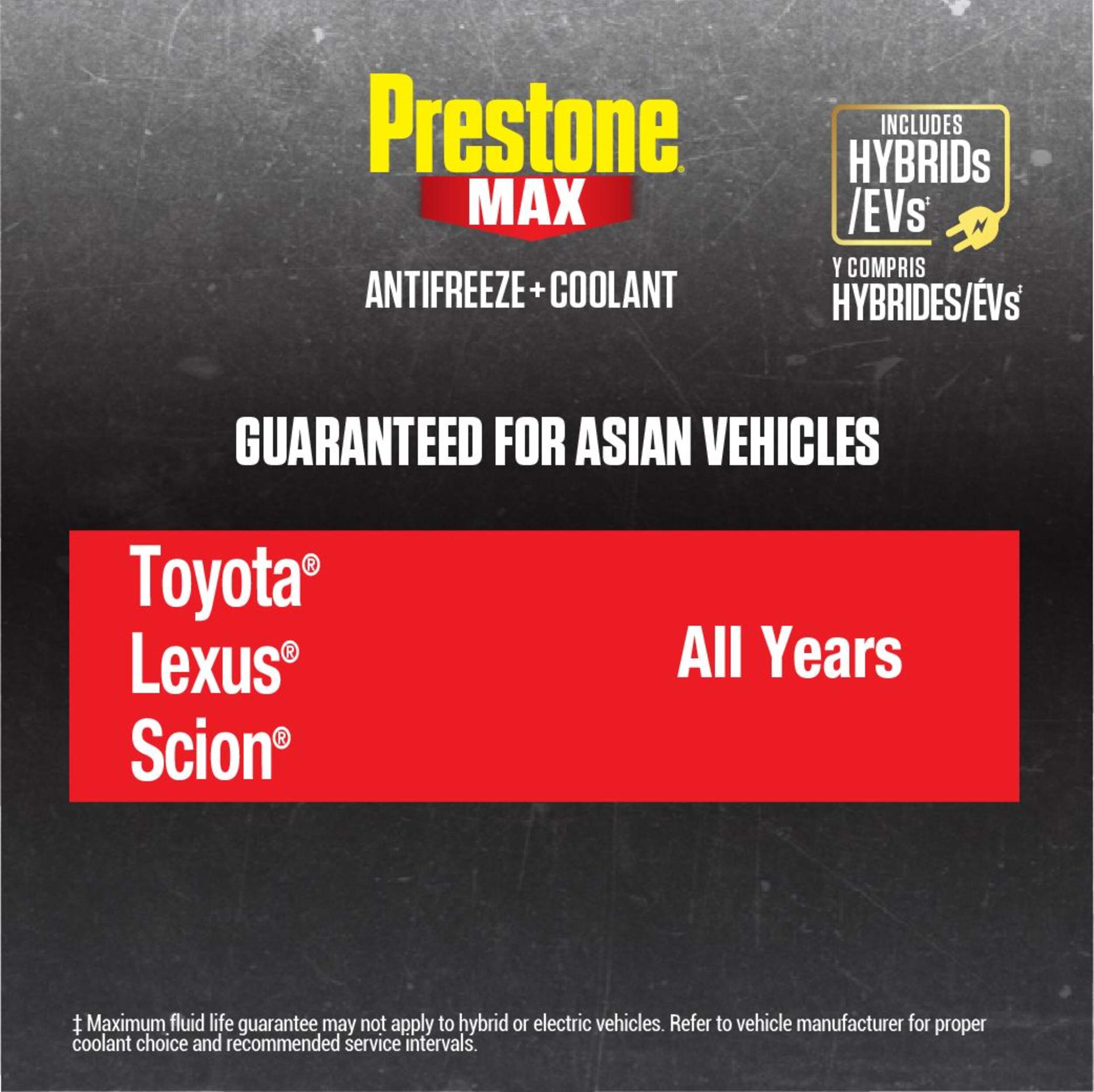 Prestone Max is guaranteed to protect your vehicle for 15+ years and/or 560,000 kilometers- the longest fluid life in the industry