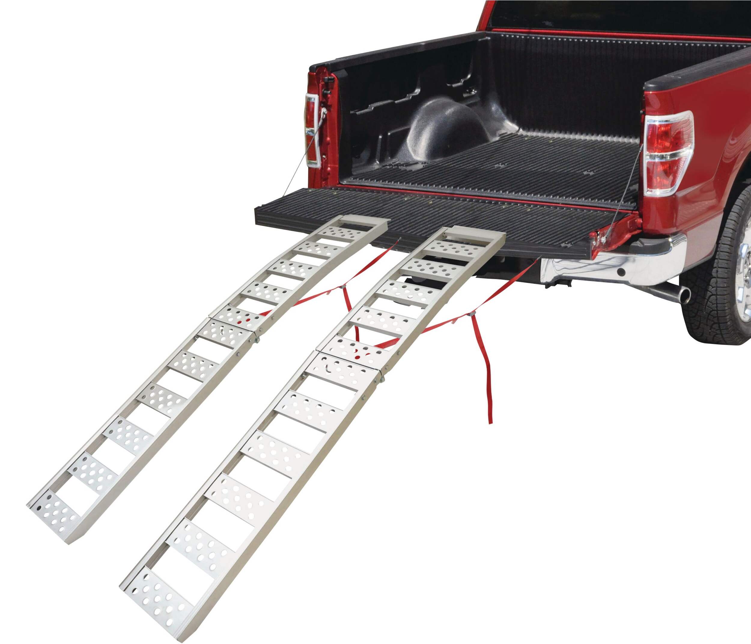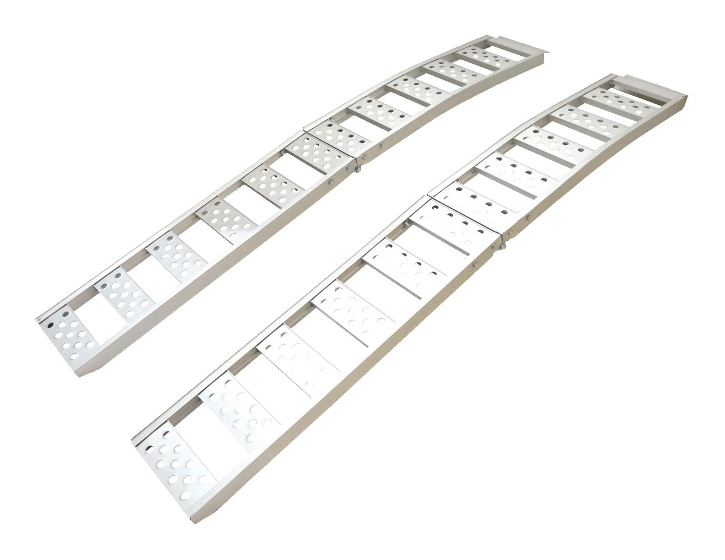 Load and unload your ATV and other equipment quickly and easily with the PRIME1 Aluminum Bi-Folding Arched Loading Ramp with Adjustable Straps. This durable and weather-resistant ramp features an arched design for extra clearance and provides exceptional load capacity and traction to make loading equipment simpler. This handy ramp is a practical addition to any automotive setup, and the folding design allows it to be stored or transported easily.