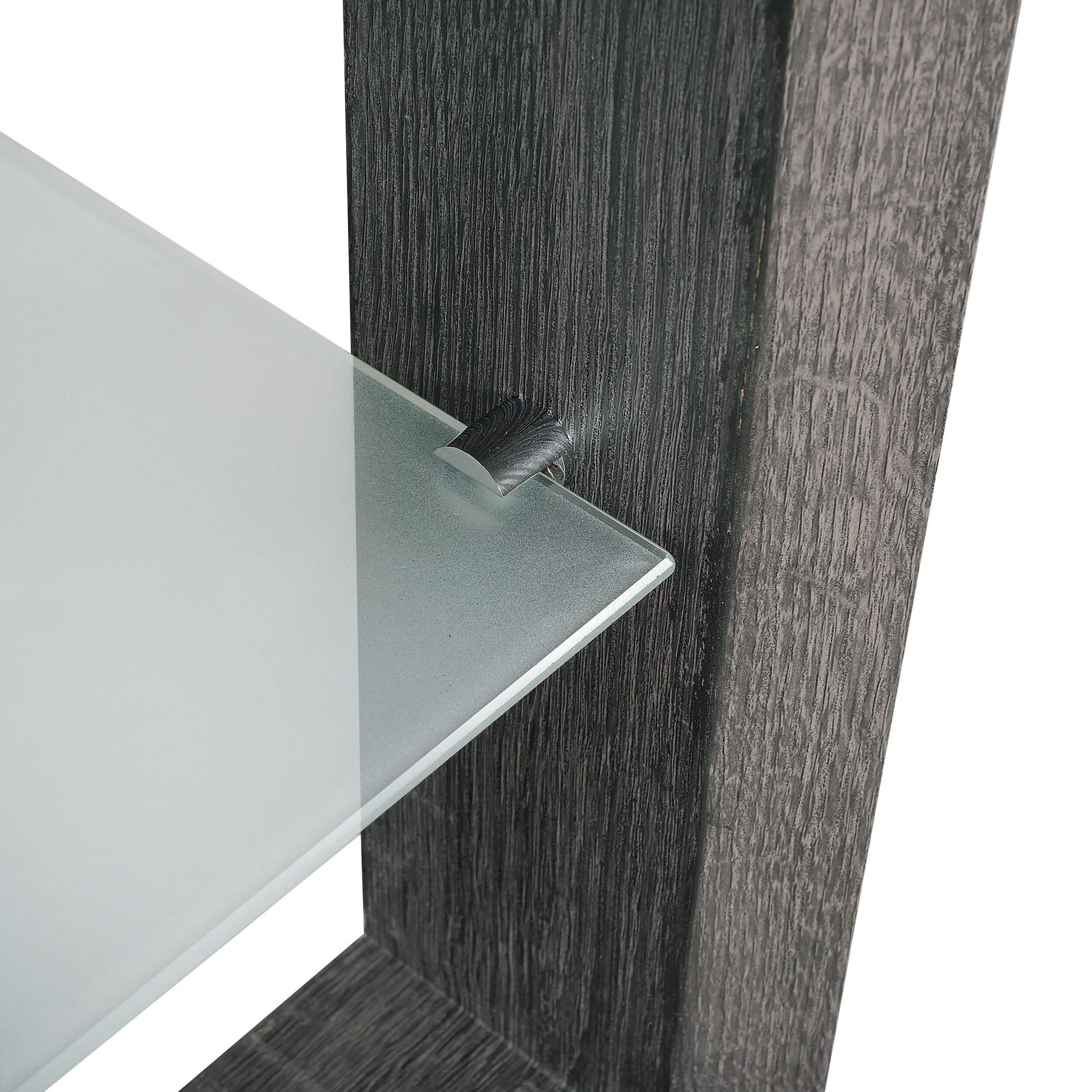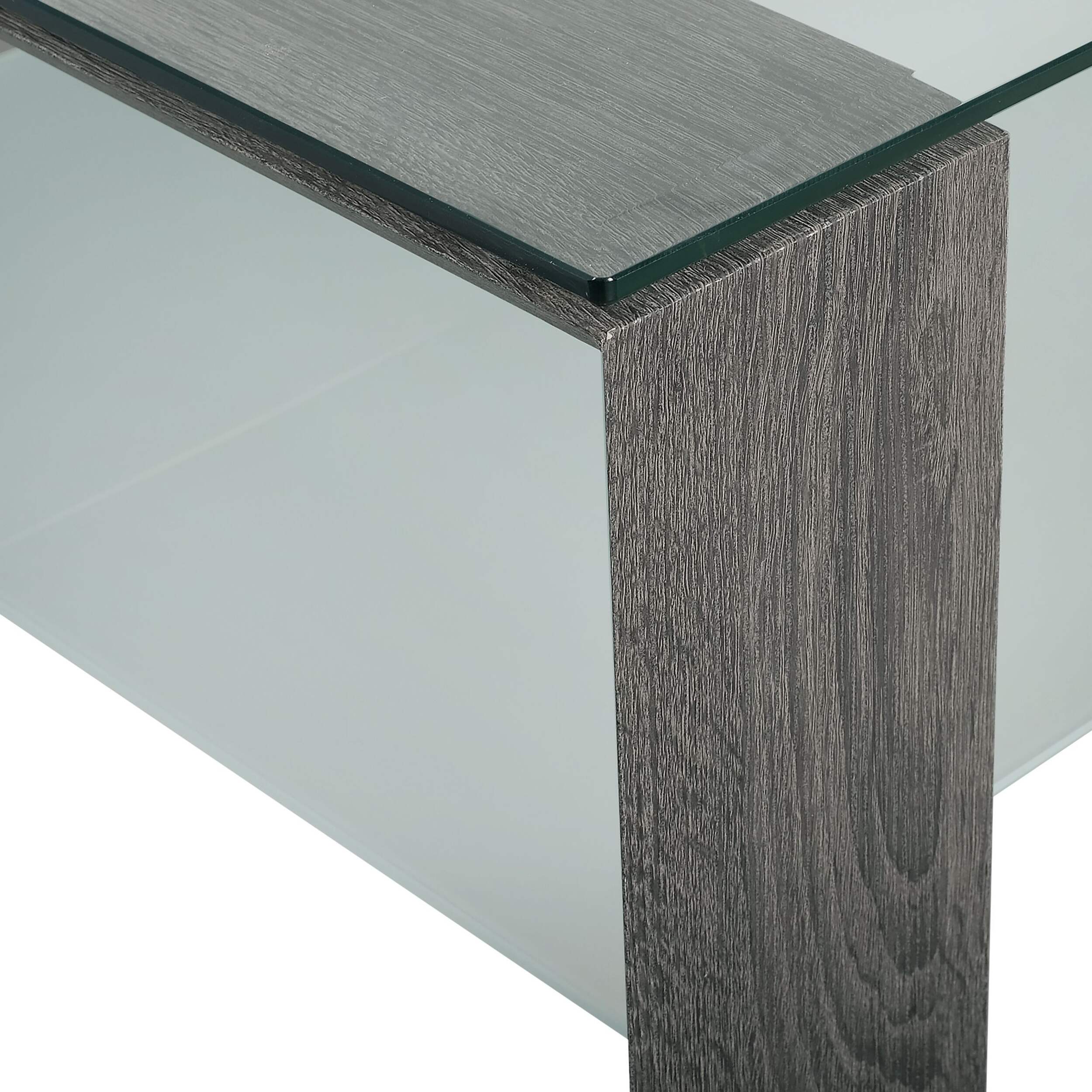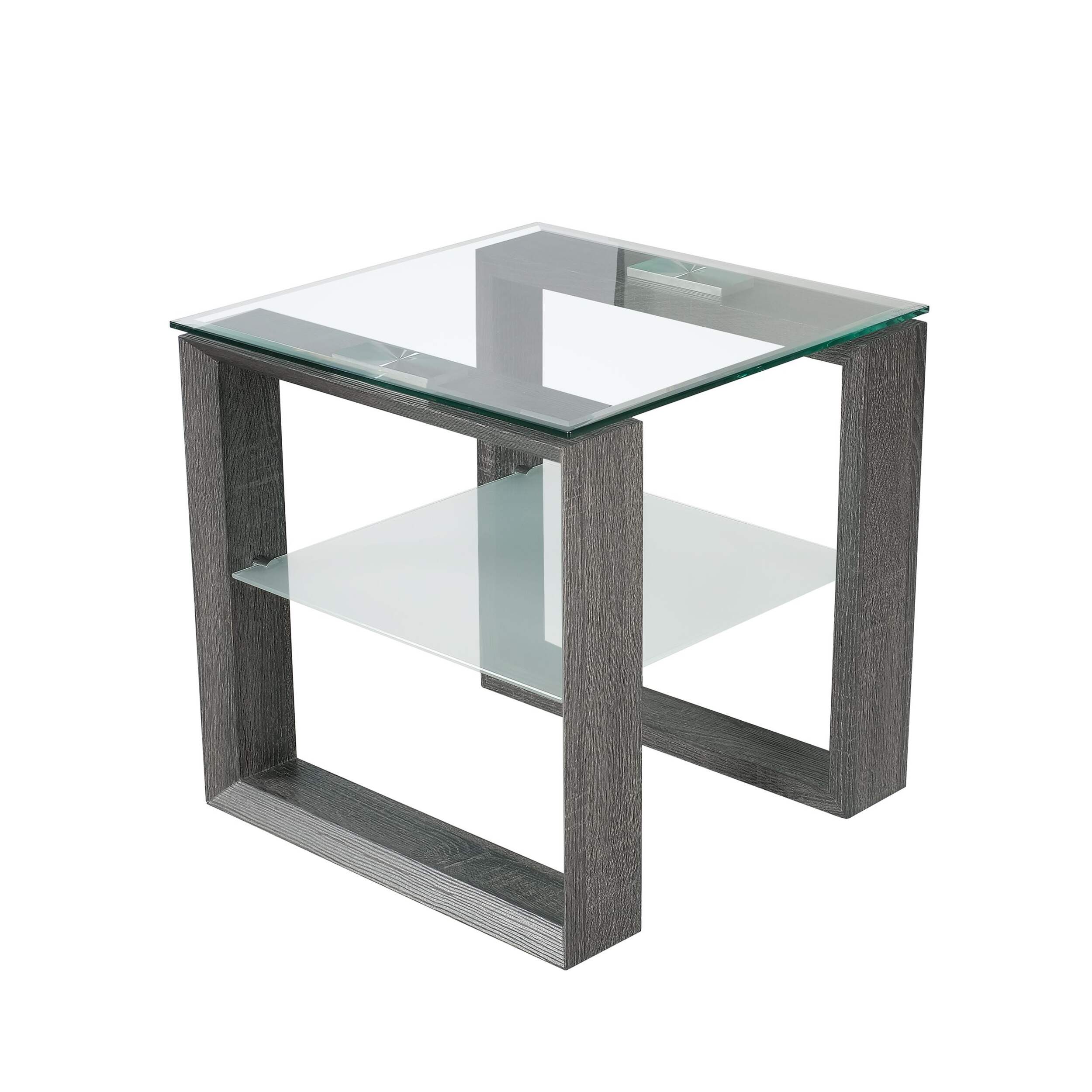 Tired of cluttered coffee tables and a lack of stylish storage? Meet the Primo Caleb Square End Table with Shelf - the perfect blend of modern design and handy functionality. The clear glass tabletop offers a refined perch for drinks or accent pieces, while the frosted lower shelf keeps remotes, magazines and essentials neatly stashed yet easily accessible. Crisp grey oak finished legs culminate in a square, contemporary silhouette that complements any living or dining space. No more bulky side tables - Caleb's streamlined profile brings an elegant storage solution and decor accent to your home in one sophisticated package.