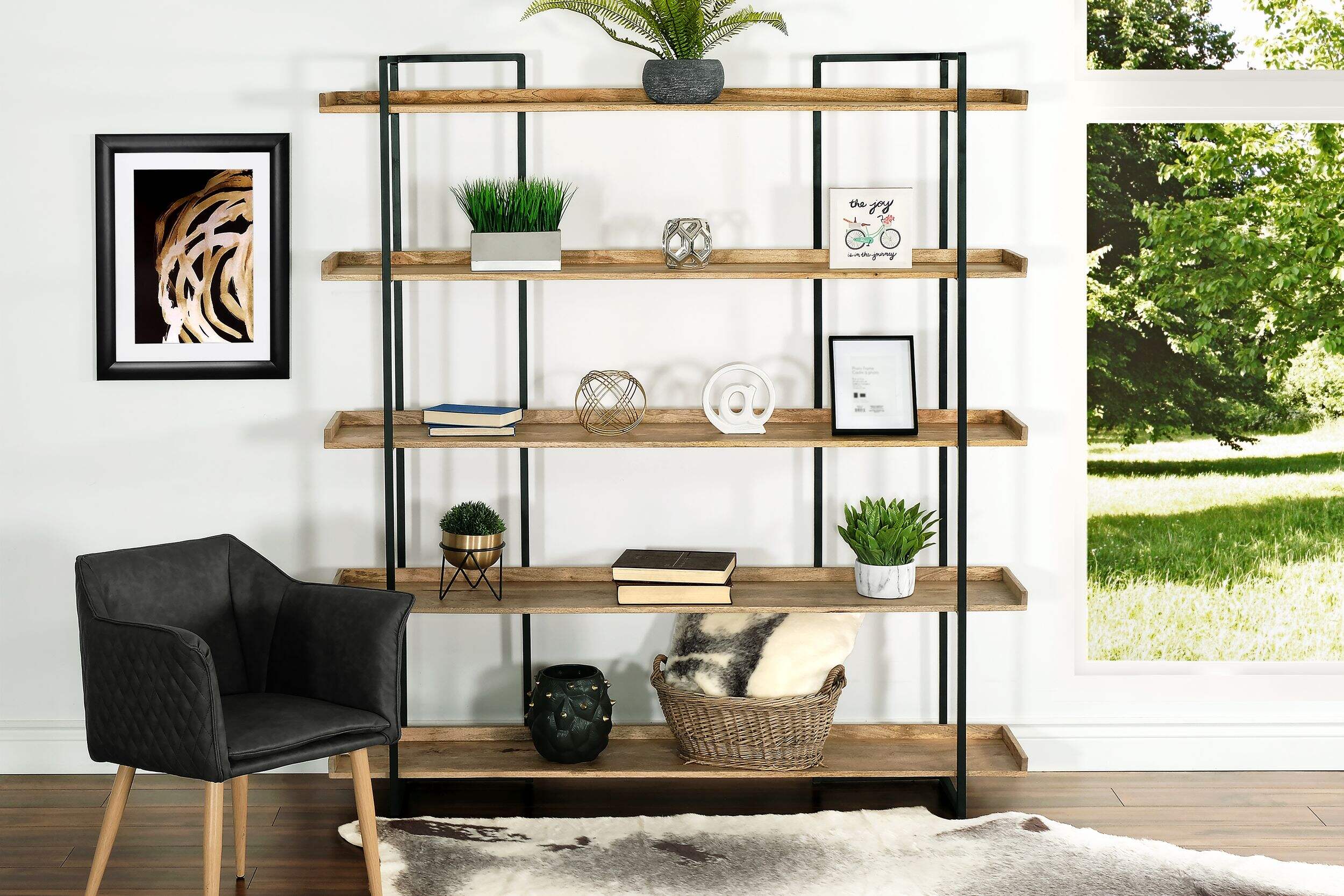 The Primo Victoria bookshelf brings modern style and versatility to any room. Crafted from reclaimed mango wood and sturdy iron, it features scratch resistant shelves that can hold a surprising amount of weight, ideal for displaying your favourite book series, journals and collectibles. Easy to assemble and compactly packaged for worry-free shipping, this versatile shelf unit adds contemporary flair to your office, living room or bedroom, without overpowering the existing decor.