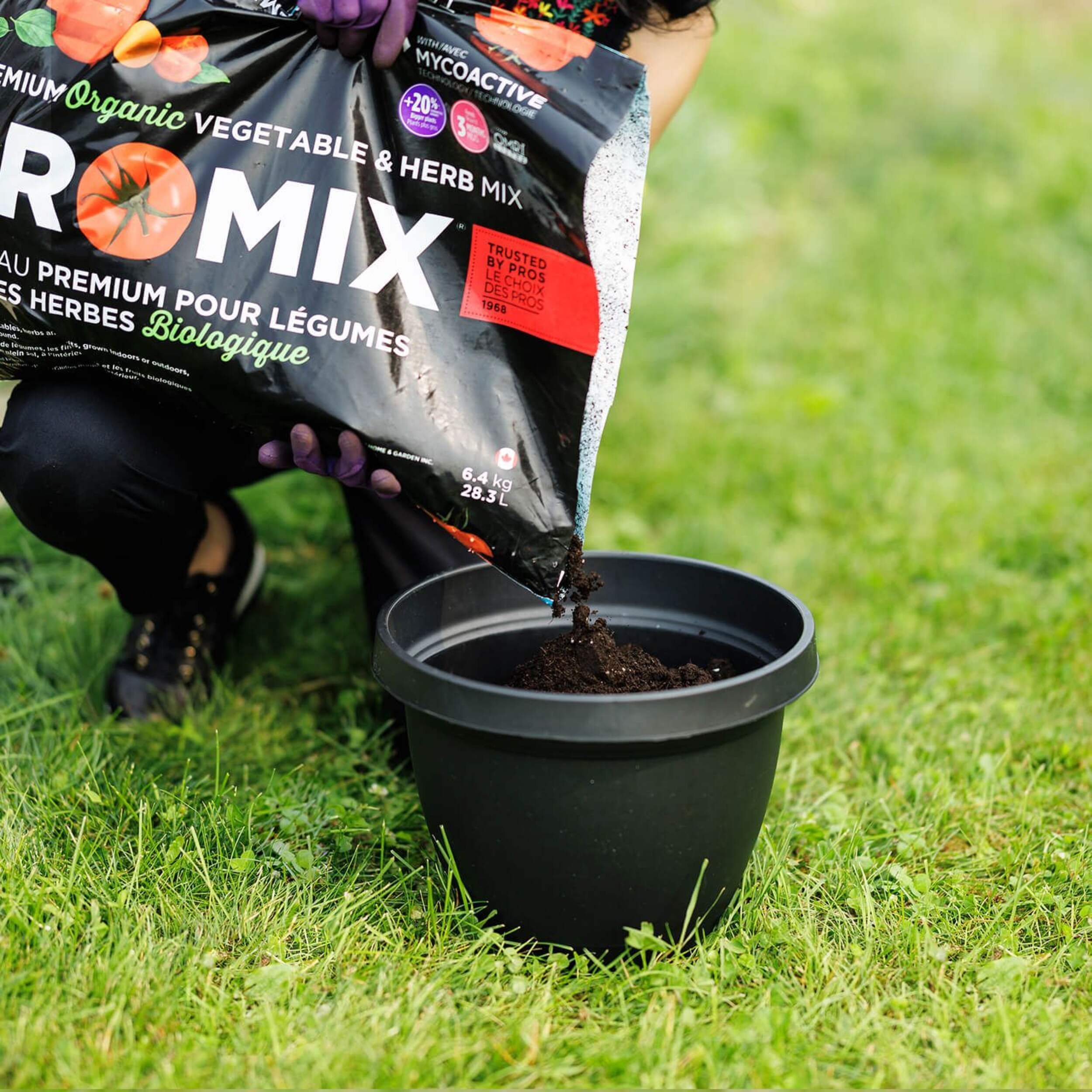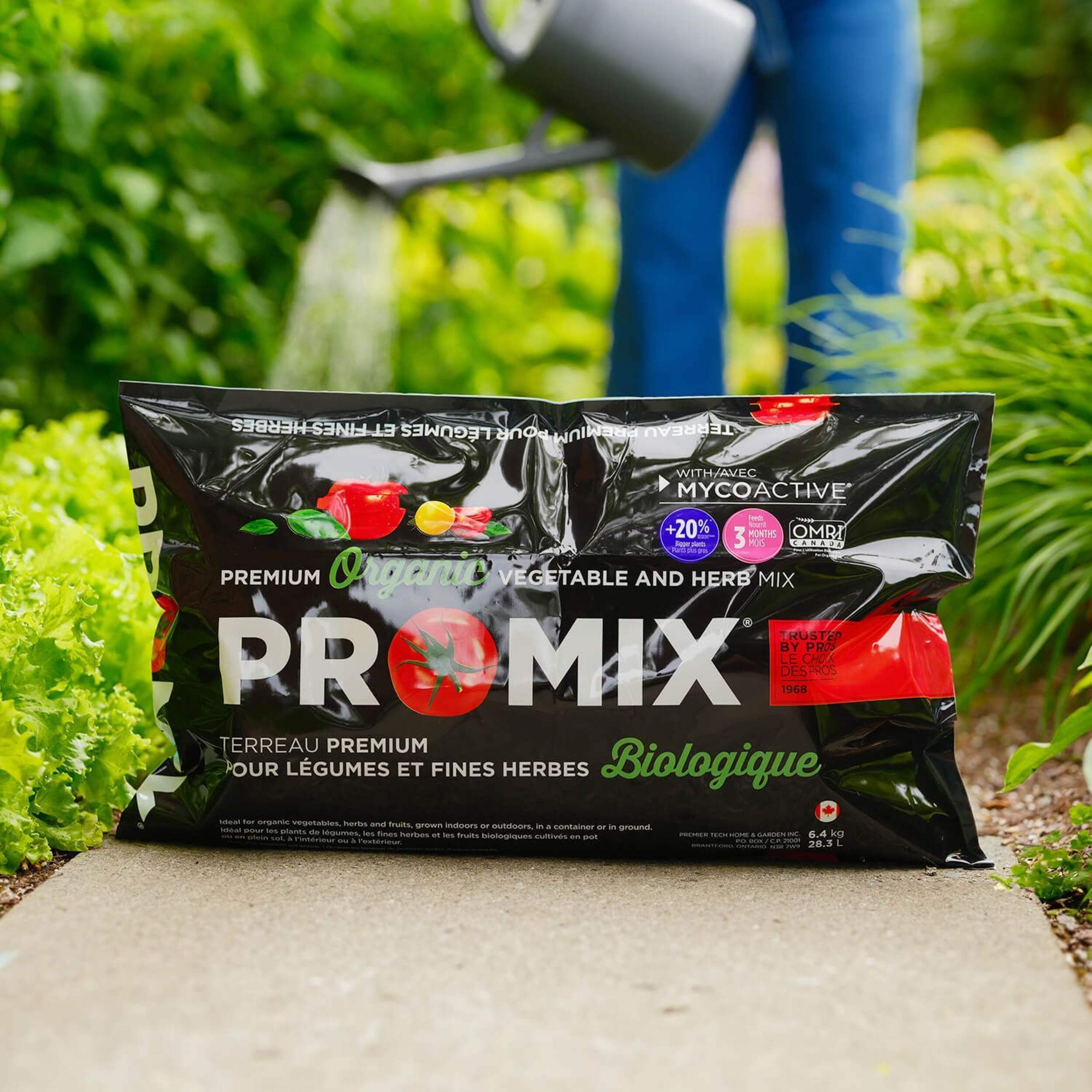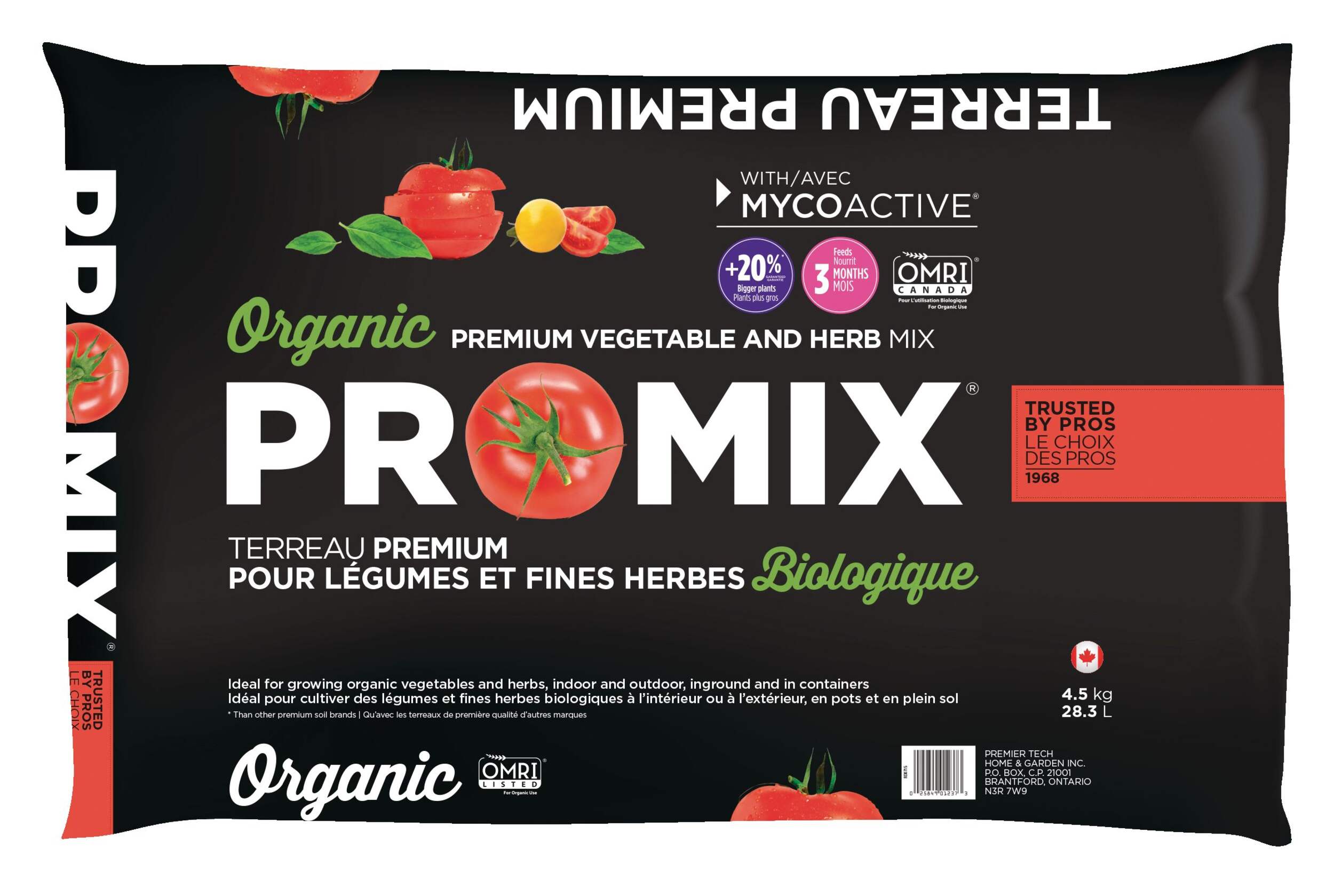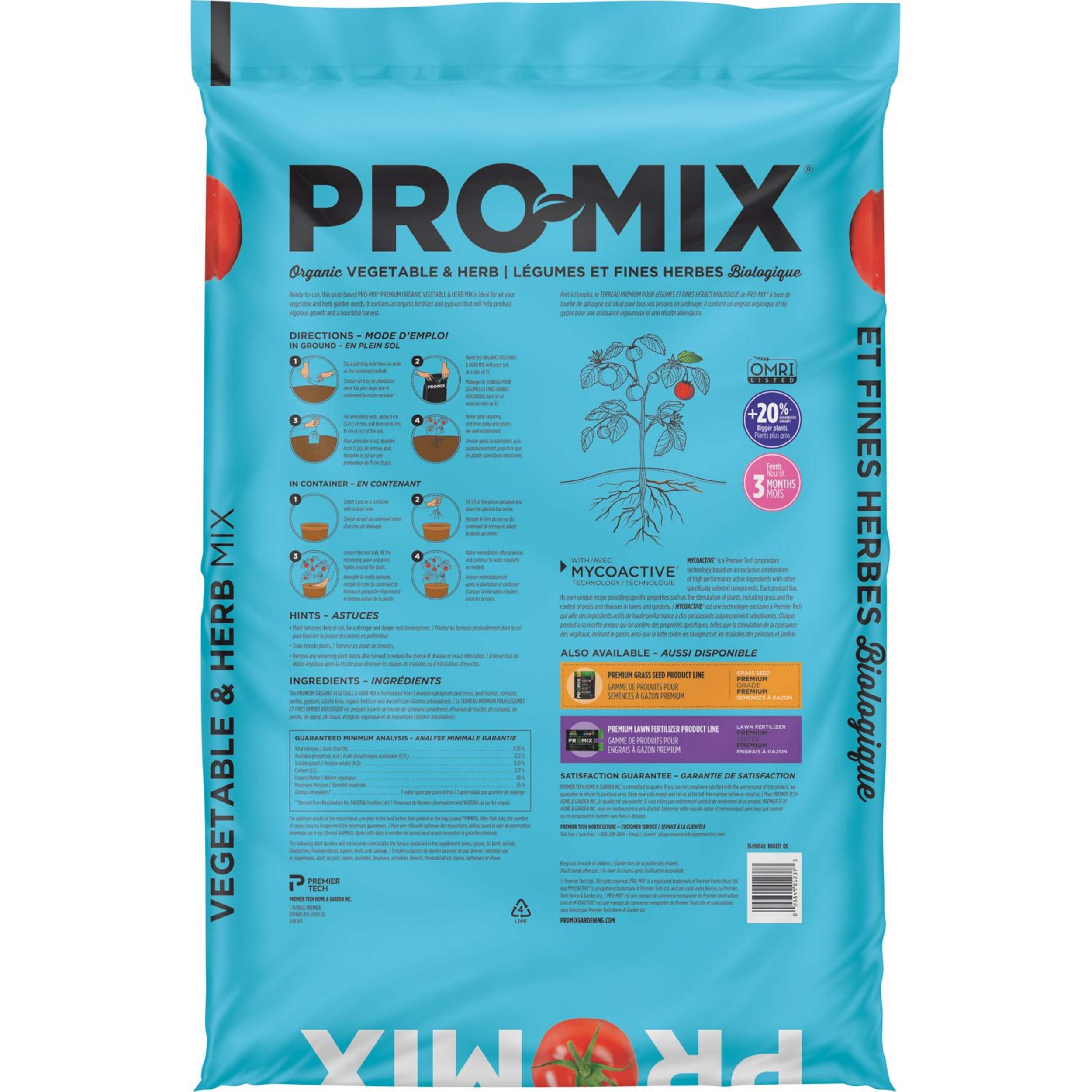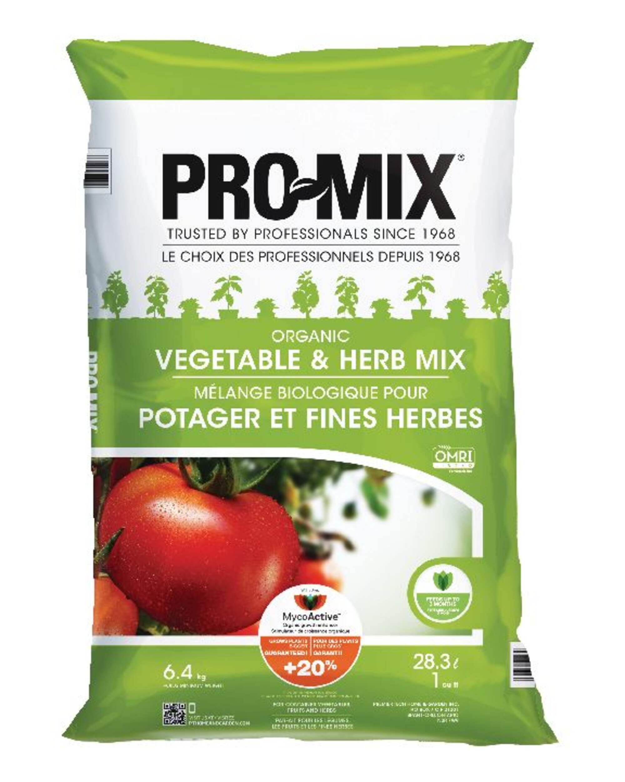 The PRO-MIX® Premium Organic Vegetable & Herb Soil Mix is a peat-based, ready-to-use product tailored for vegetable, fruit, and herb gardening. OMRI-listed for organic gardening in containers or directly in the ground. Its MYCOACTIVE® technology promotes vigorous growth, greater stress resistance, larger root systems, and better water and nutrient uptake - resulting in bigger, healthier plants. An organic fertilizer gradually feeds plants for up to 3 months. This Canadian product offers an enriched growing experience, ensuring lush and bountiful vegetable, fruit, and herb crops.