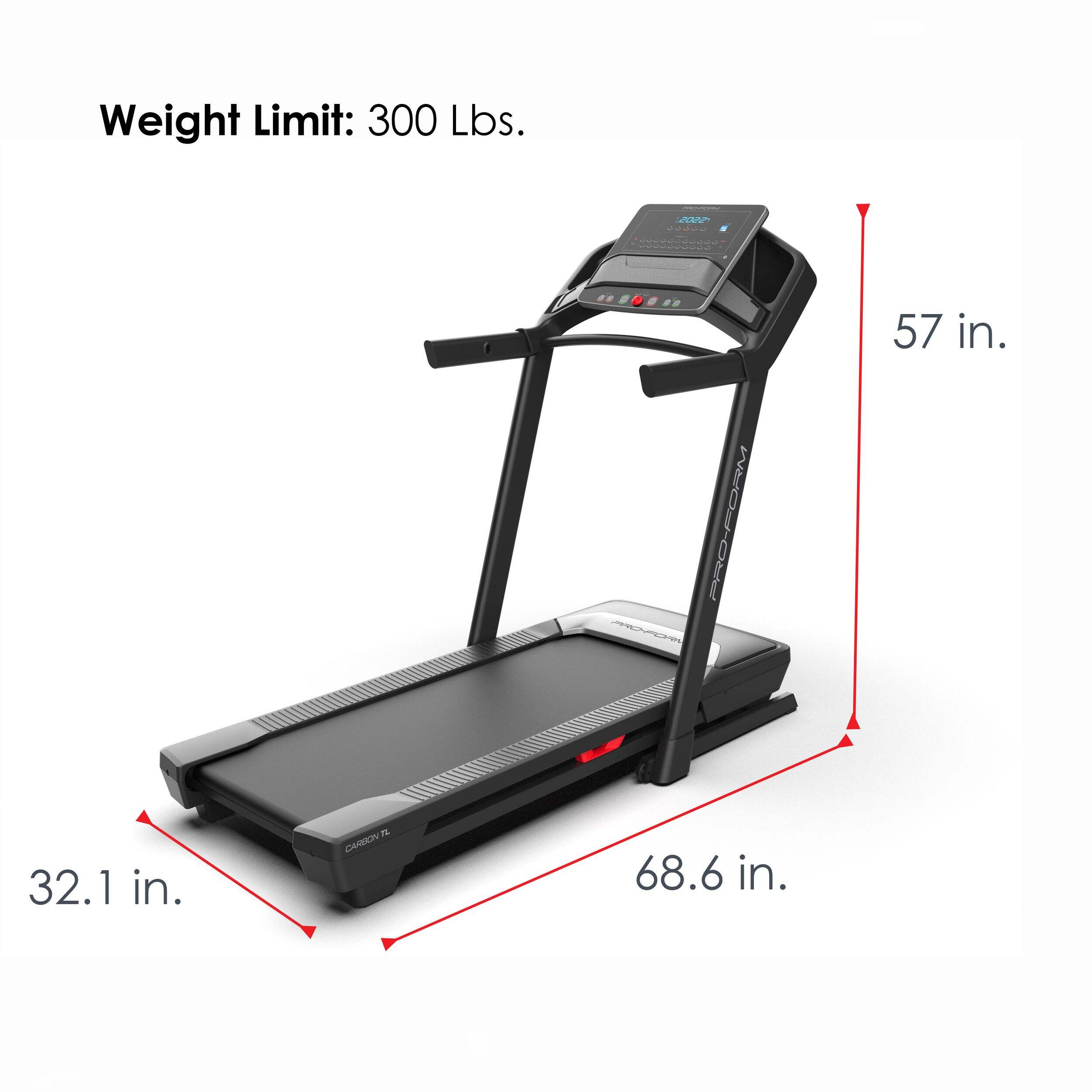 The ProForm Carbon TL Treadmill makes it possible to walk, jog, run, and hike around the world from the comfort of your home. With an iFIT subscription (sold seperately), just connect your own smartphone or tablet with Bluetooth® to follow expert iFIT Trainers through thousands of outdoor workouts spanning the most beautiful locations across all seven continents. iFIT's intelligent fitness technology can control your treadmill to deliver workouts that are personalized to you, no matter where you are in your fitness journey. SmartAdjust™ can automatically change your 0% to 10% incline and your 0-10 MPH speed based on your workout history and performance for a hands-free, immersive experience. Connect a heart rate monitor using Bluetooth® and turn on iFIT’s ActivePulse™ feature so that the automatic treadmill adjustments change based on your target heart rate zone. The built-in 5” high contrast display will show live stats, including speed, incline, distance, and estimated calories. Whether you prefer using your own Bluetooth® headphones or using the treadmill’s two 2” speakers, you’ll be able to listen to music and your trainer at the same time. Once your workout is over, you can fold the treadmill easily by lifting the treadmill belt up and locking it in place with the pull pin. *iFIT experience shown. Internet and Wi-Fi required. iFIT Membership auto-renews for $39 USD/mo plus tax unless canceled in advance. Cancel at any time.