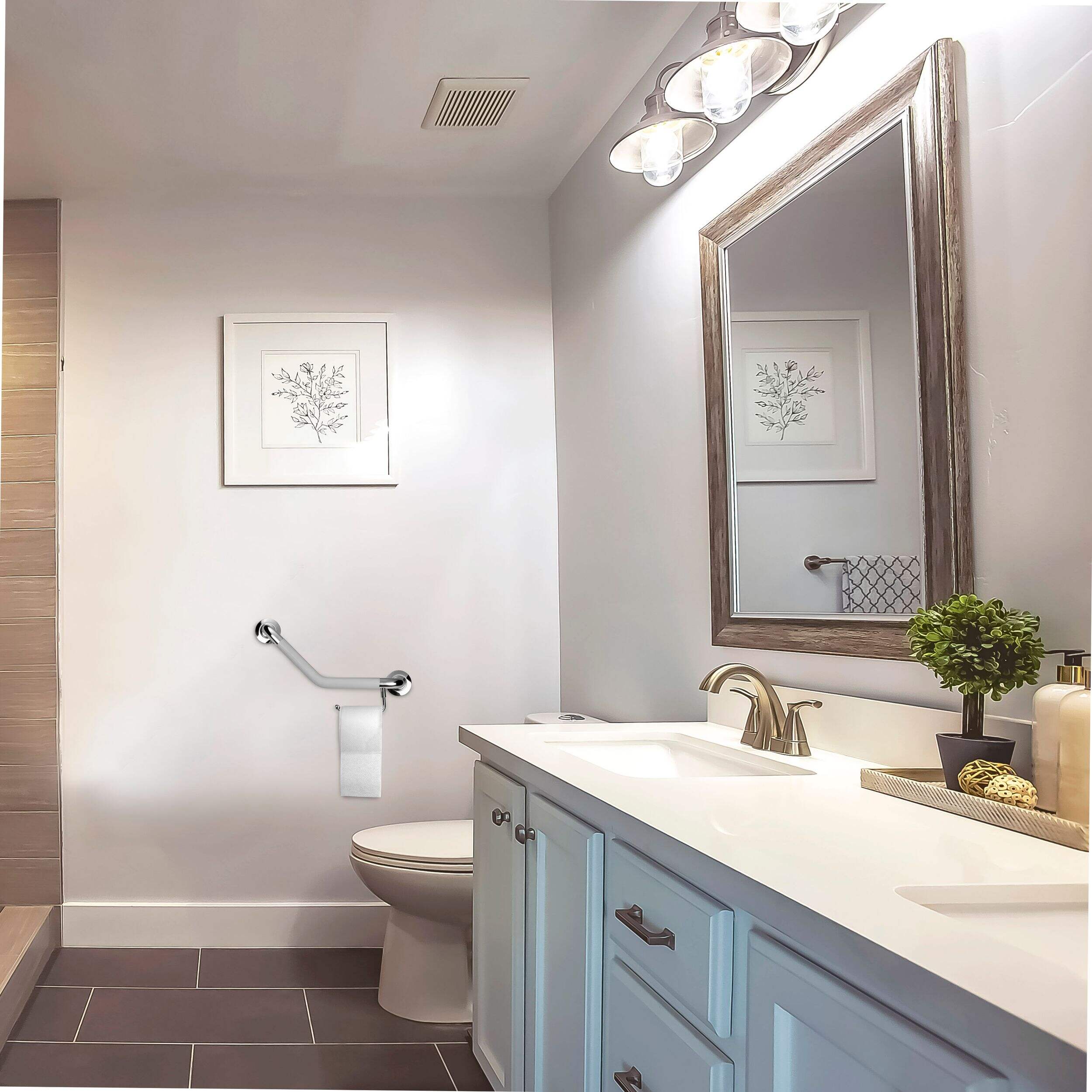 The optional toilet paper holder included can be connected in one of two locations on the bar, creating a customizable user experience