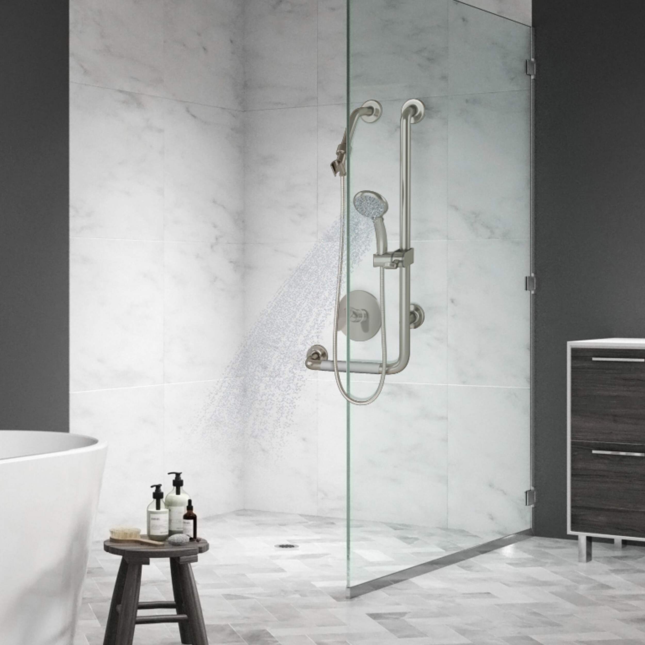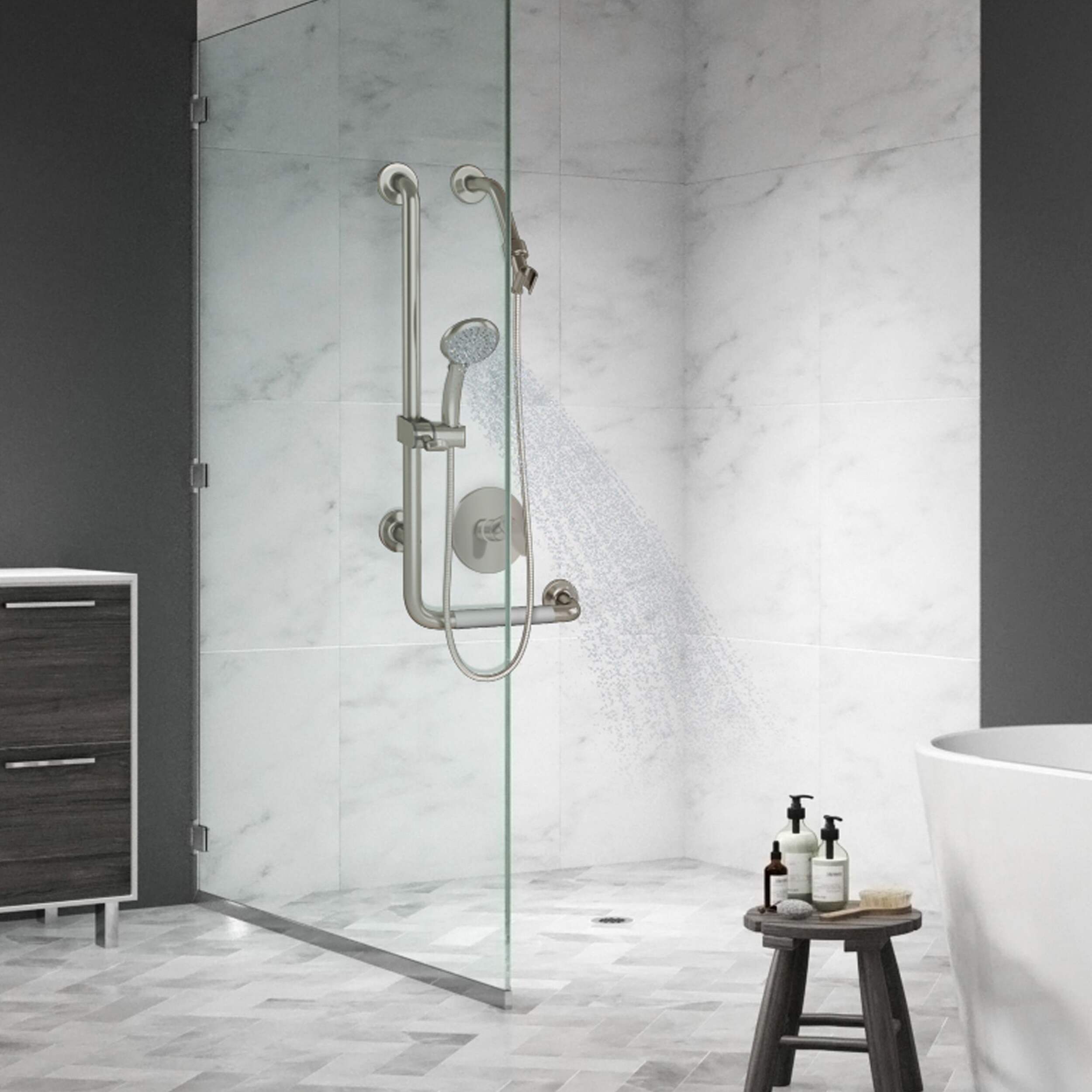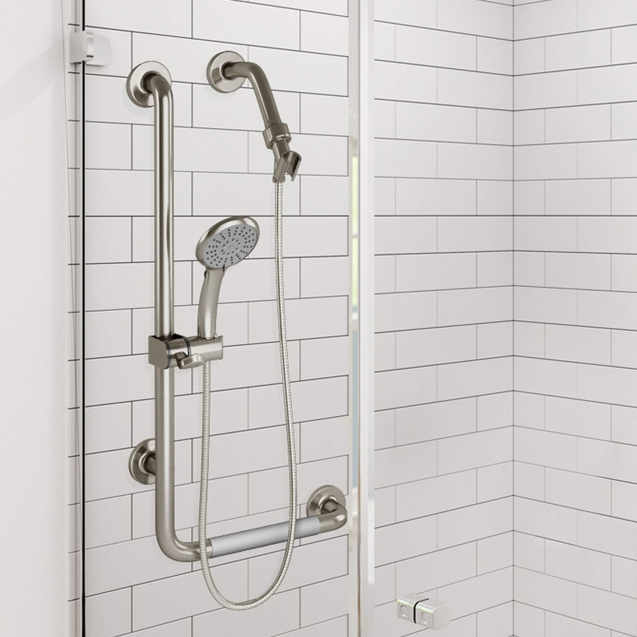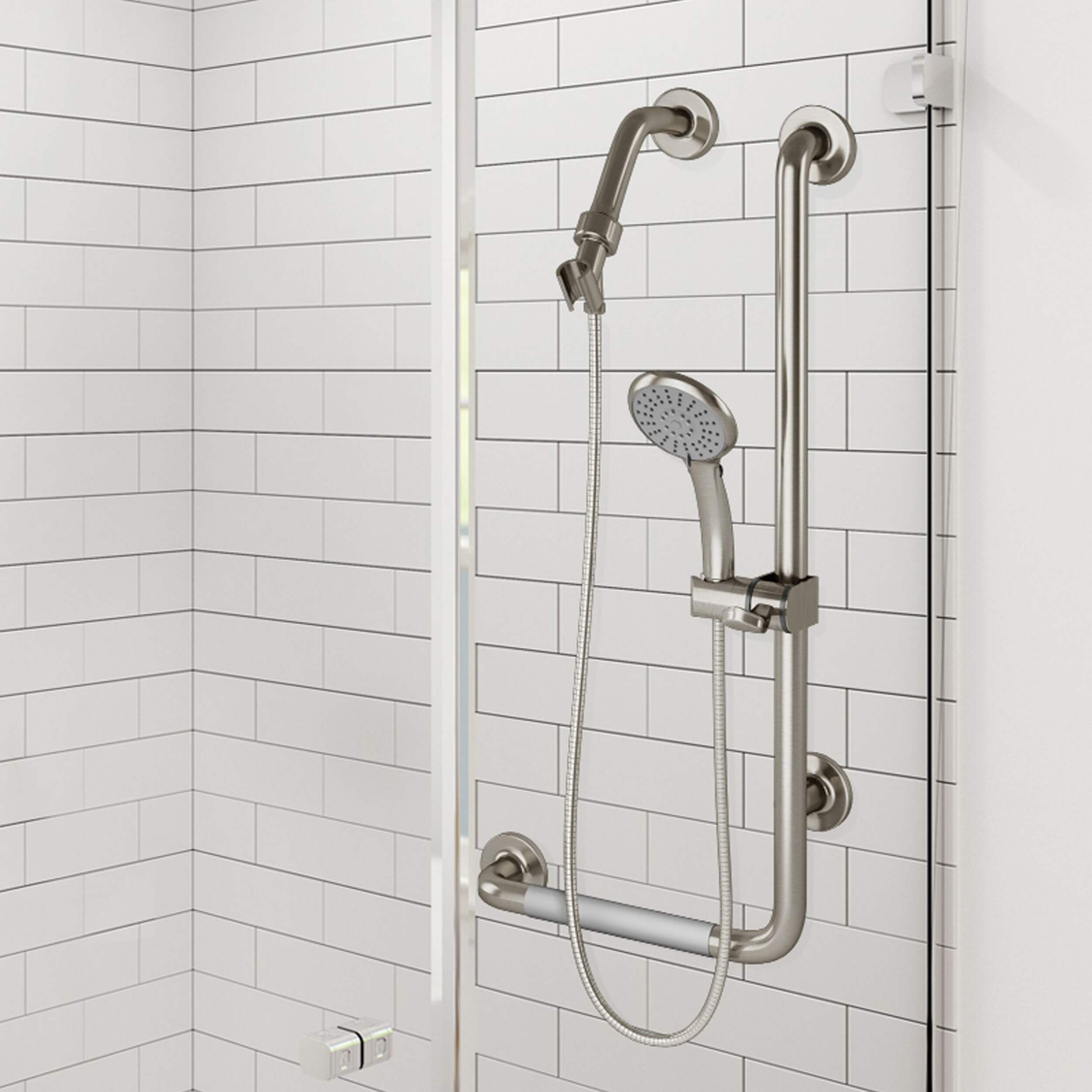 Experience the ultimate convenience with the PULSE ErgoSlide Bar with Hand Shower, designed for adjustable comfort and flexibility in your showering routine. Using its innovative ErgoGrip slider adjustment, you can easily customize the height to suit your needs. The set comes complete with mounting hardware for effortless installation. With dimensions of 32 × 15 × 4-in, this sleek, functional addition enhances your bathing experience while promoting accessibility and ease of use.