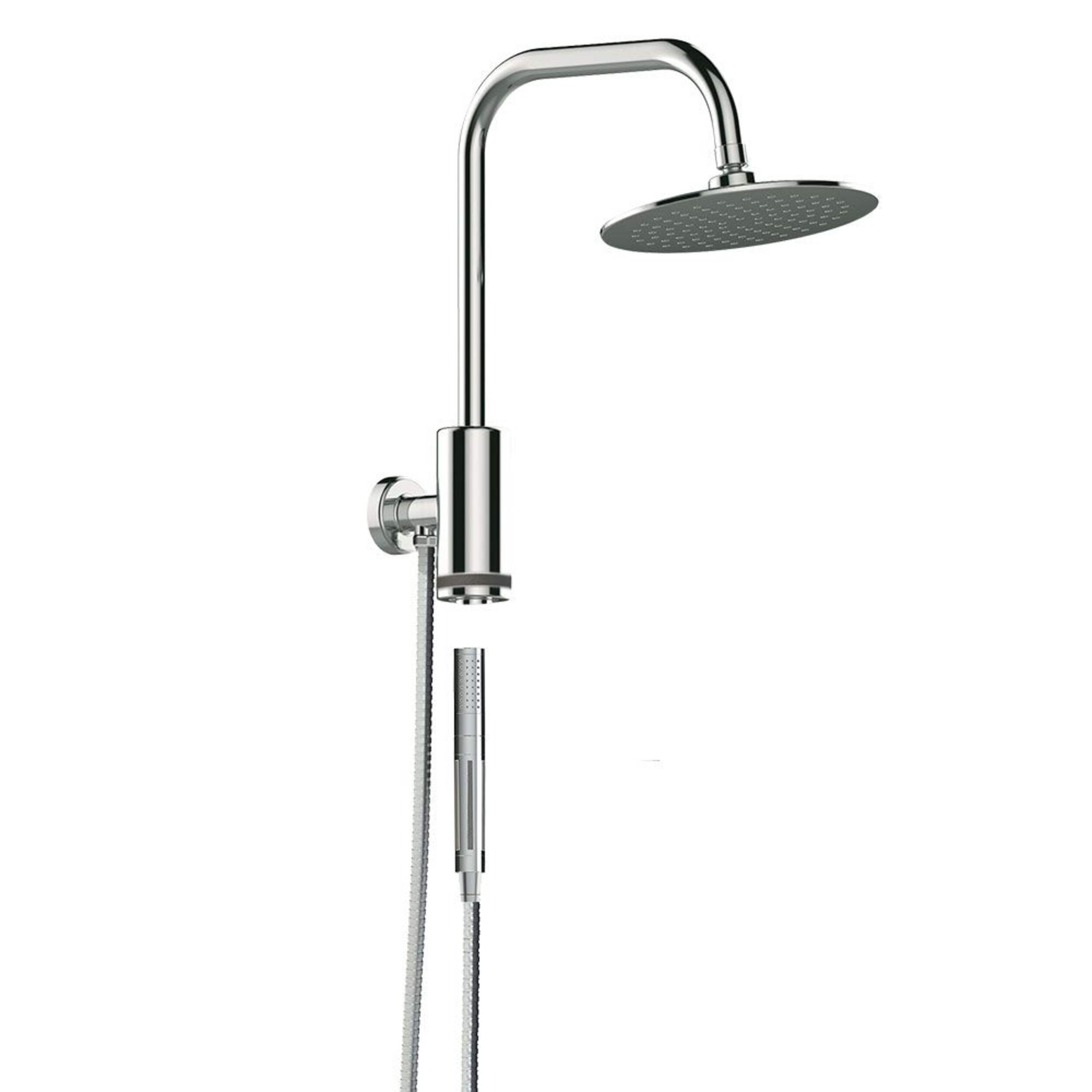 This shower system replaces your old shower head with an 8 inch showerhead and handheld. The handheld has an on/off position and conveniently attaches to its holder with a magnetic technology. This shower utilizes your existing valve and has a diverter to easily switch the showerhead from the on to off position.