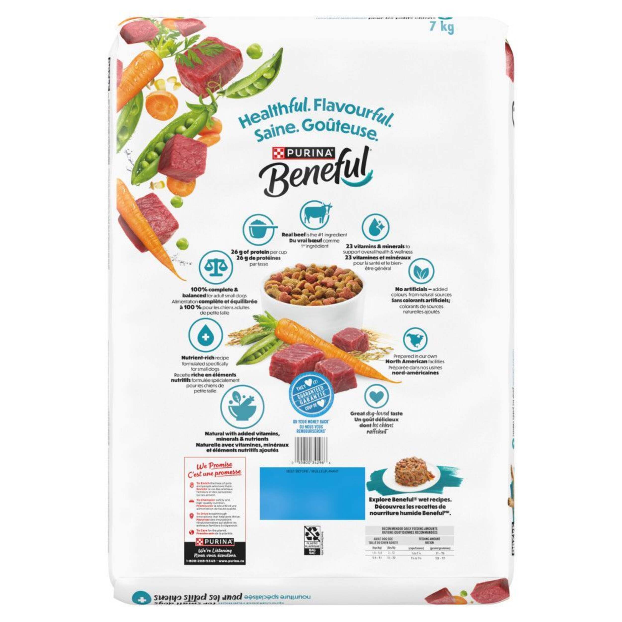 Purina Beneful® IncrediBites® for Small Dogs Beef Adult Dry Dog Food provides a flavourful, naturally delicious recipe that your small dog will love. Made with real ingredients, this 7kg bag offers a mouthwatering beef flavour that is sure to satisfy your furry friend's cravings. Perfect for adult small dogs, Purina Beneful® IncrediBites® is a wholesome and tasty option to keep your canine companion happy and healthy.
