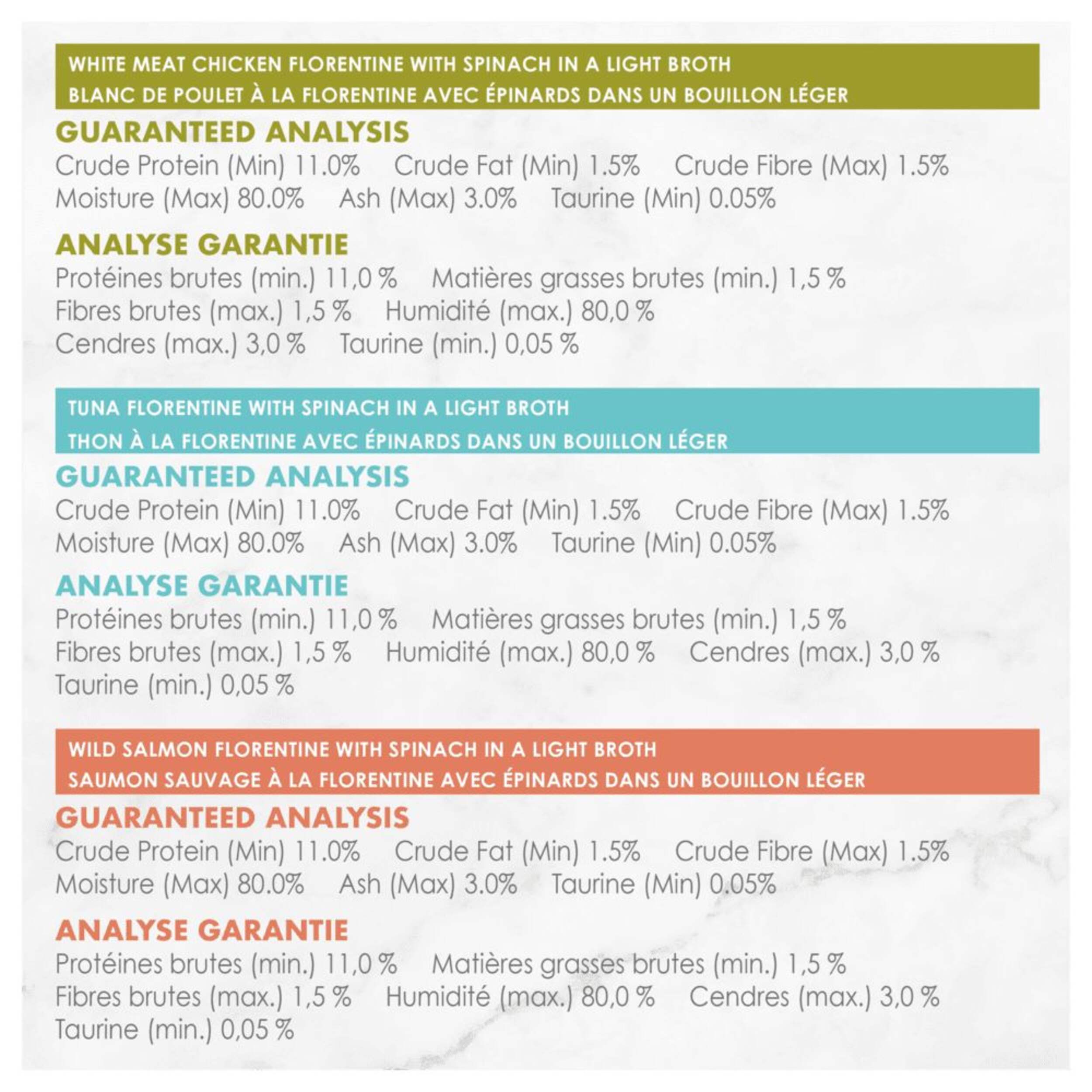 Fancy Feast Medleys™ Florentine Collection Variety Pack includes gourmet cat food recipes using exceptional ingredients to create delicious combinations inspired by dishes throughout the world. Fancy Feast Medleys canned cat food has essential vitamins and minerals to support your cat’s health and wellness. Watch your cat scamper toward the sound of the can opening whenever you serve this high-quality cat food!