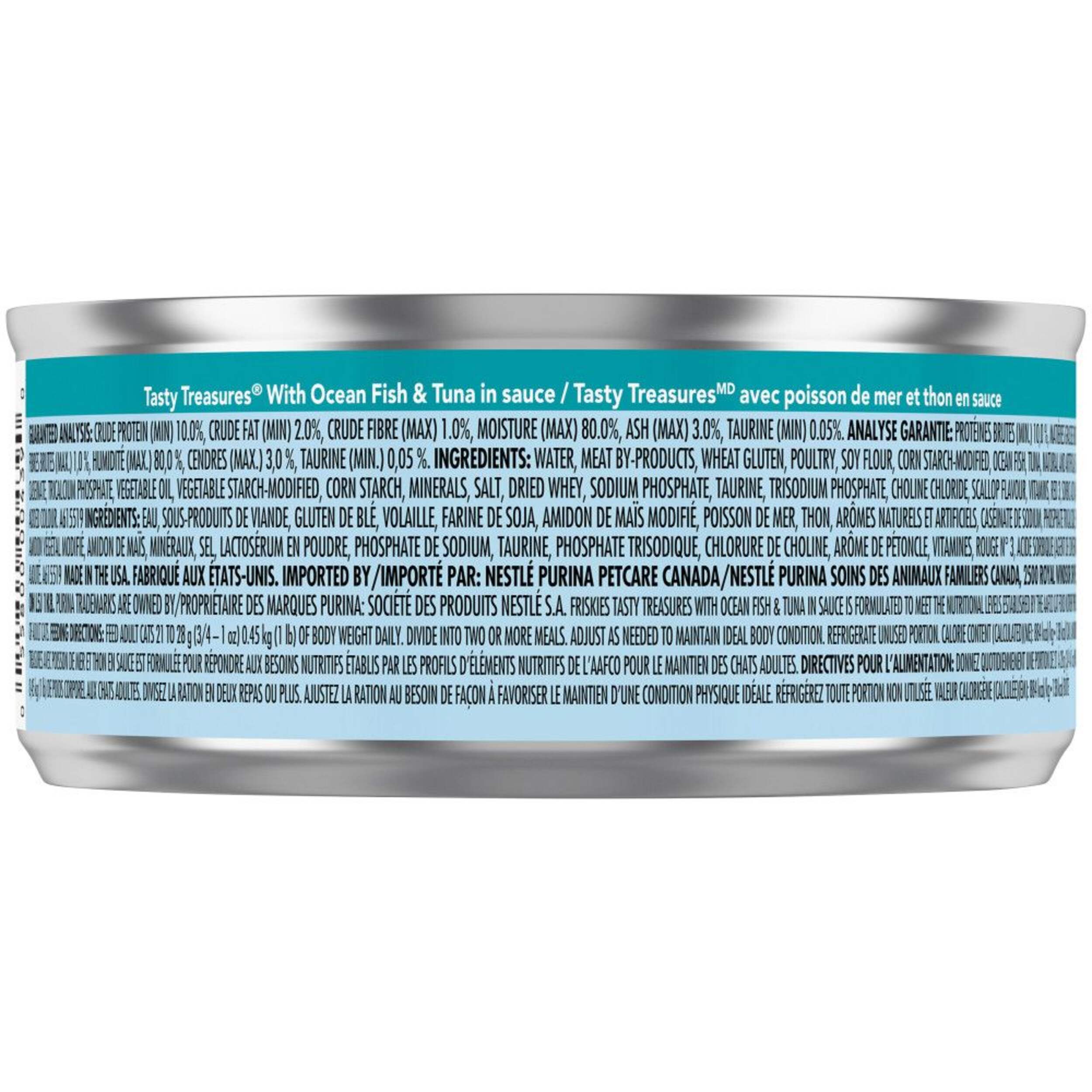 Purina Friskies® Tasty Treasure Ocean Fish Wet Cat Food features shredded chunks made with real ocean fish and delicious tuna, all served in a savory gravy. To make it even more tempting for your cat, this formula includes the extraordinary flavour of scallop.