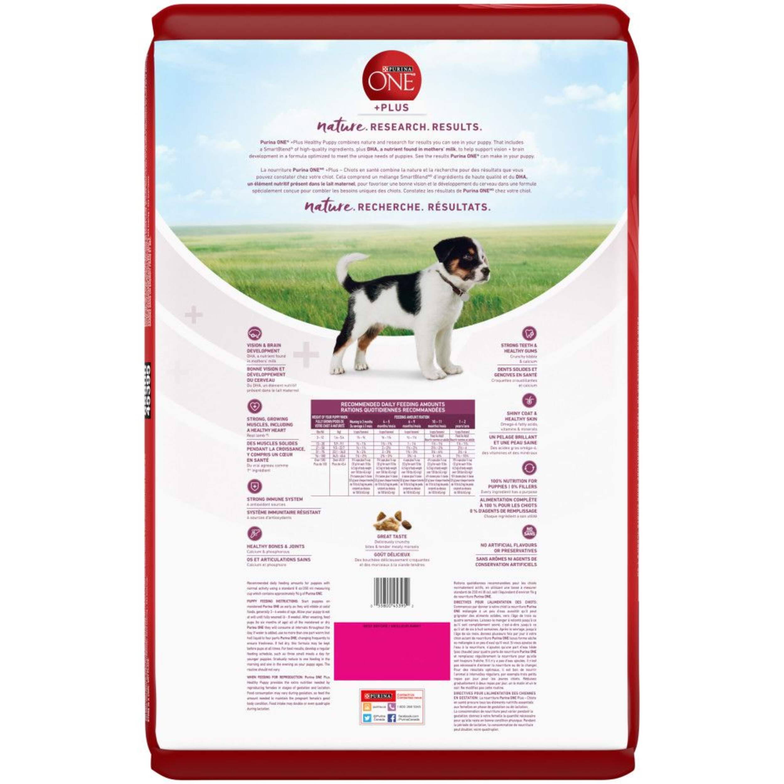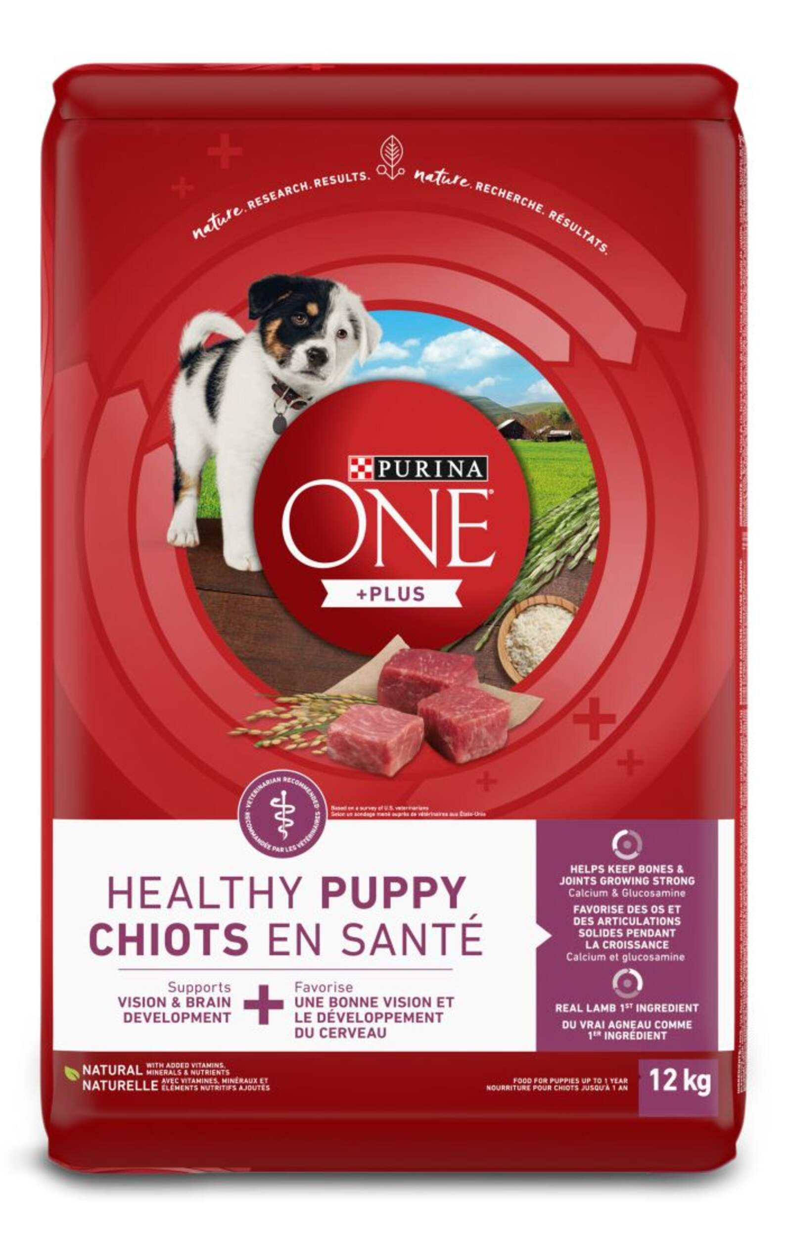 Purina ONE Healthy Puppy Formula Dry Dog Food is a nutrient-rich blend specifically tailored for puppies' growth. The 12-kg bag contains real lamb, rice, and oatmeal, providing a balanced diet. It includes DHA, a nutrient found in mother's milk, vital for vision and brain development. The formula supports strong bone and joint growth with calcium and glucosamine. Packed with a dual defense antioxidant blend of vitamins E and A, zinc, and selenium, this food ensures a complete diet for your puppy. This product is sure to cater to your puppy's dietary needs.