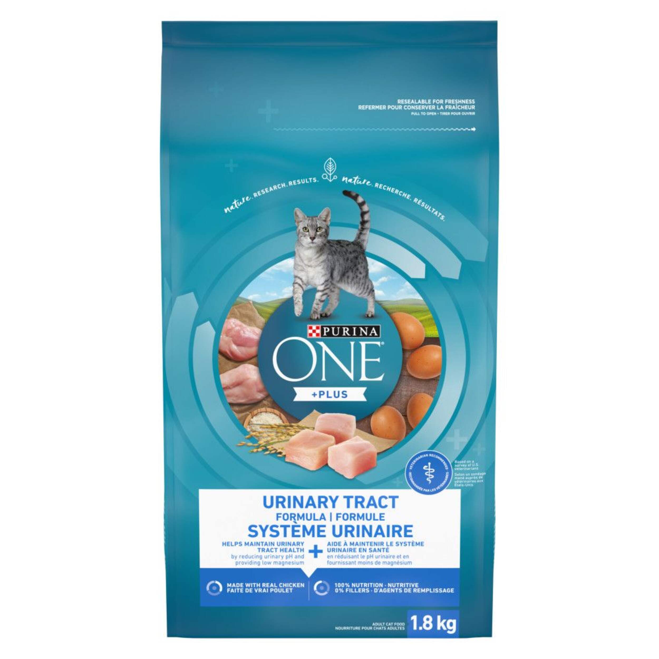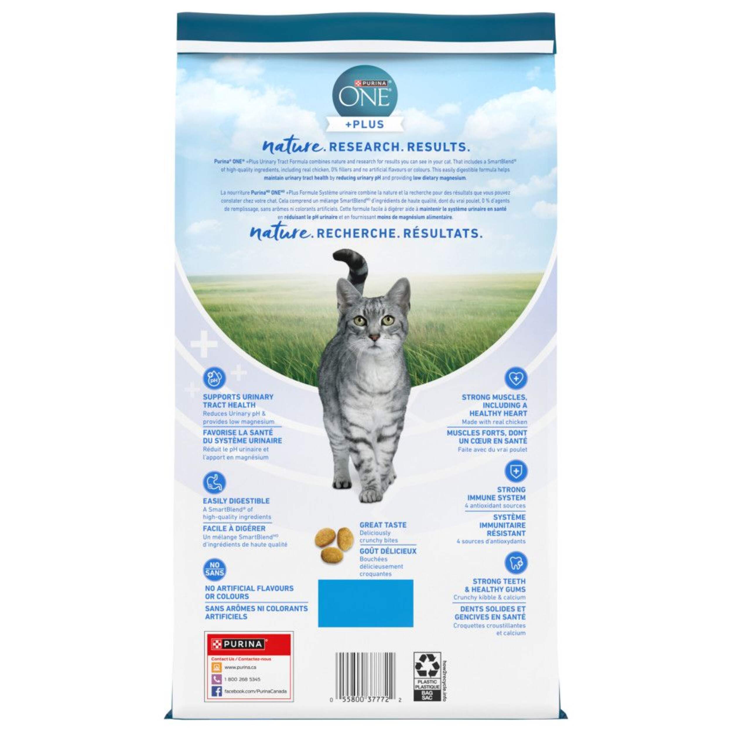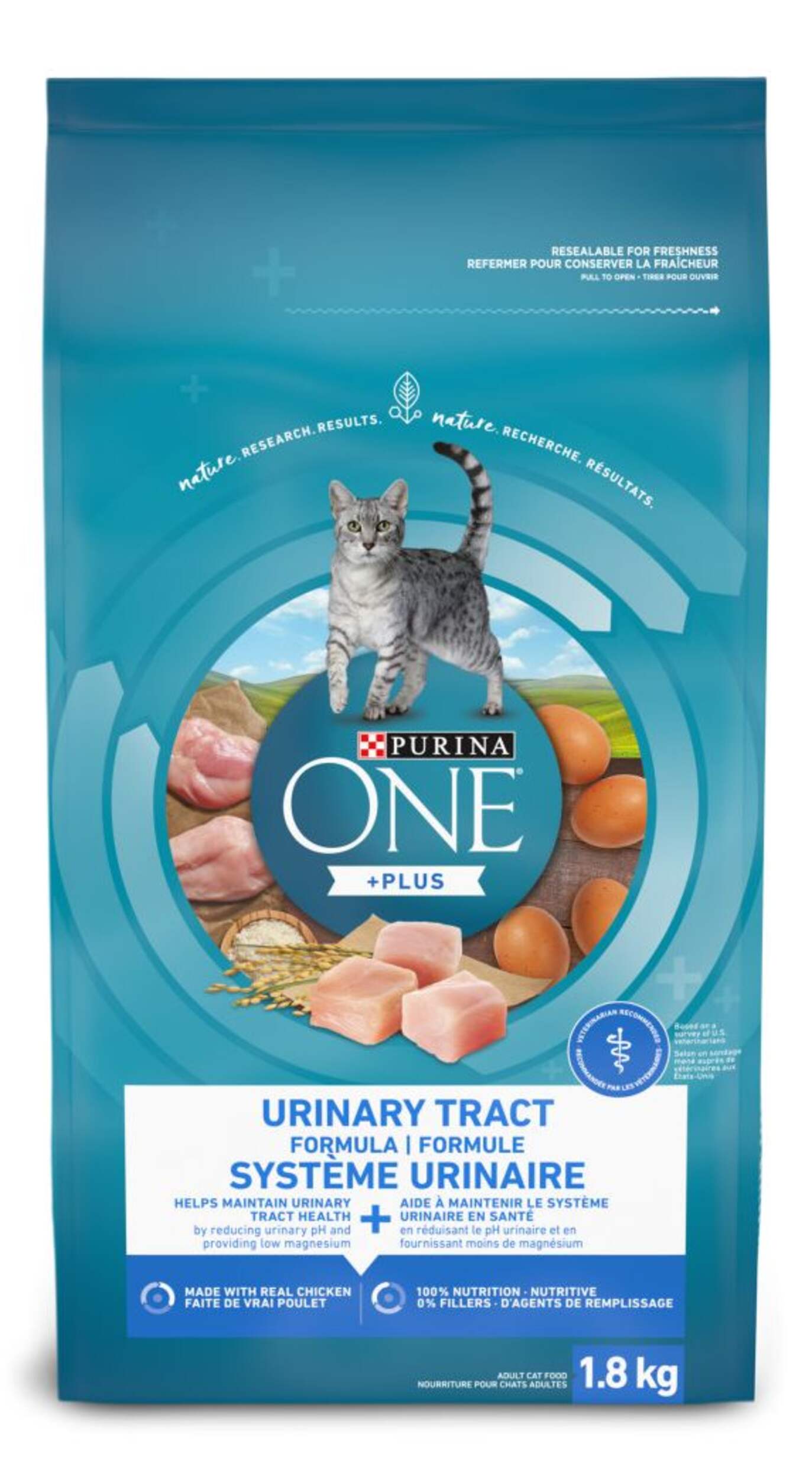 The Purina ONE SmartBlend Urinary Tract Health Dry Cat Food, 1.8-kg, combines nature and research for results you can see in your cat