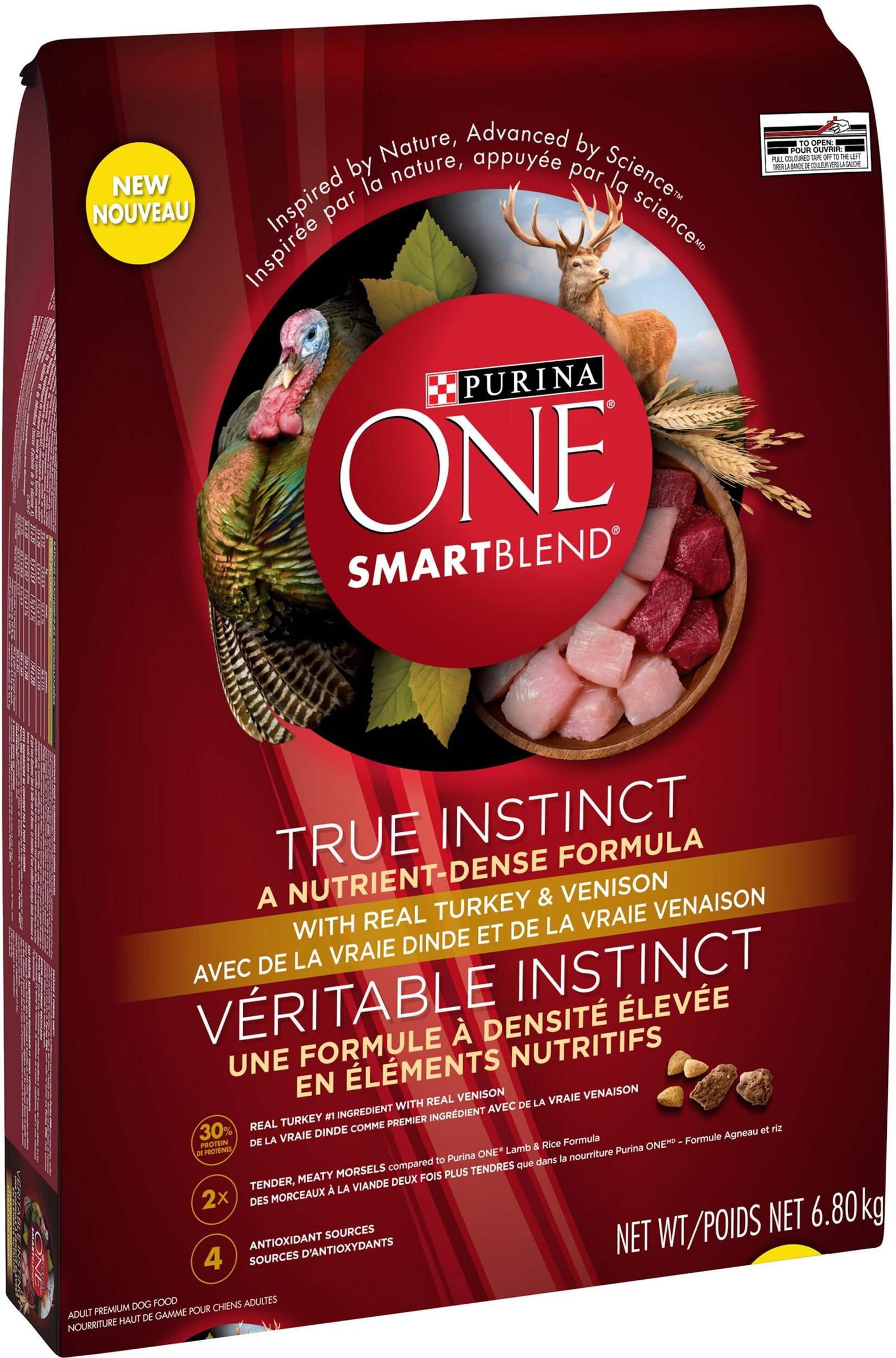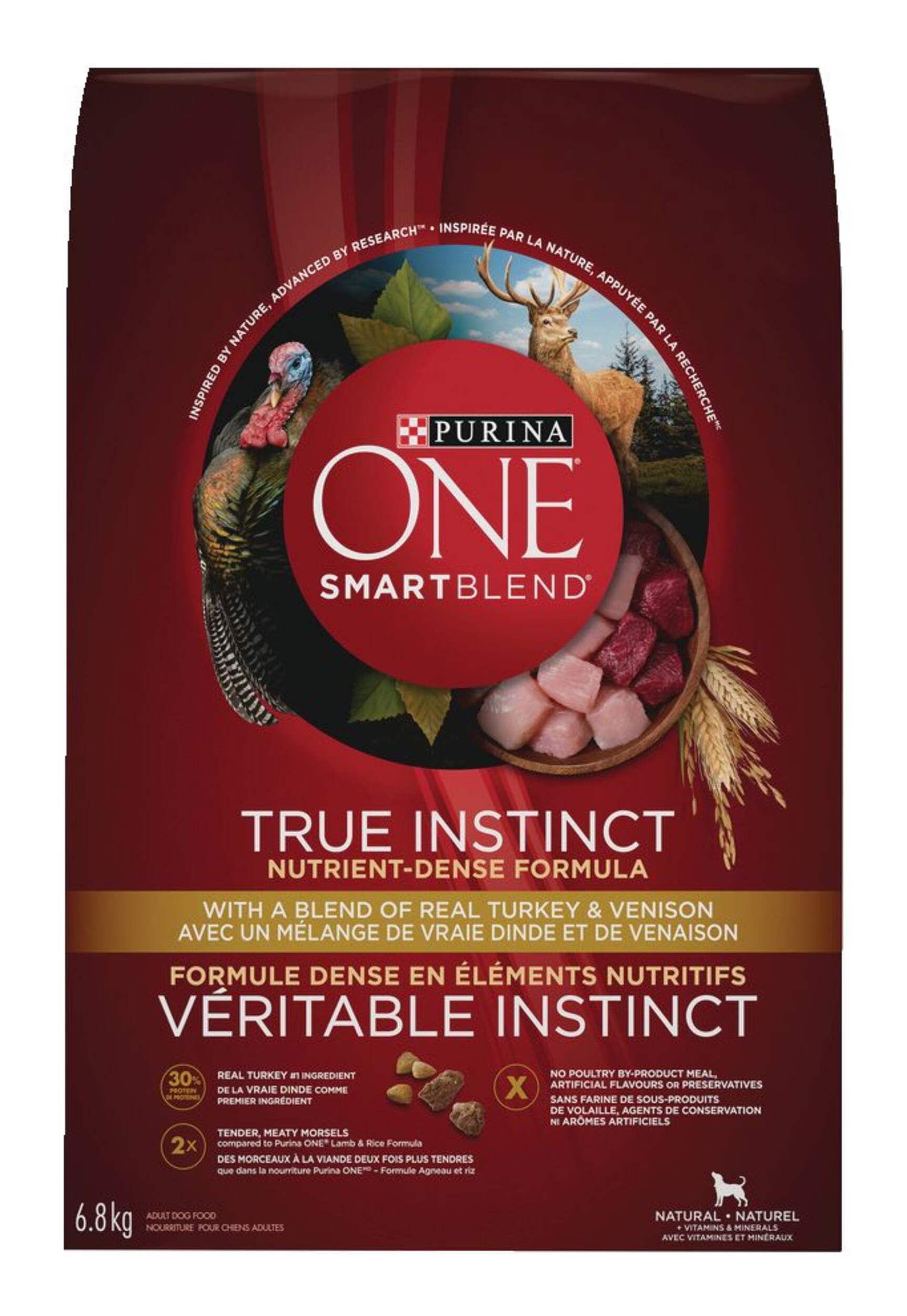Purina ONE® SmartBlend™ True Instinct Turkey & Venison Adult Dry Dog Food features a SmartBlend® of natural ingredients backed by research. This dog food is packed with the healthy nutrition your pet needs. It contains 30% protein, combining real turkey and venison, and is free from poultry by-product meal, artificial flavours, and preservatives. This is the natural nutrition your dog instinctively craves. Our products are influenced by nature, research, and results. No matter how far science advances, we always look to nature for inspiration.