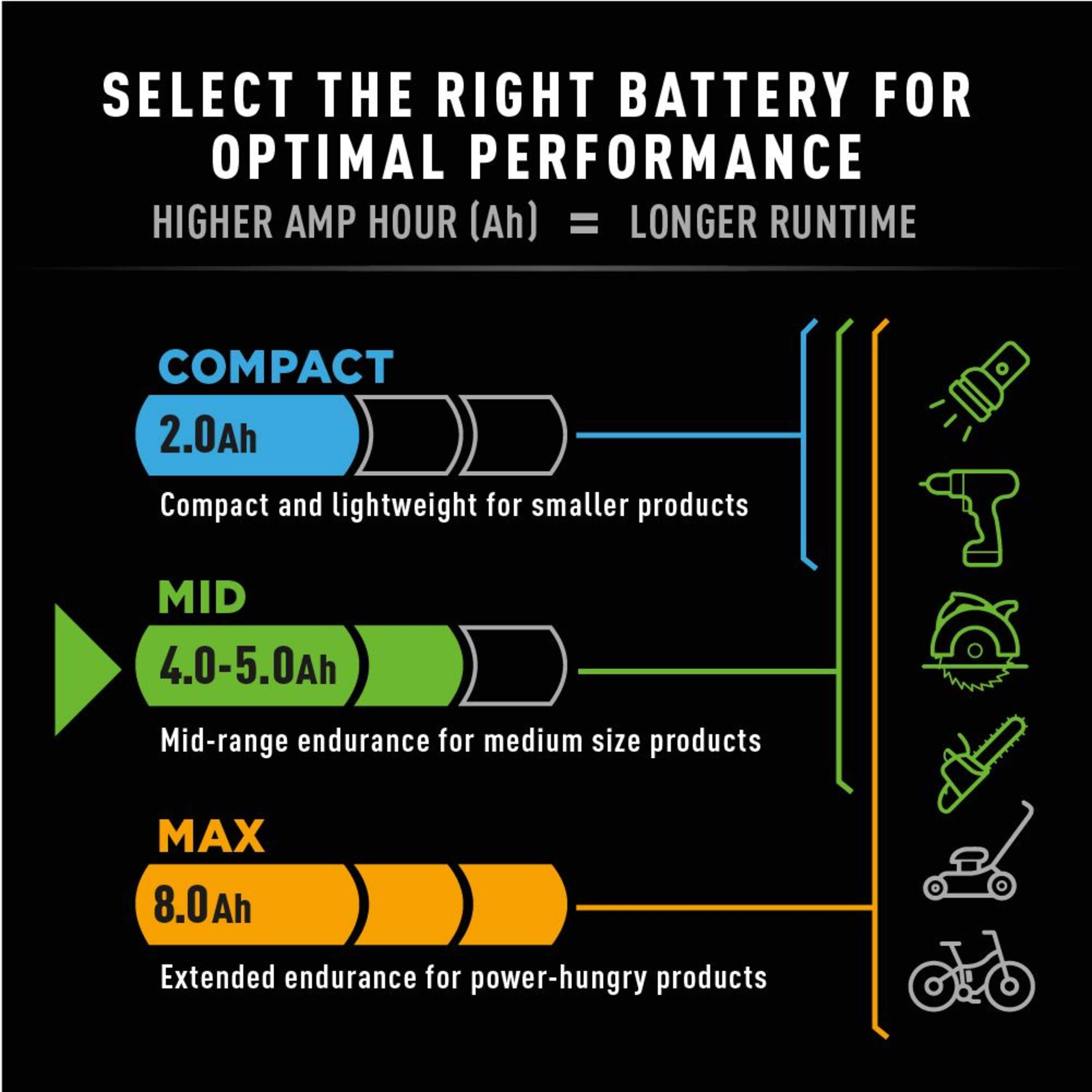 Ideal for longer runtime tasks and products that require more power