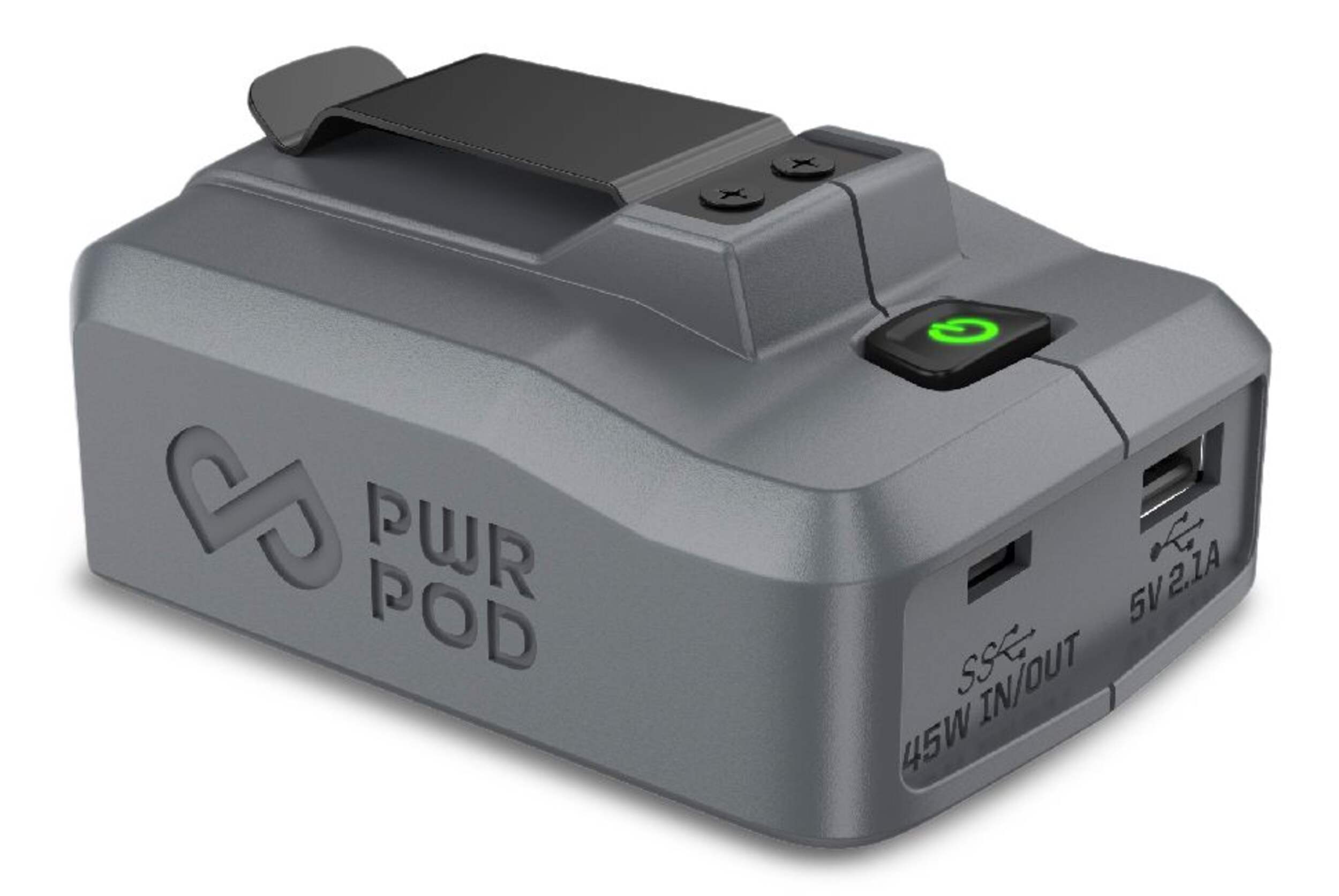 Charges phones, tablets, and laptops directly from a PWR POD 20V Max battery