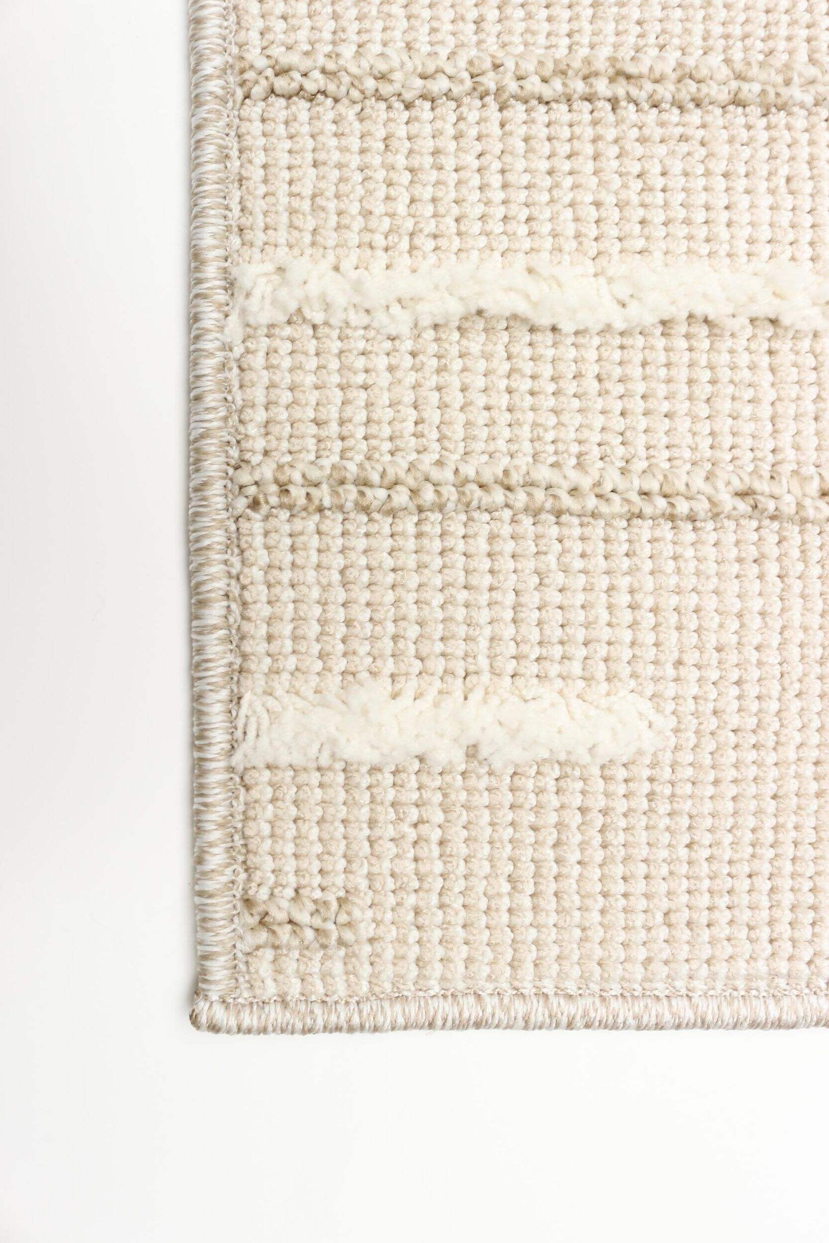 Contemporary area rug featuring boldly inspiring geometrics that are woven in a looped soft textured pile, adding a strong calmness to your favourite space