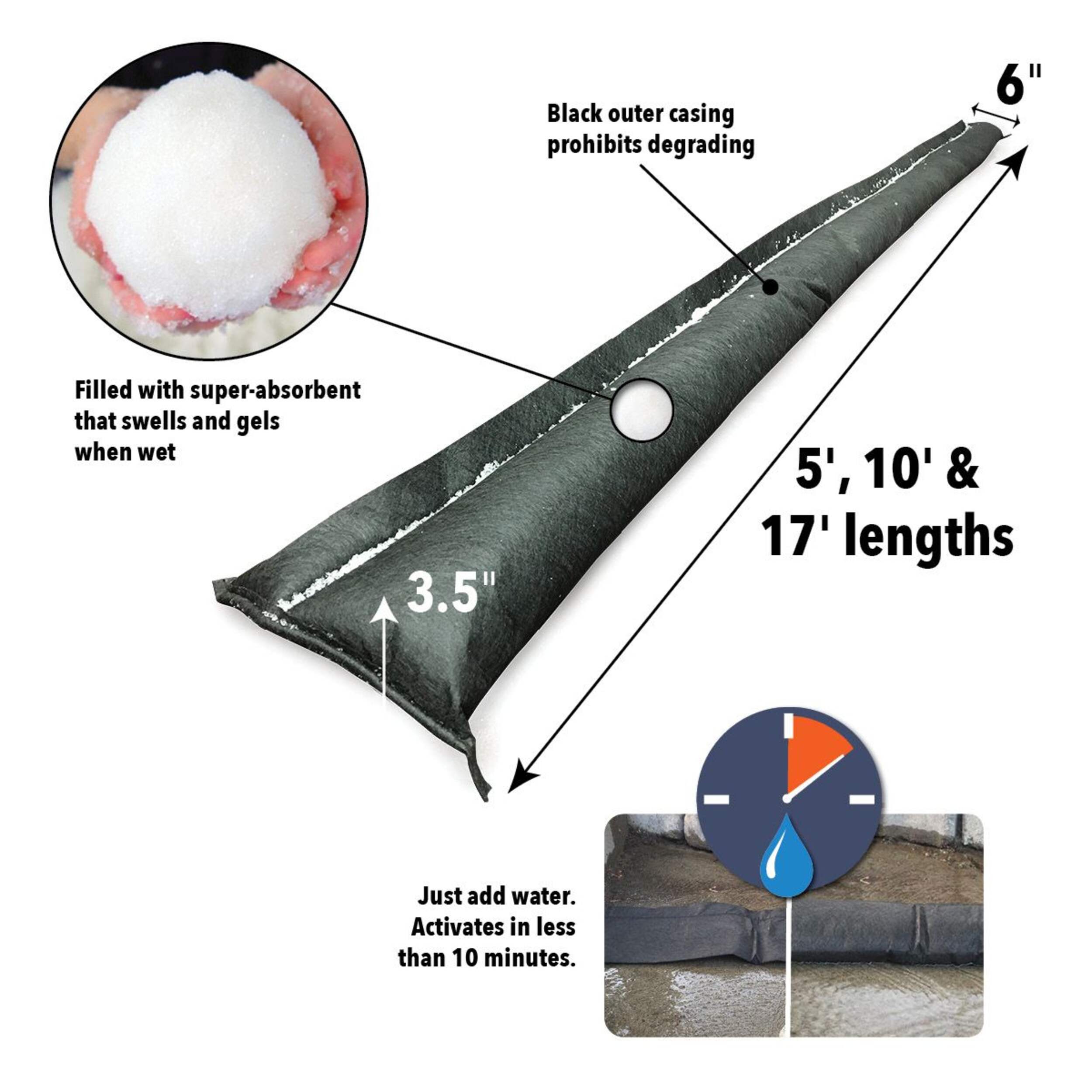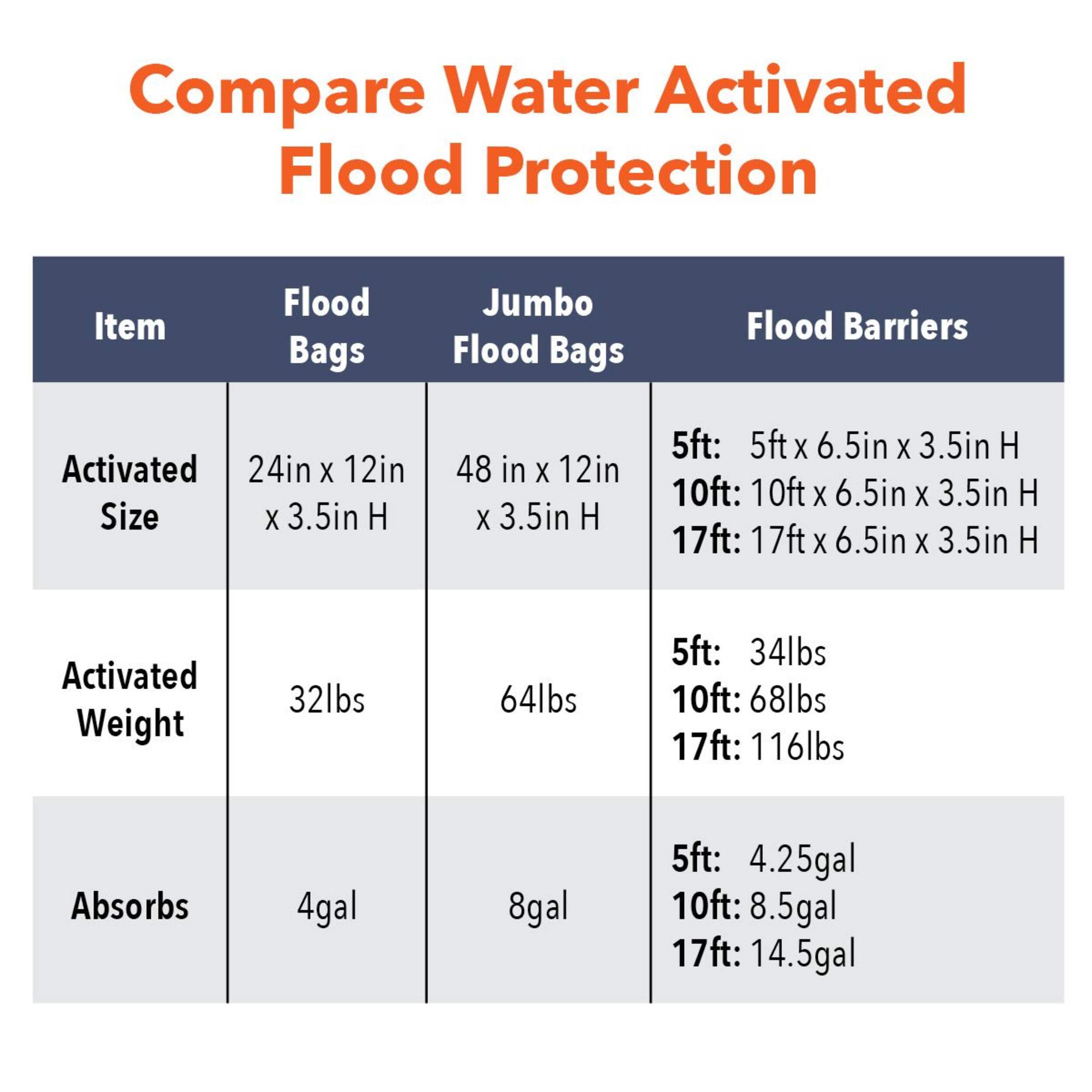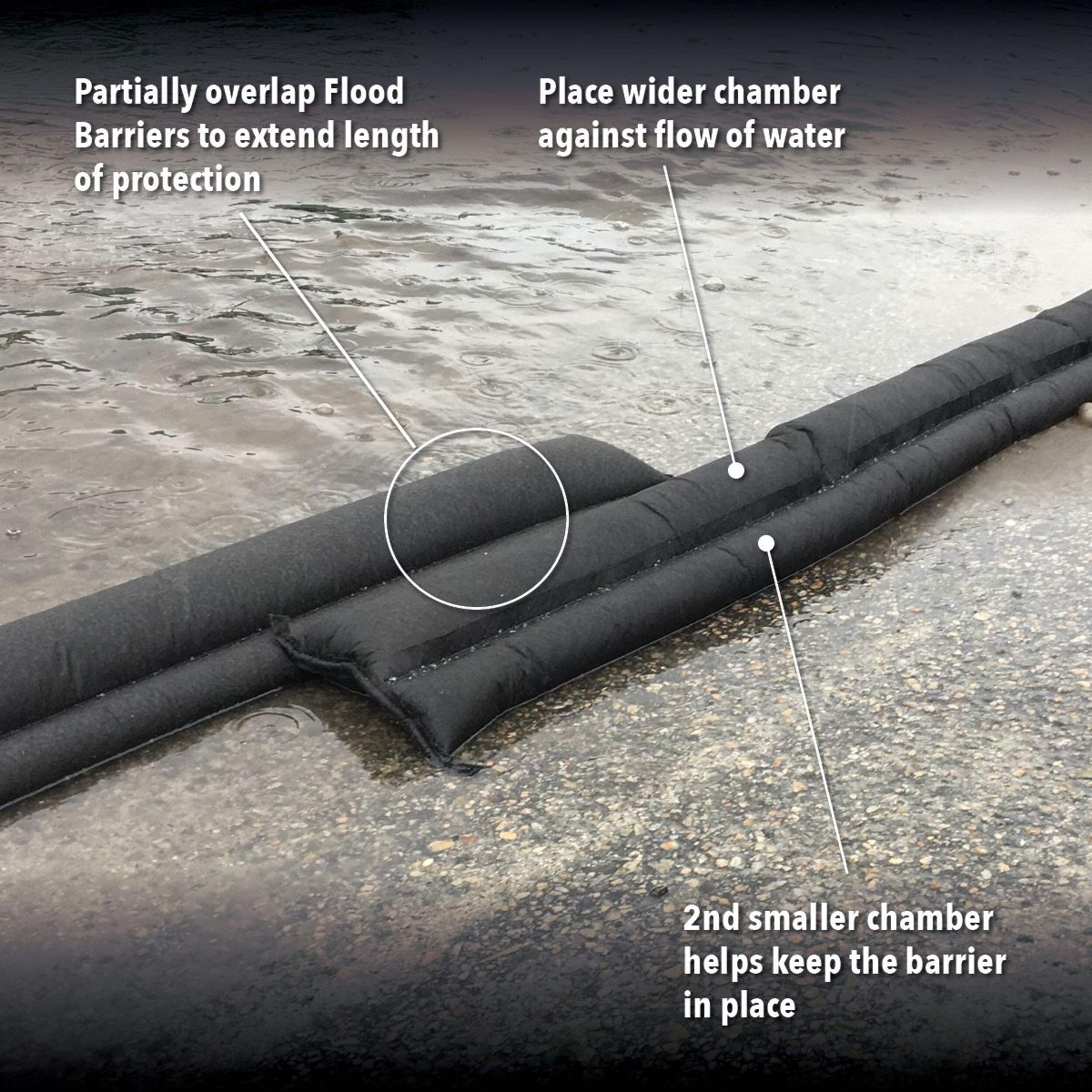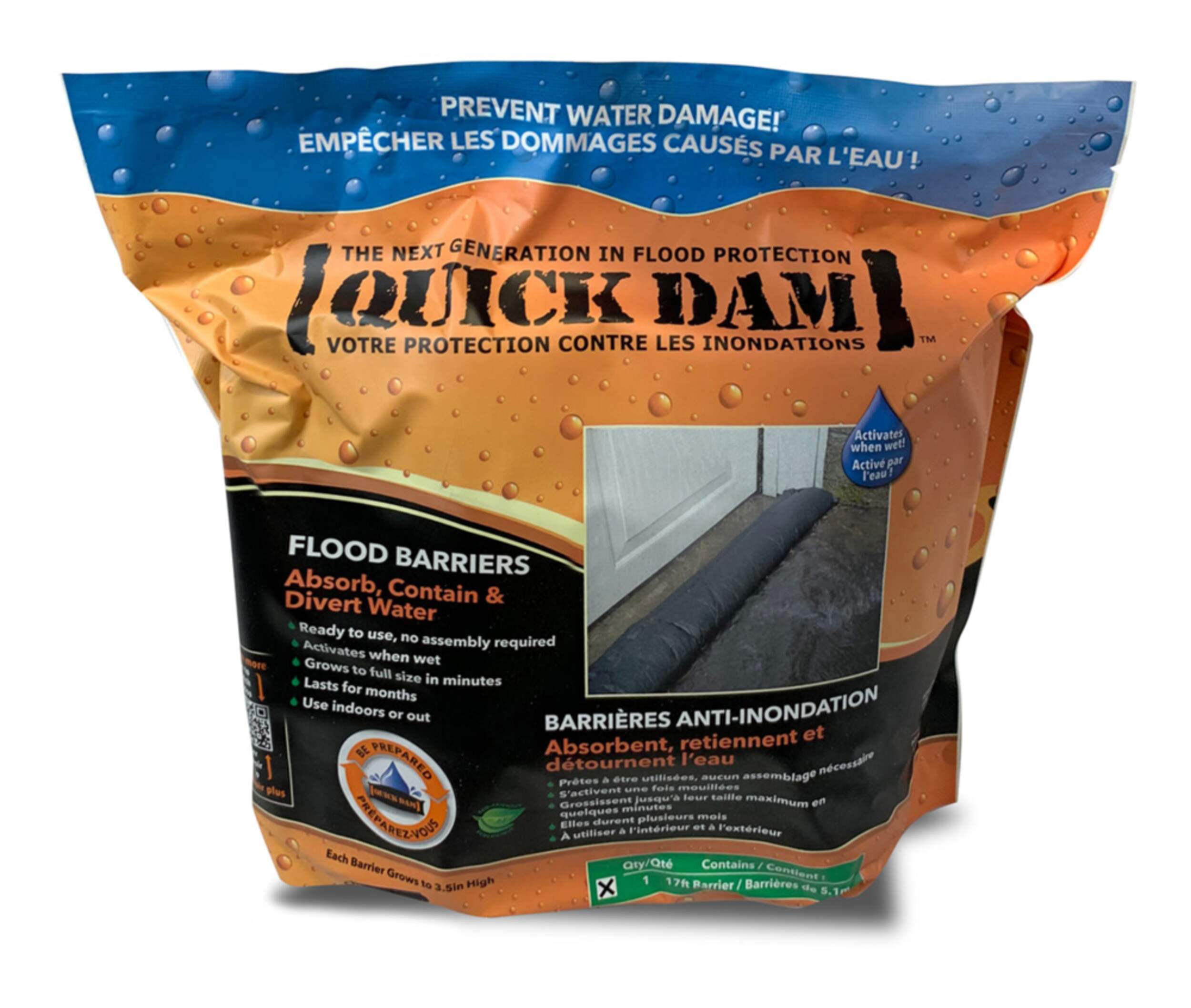Quick Dam Flood Barriers absorb, contain and divert problem flood water. Flood Barriers absorb, swell and gel oncoming water on contact to create a durable barrier. Compact, lightweight and easy to set up, they come in a package that is perfect to keep stored away until needed. Ready to use with no assembly required, the reusable barriers help you keep your home and property protected from the dangers of flooding.