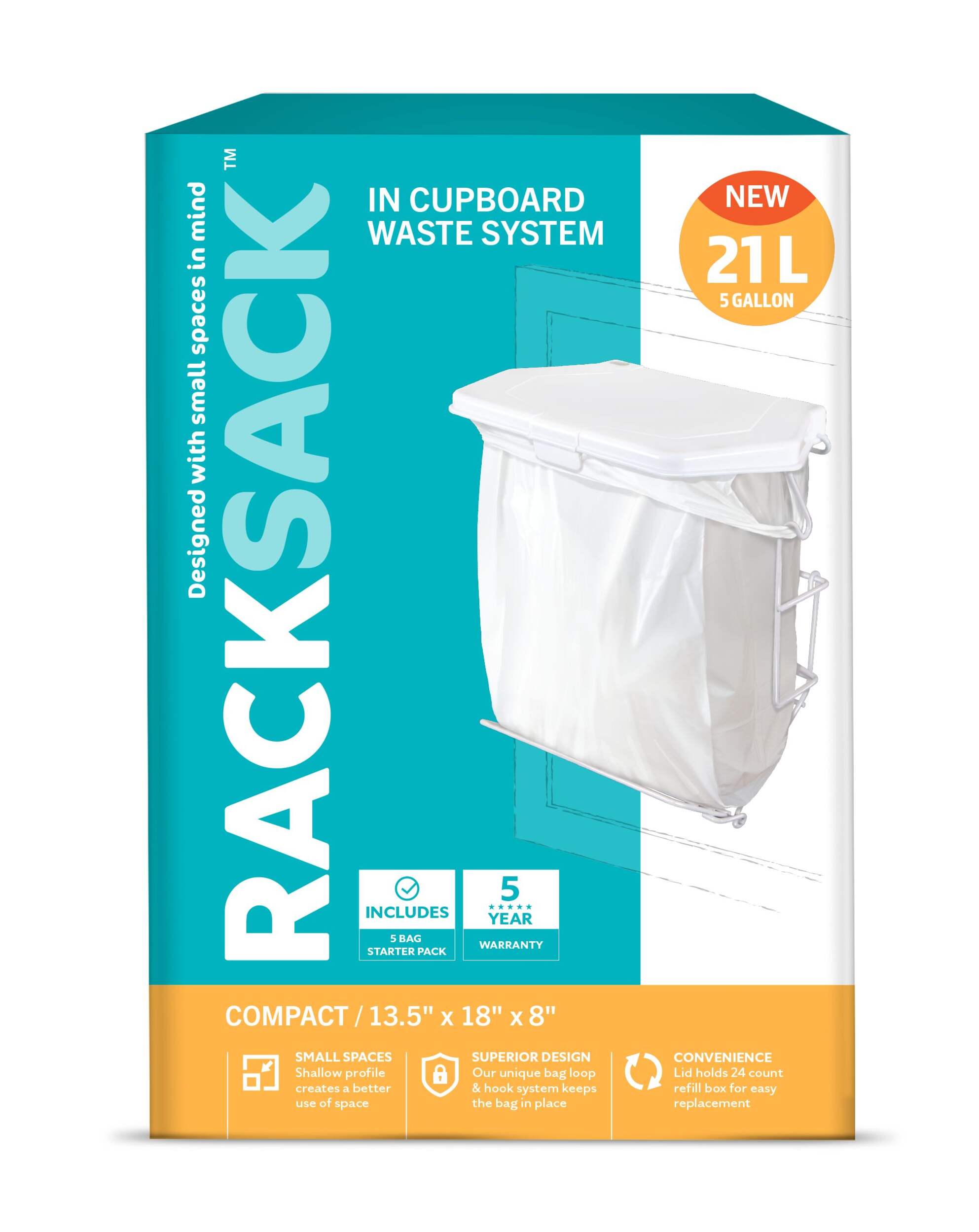 Rack Sack Expandable Kitchen Garbage Bag Holder, Fits 15-L or 21-L bags, Includes 5 bags