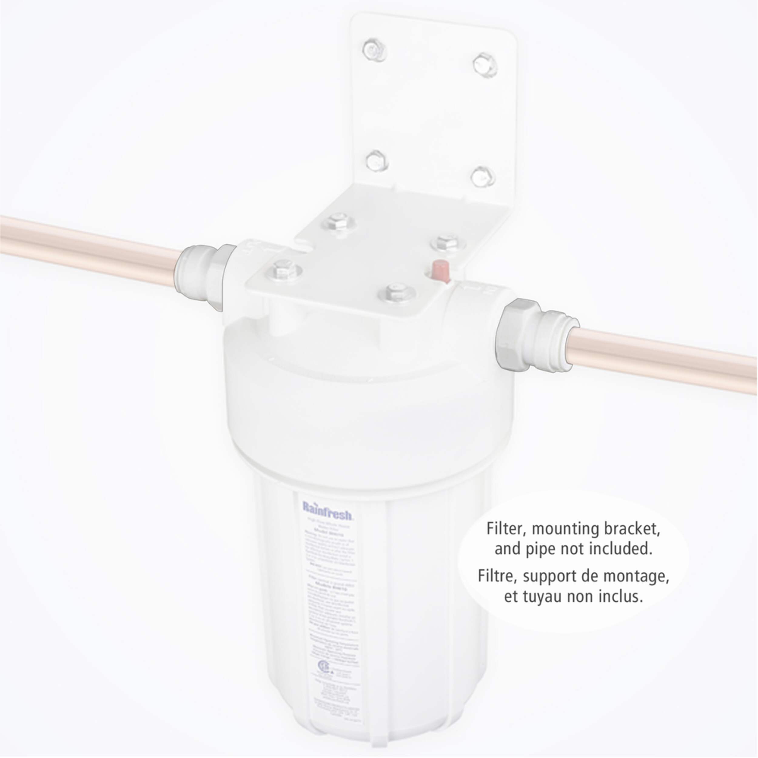 This straightforward connector kit from Rainfresh makes installing or replacing your whole house water filter a cinch. No soldering or plumbing experience needed - just connect the two quick-connect fittings to your copper or PEX water pipes and attach to your 1" inlet/outlet filter. The kit includes everything you need like thread seal tape and instructions so you'll be back to enjoying clean, filtered water in no time.